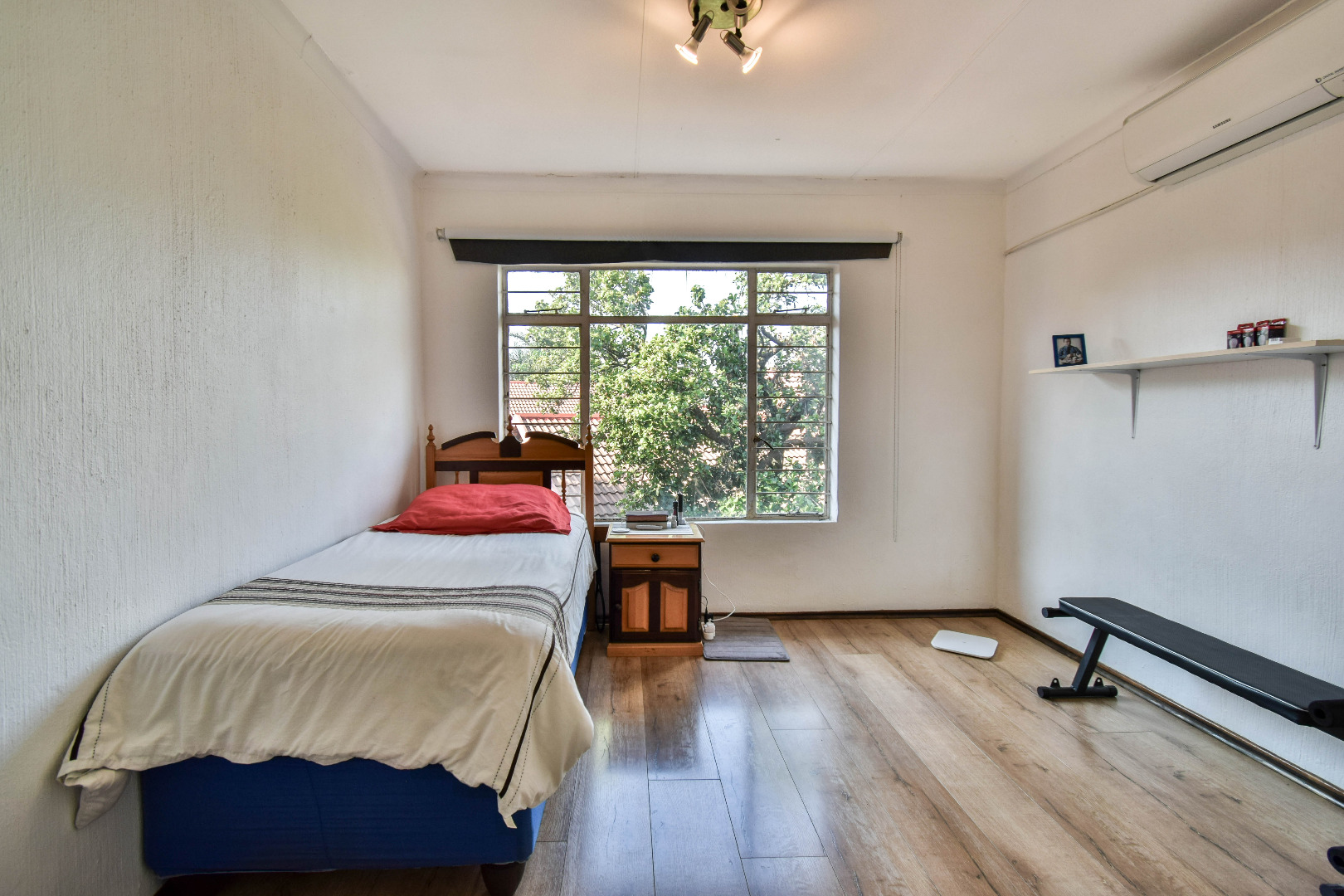 The home features three bedrooms, each offering a unique setup. The main bedroom includes laminated flooring, built-in cupboards, an air conditioner, and a en-suite bathroom with a bath. The second bedroom also enjoys laminated flooring with built-in cupboards, while the third bedroom provides flexibility as a guest room, study, or children’s room, although it does not include built-in cupboards.