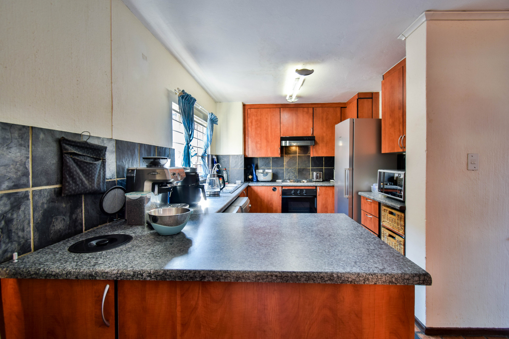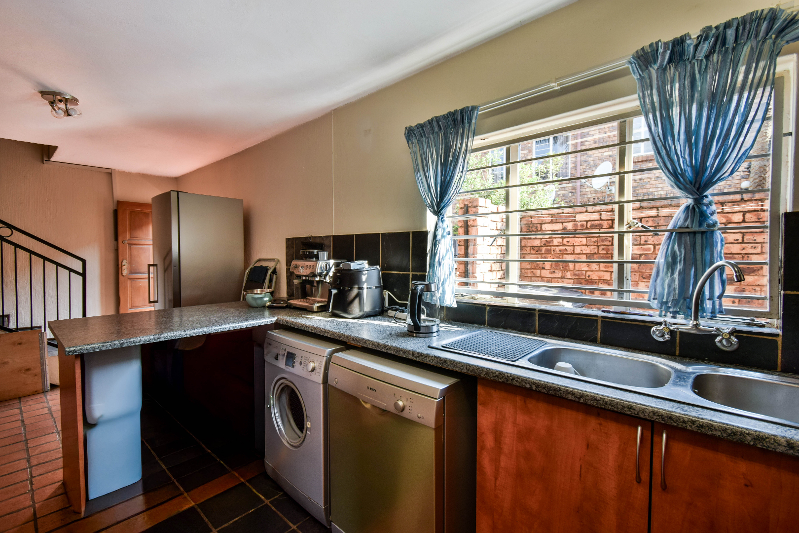 This charming home offers a comfortable and practical layout designed for modern living. The open-plan living area flows seamlessly into the kitchen and dining space, creating an inviting atmosphere for everyday life and entertaining. The kitchen features a gas stove, space for two appliances, and a single-door fridge, ensuring both style and functionality. A courtyard outside provides a private space for washing, with room for a dustbin conveniently tucked away.