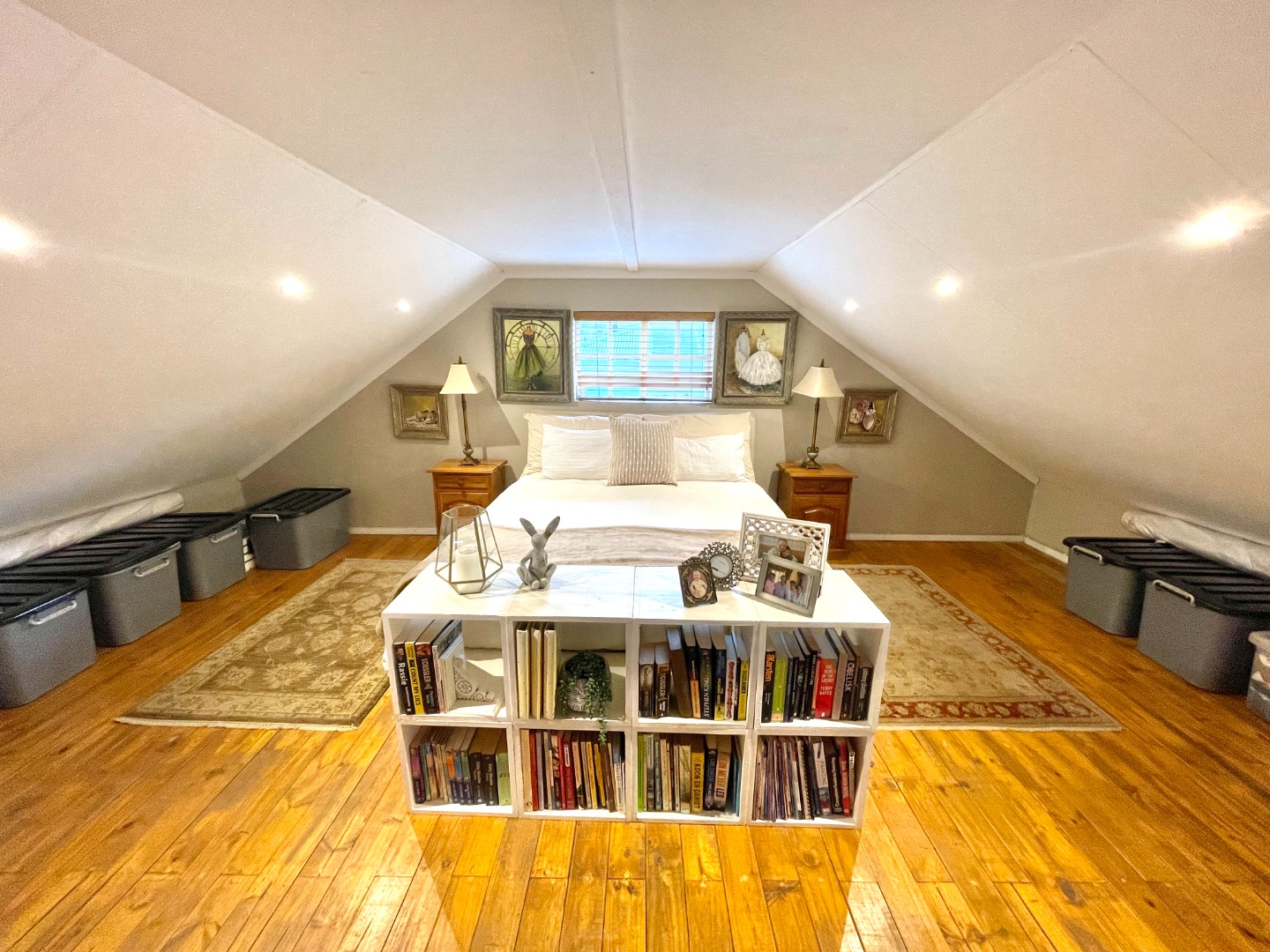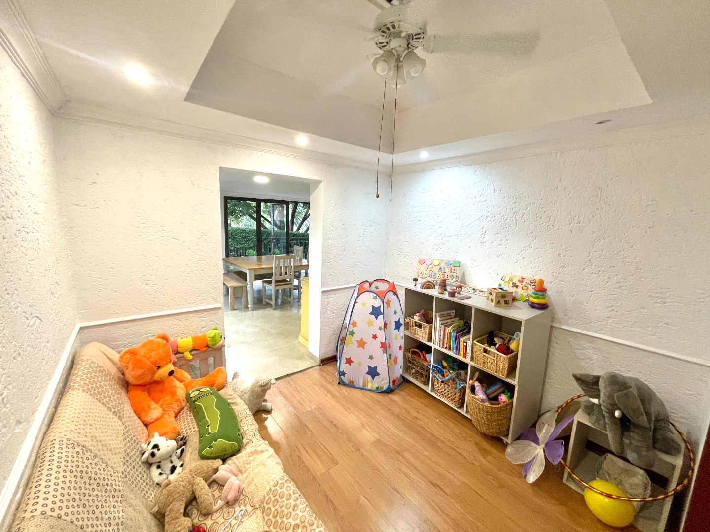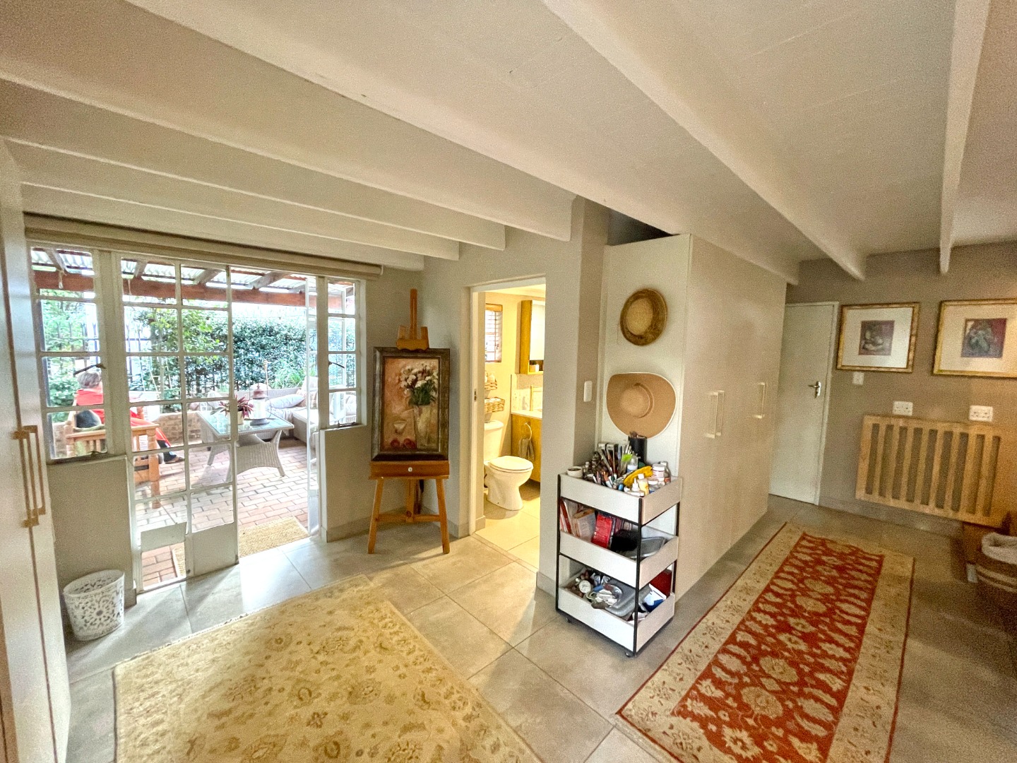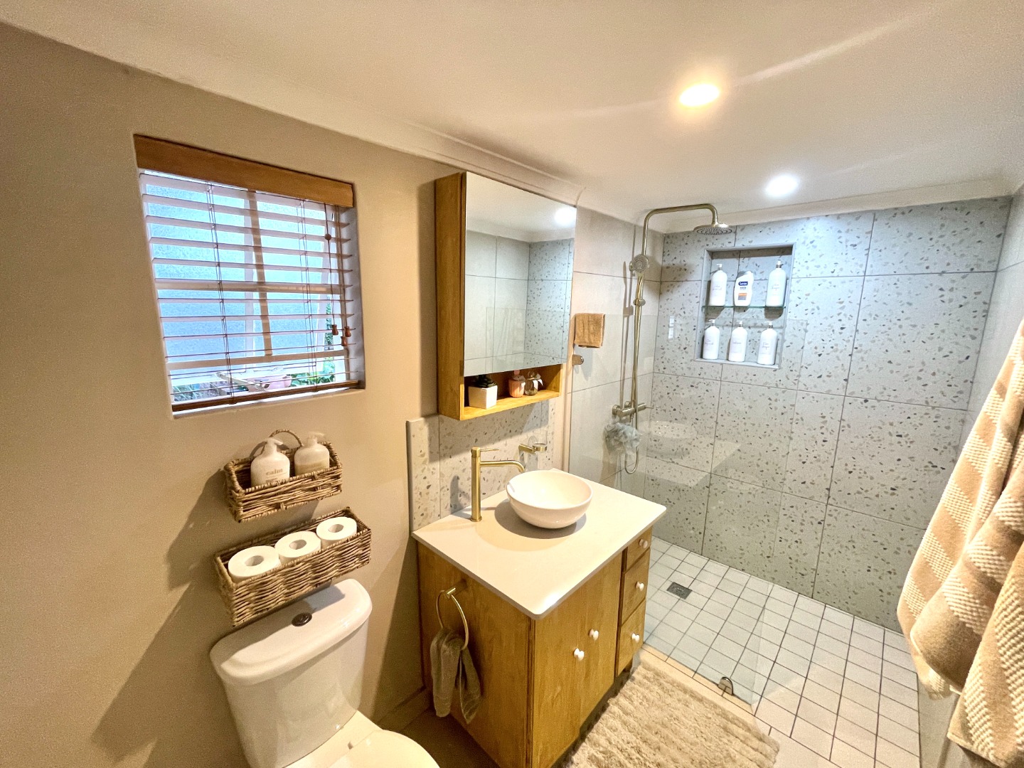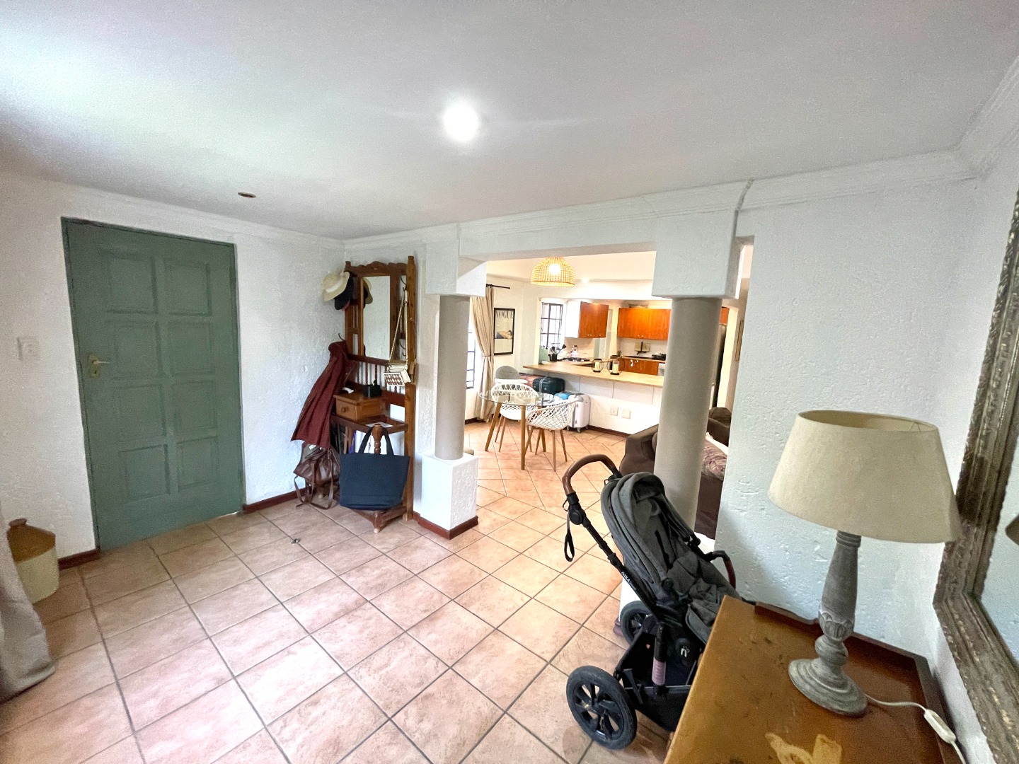 The living and dining areas flow seamlessly into an enclosed entertainment room with stack doors on three sides creating a true all-season indoor-outdoor experience. With a built-in braai, manicured garden, automated irrigation, wendy house, and a 3-vehicle carport, the home is designed for easy living and effortless entertaining.