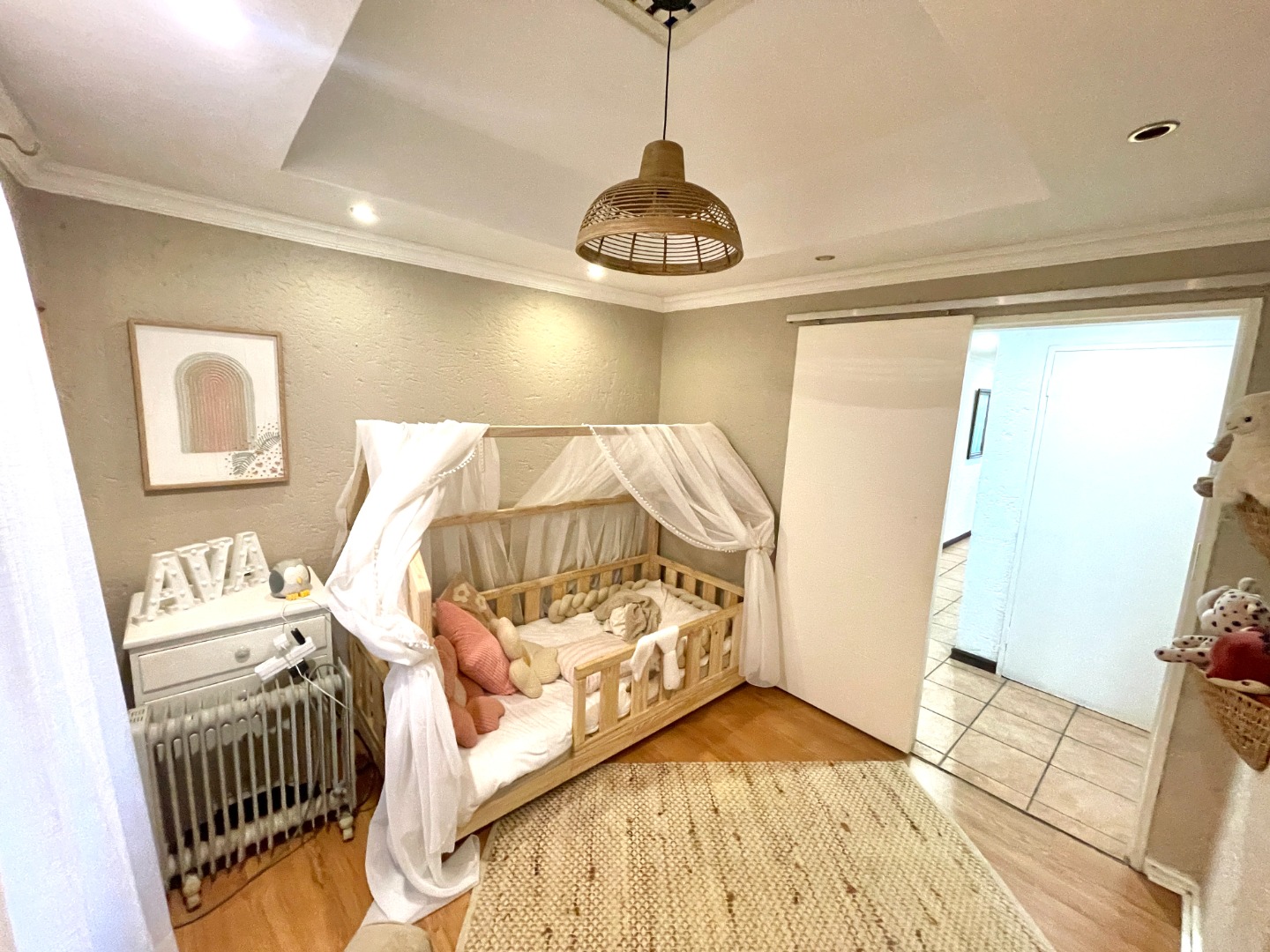 Welcome to a beautifully maintained corner stand family home in the secure, access-controlled Glossa Estate in Moreleta Park offering extra privacy, space and smart living. Inside, you’ll find 2 full bedrooms with walk-in closets, a third room currently used as a playroom, and two full bathrooms one being en-suit to the main retreat. The open-plan kitchen is fitted with a gas hob, pantry, breakfast nook, and a generously sized scullery/laundry, all supported by a solar geyser for smart, energy-efficient living.