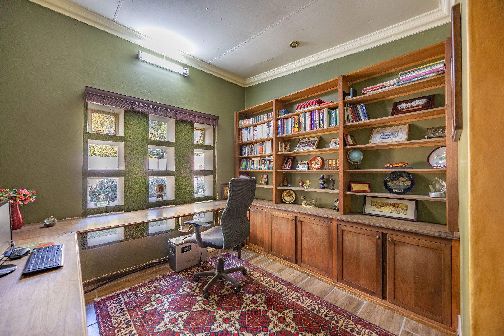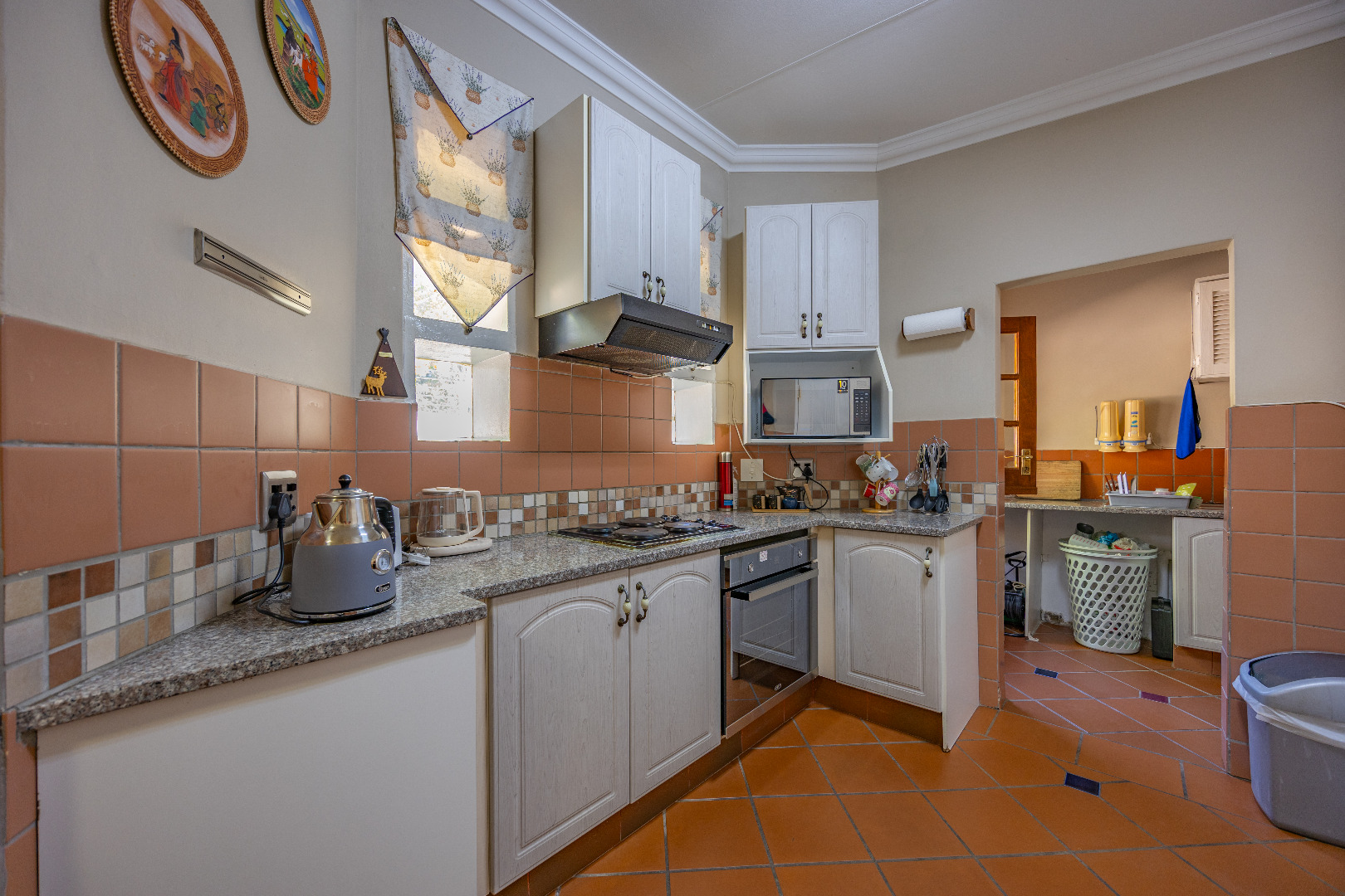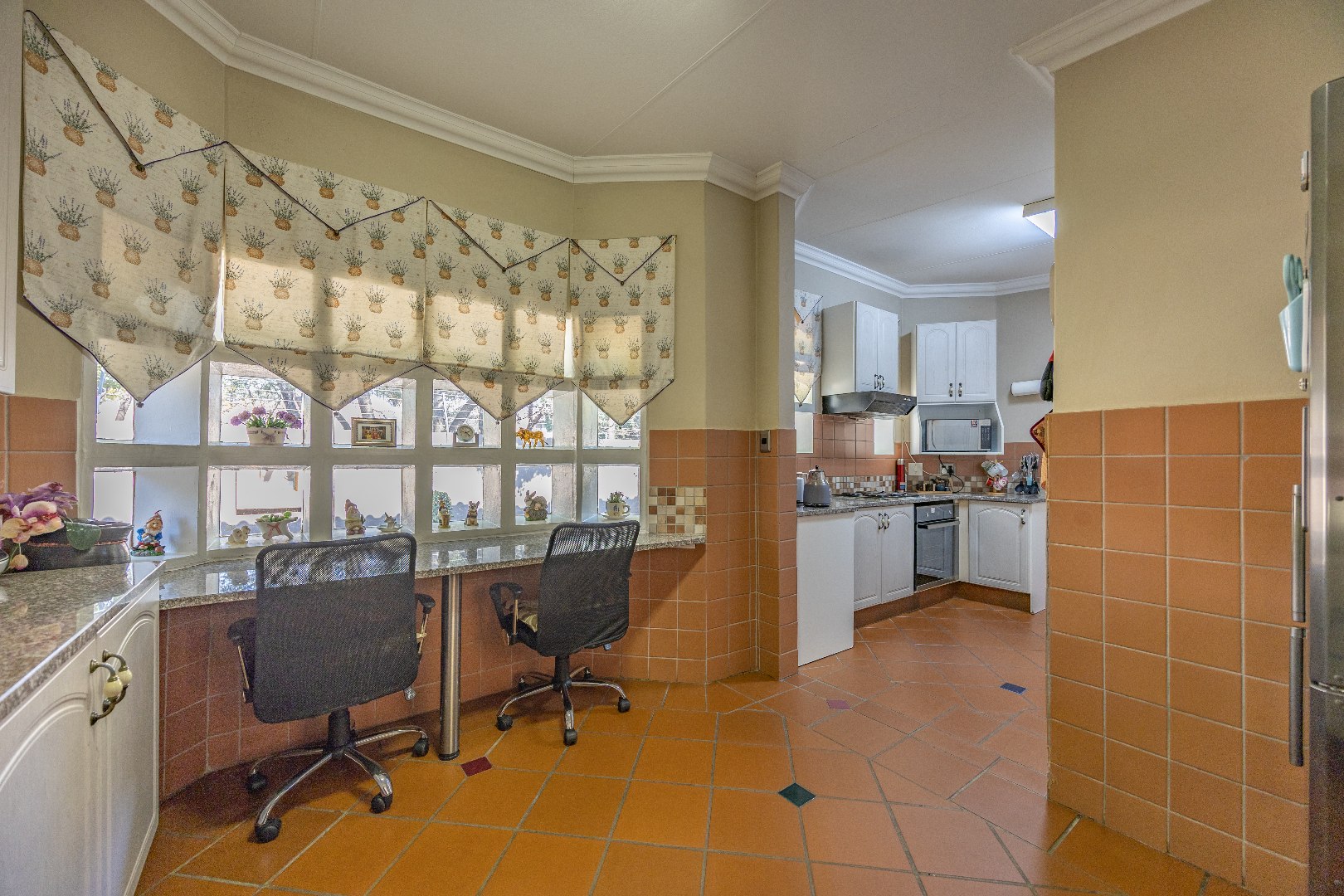 The heart of the home boasts a gourmet kitchen with granite finishes, two pantries, and a separate scullery. Stacking doors open to the lush garden, where a sparkling swimming pool and sun deck create the ultimate outdoor retreat. An indoor braai ensures year-round entertainment, while a dedicated office space provides the perfect setting for remote work or studies.
