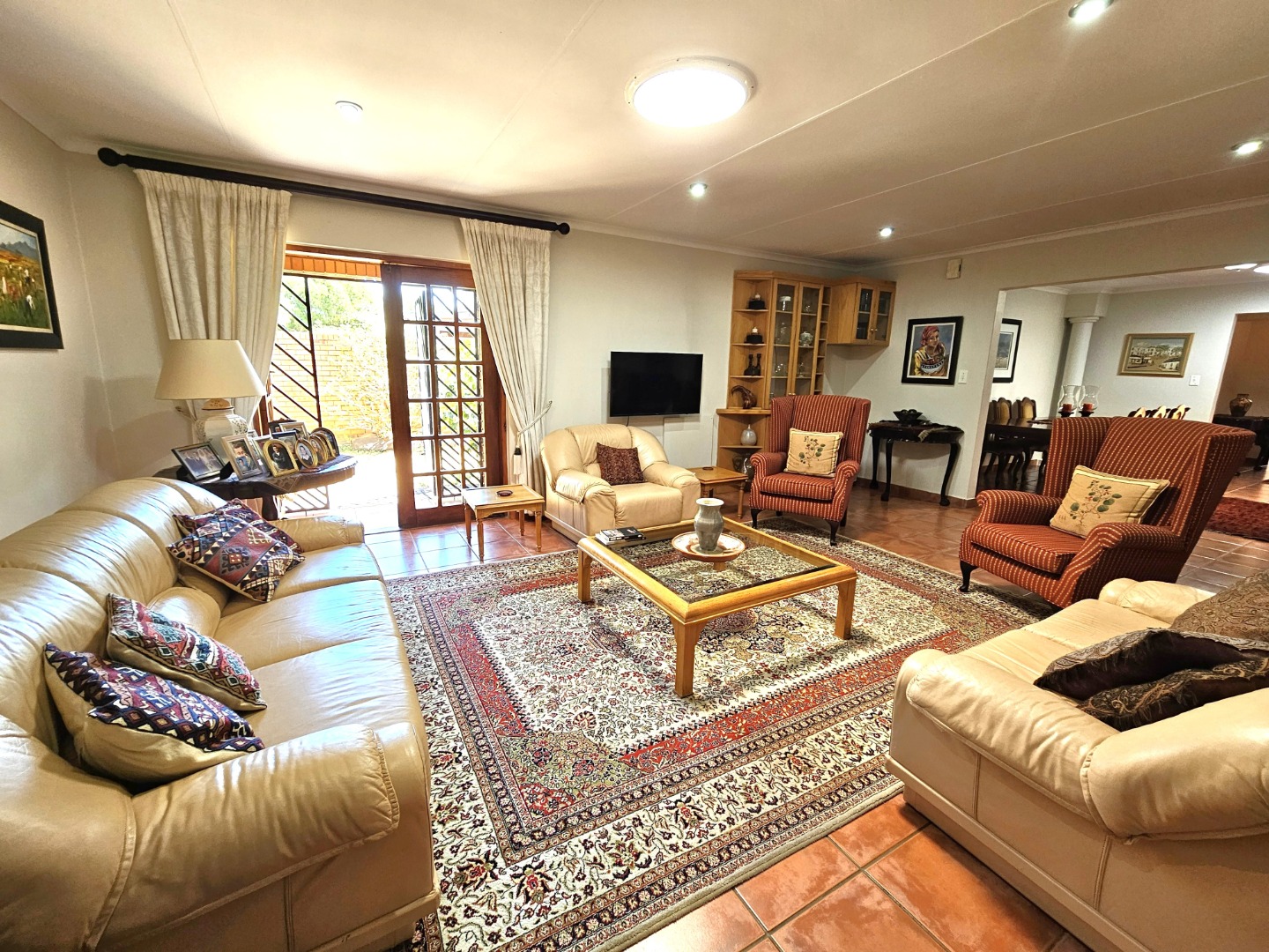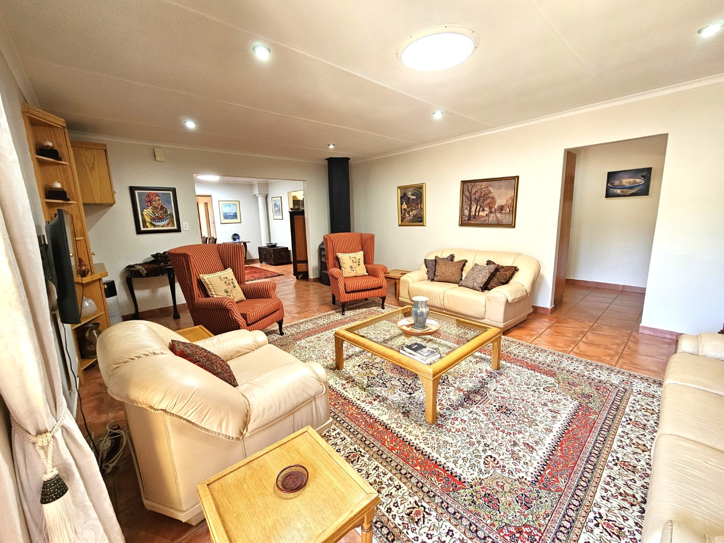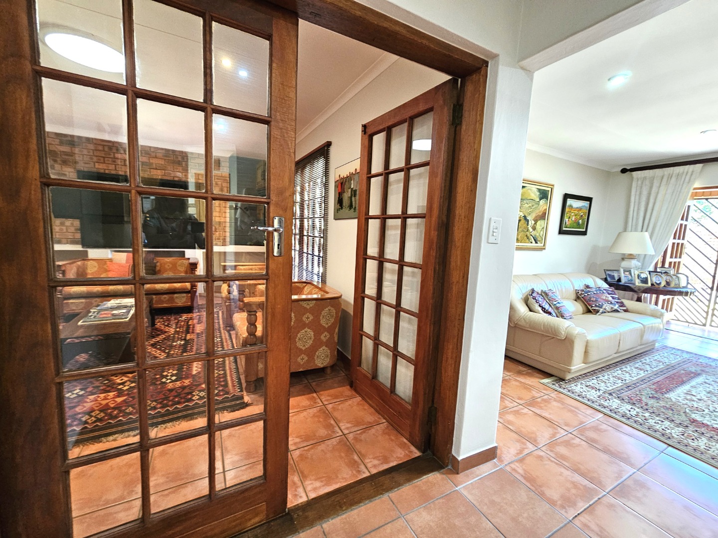 Welcome to this beautiful home in the heart of Moreleta Park, where warmth, comfort, and style come together perfectly. A paved driveway leads to a double garage and carport, offering plenty of secure parking. Step through the solid wooden front door into a welcoming entrance hall with terracotta-toned tiles, creating a cosy and earthy feel. The open-plan living areas are designed for relaxed family living and entertaining. The dining room flows easily into a comfortable lounge featuring a freestanding fireplace—perfect for chilly evenings. A second lounge, separate from the main living space, is ideal as a home office or study.