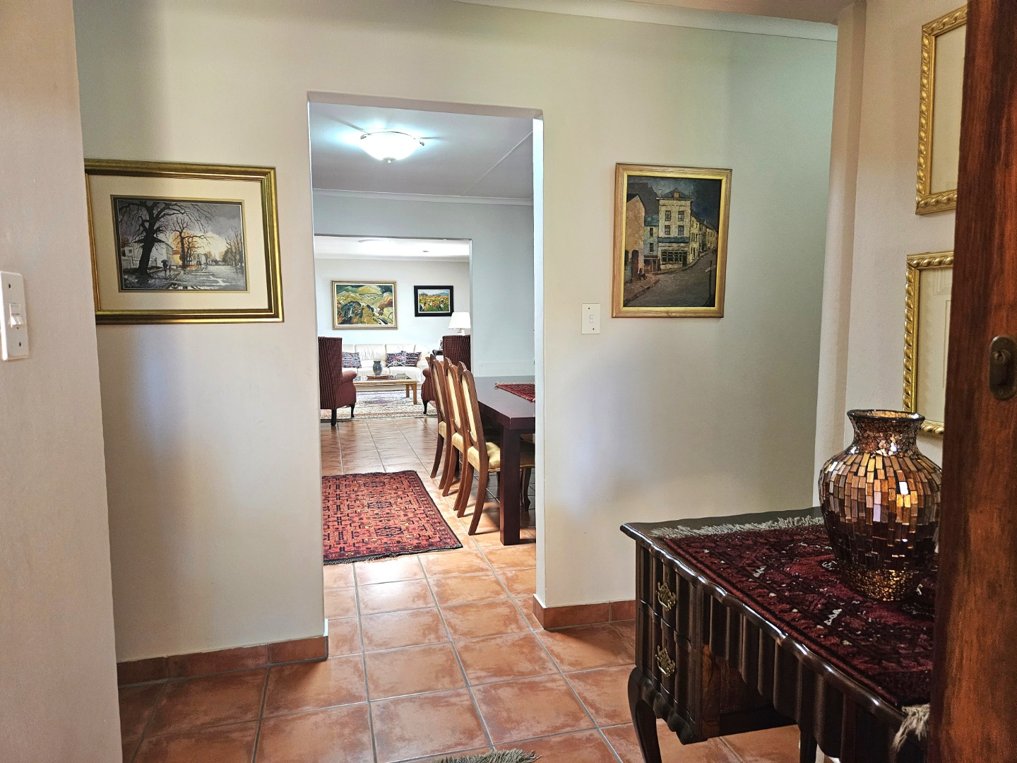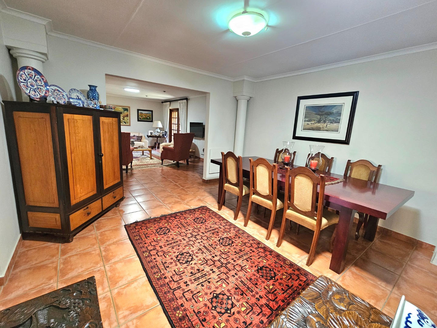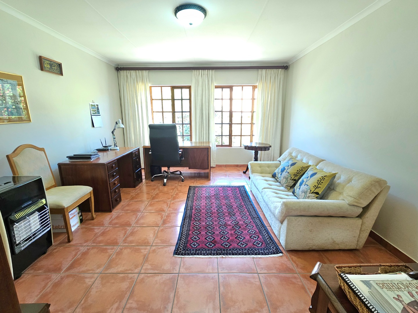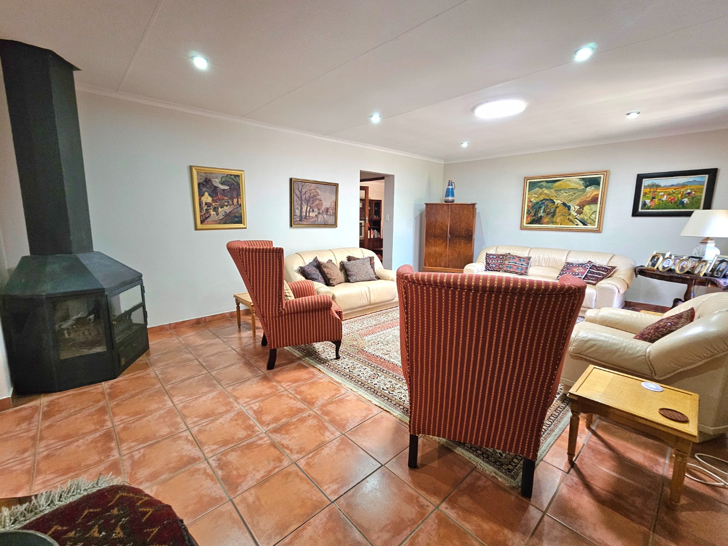 Welcome to this beautiful home in the heart of Moreleta Park, where warmth, comfort, and style come together perfectly. A paved driveway leads to a double garage and carport, offering plenty of secure parking. Step through the solid wooden front door into a welcoming entrance hall with terracotta-toned tiles, creating a cosy and earthy feel. The open-plan living areas are designed for relaxed family living and entertaining. The dining room flows easily into a comfortable lounge featuring a freestanding fireplace—perfect for chilly evenings. A second lounge, separate from the main living space, is ideal as a home office or study.