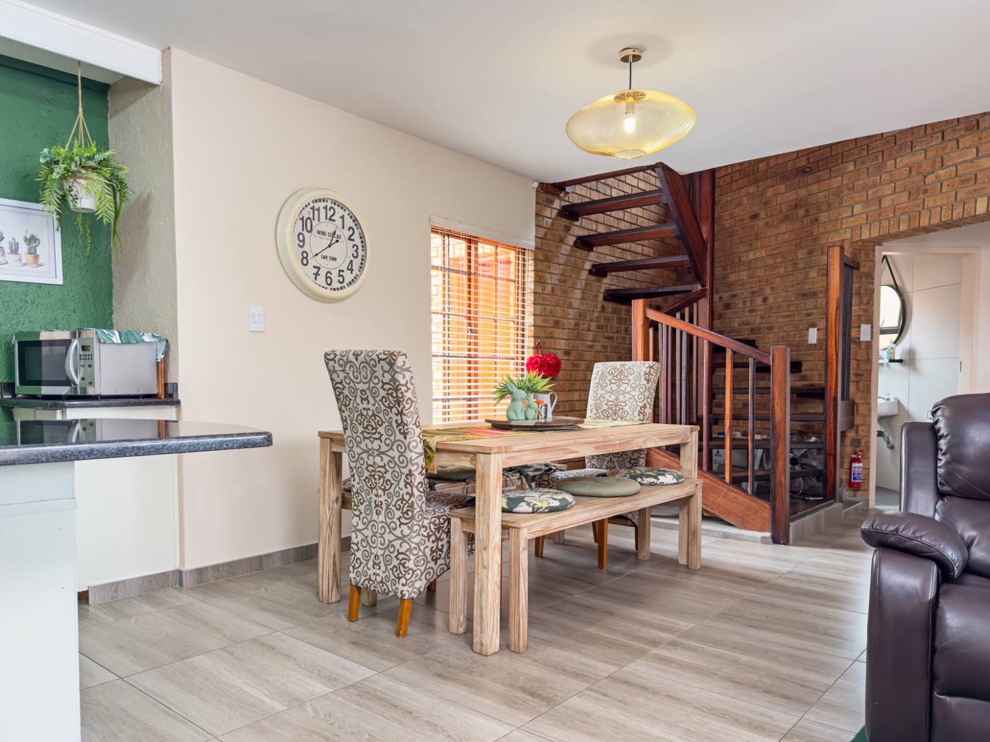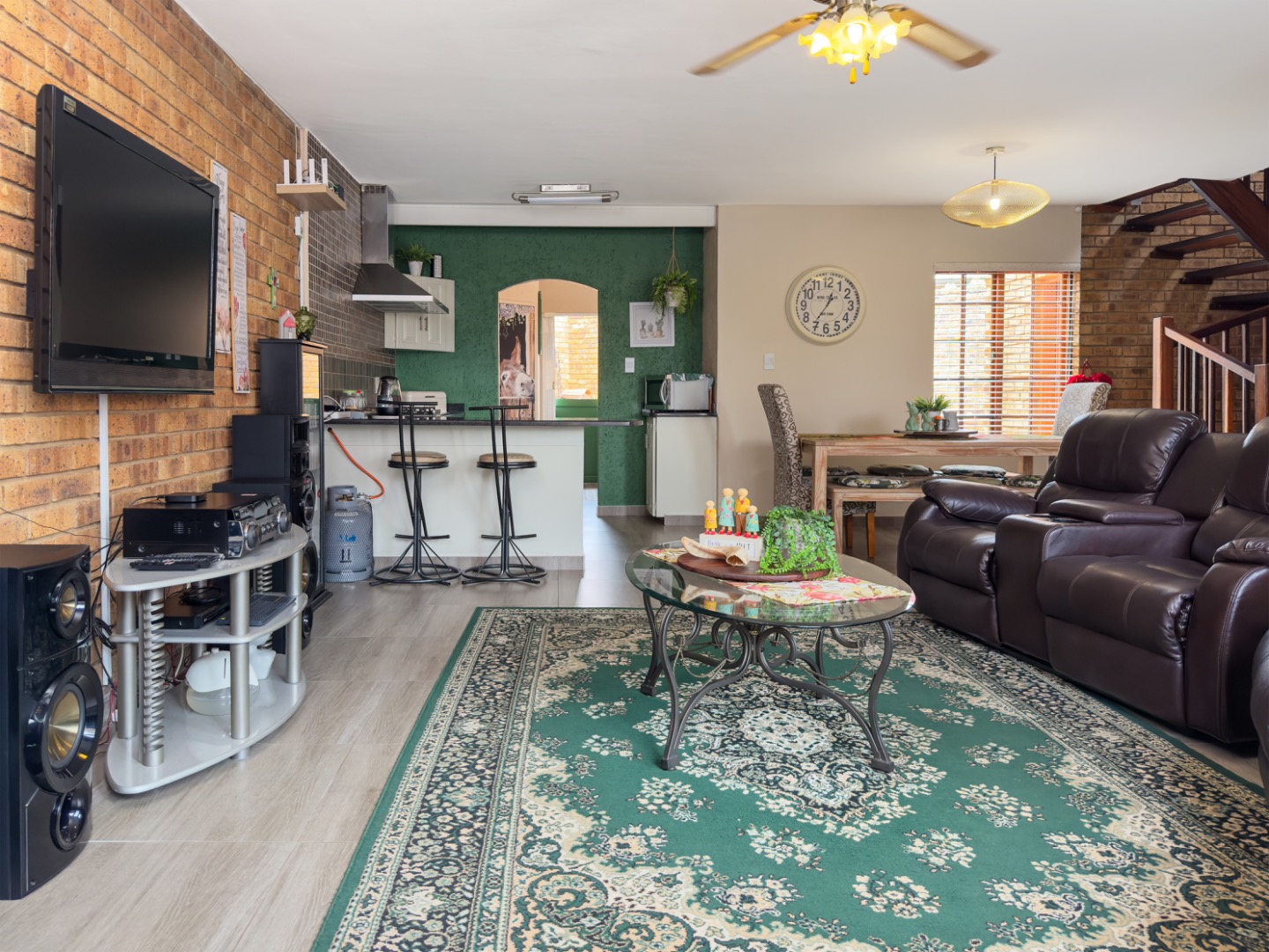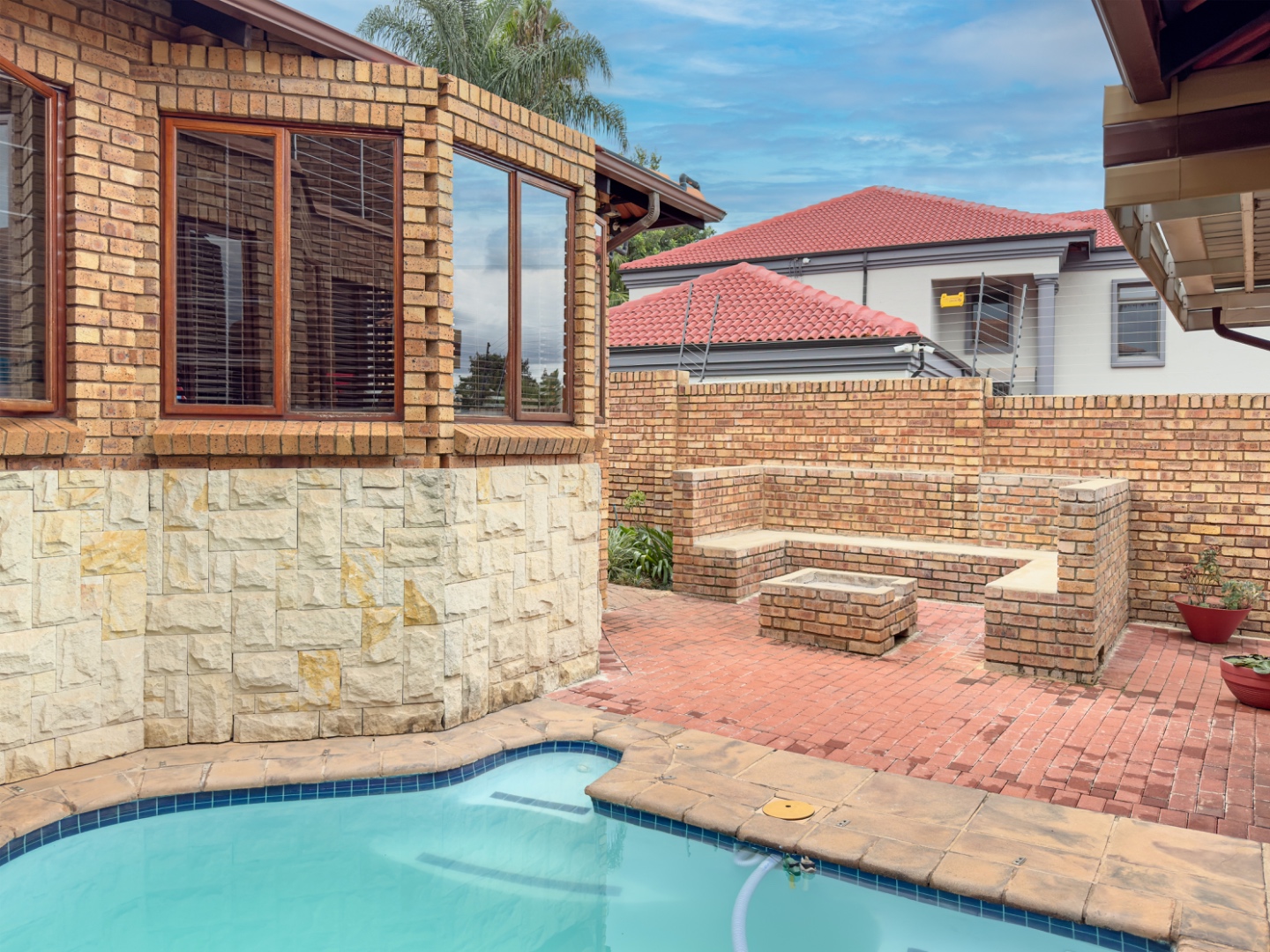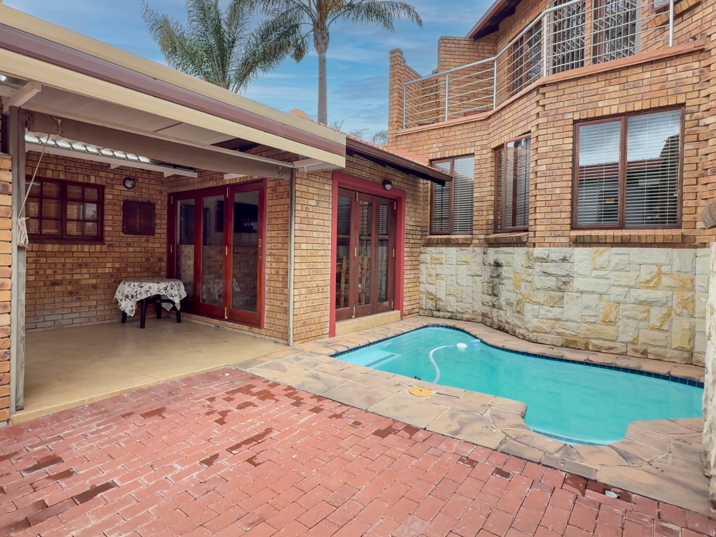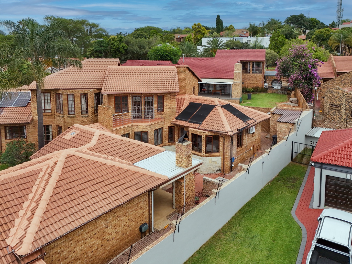 Nestled in the heart of Moreleta Park, this stunning home offers the perfect blend of comfort, security, and entertainment. The spacious interior boasts a TV lounge, a dining room, and a modern kitchen with granite countertops, a gas stove, and an electric oven. A separate scullery and pantry provide ample storage and functionality. The ground floor also features a guest toilet, a bar/study that can easily serve as a fourth bedroom, and a luxurious main suite complete with a full en-suite bathroom and a walk-in cupboard.