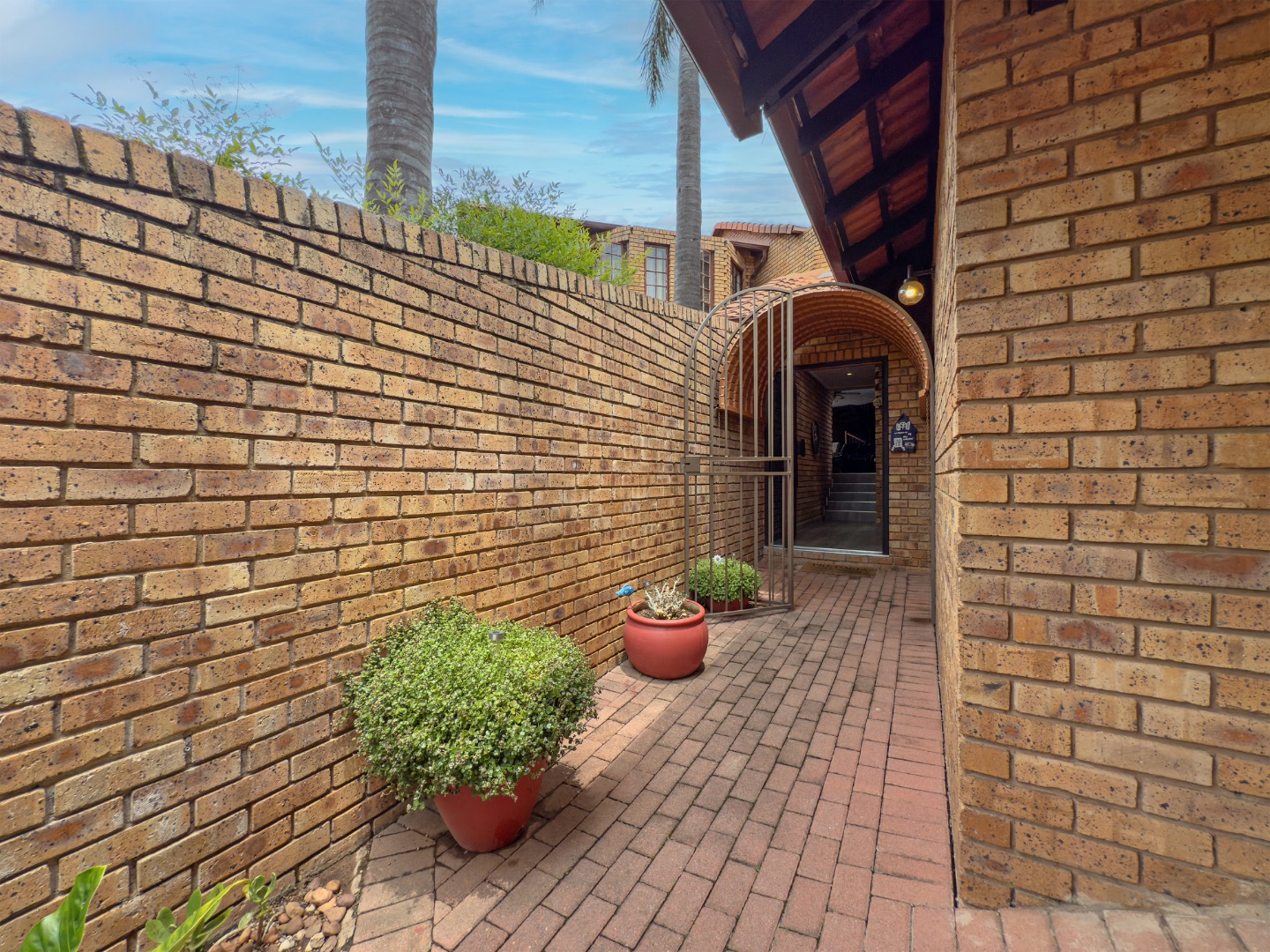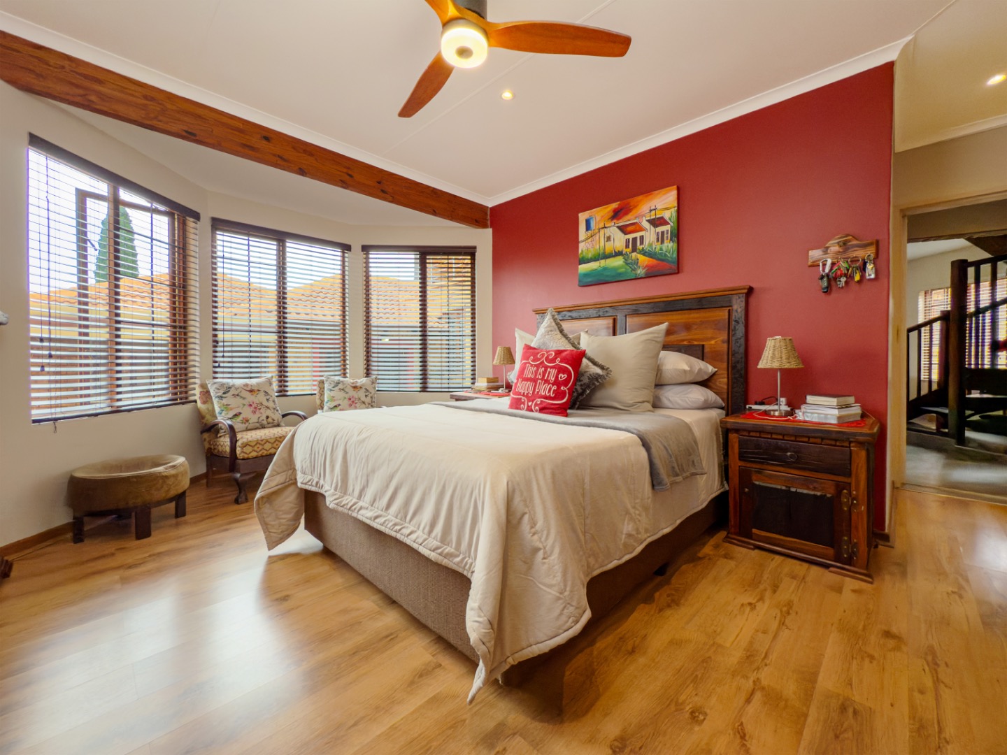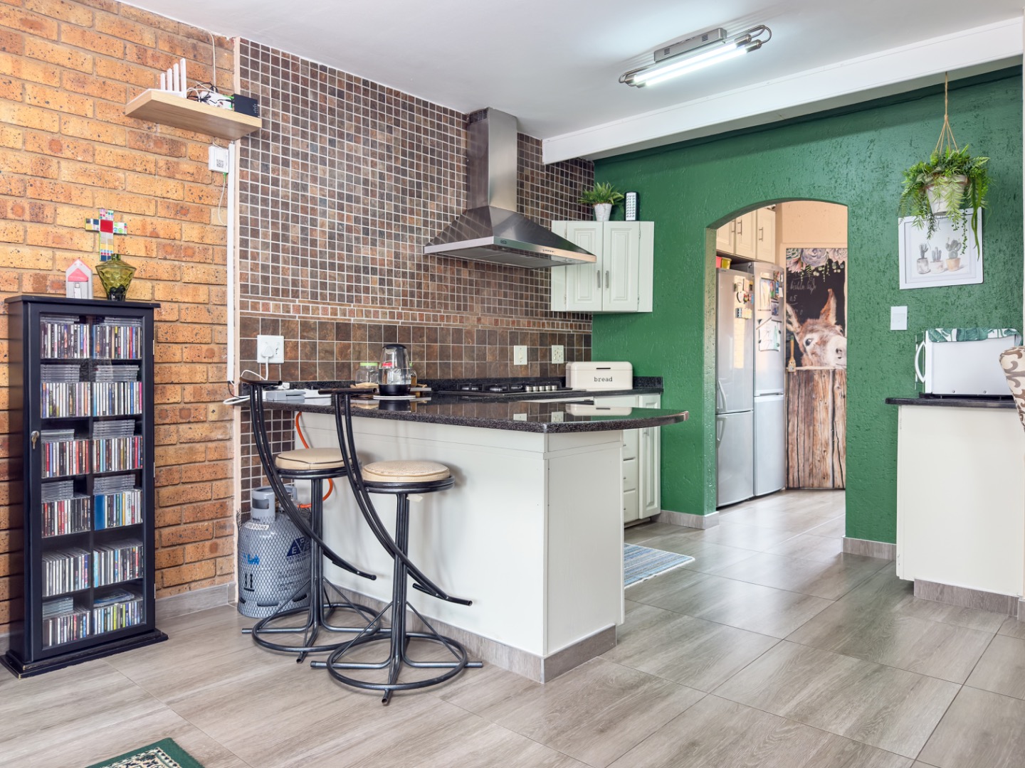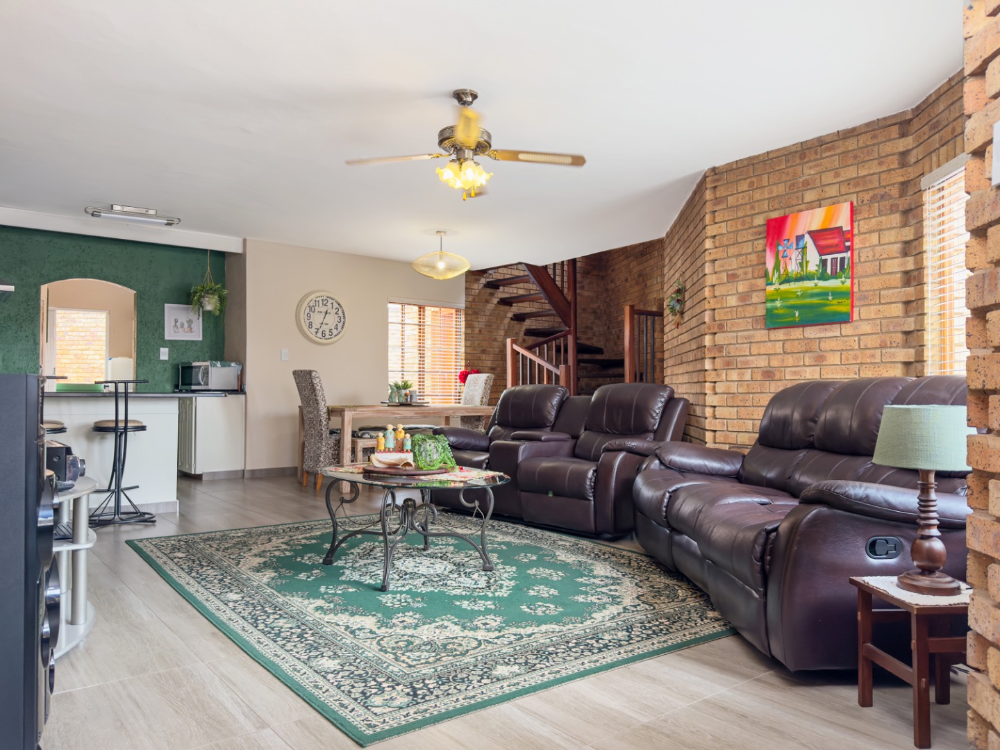 Nestled in the heart of Moreleta Park, this stunning home offers the perfect blend of comfort, security, and entertainment. The spacious interior boasts a TV lounge, a dining room, and a modern kitchen with granite countertops, a gas stove, and an electric oven. A separate scullery and pantry provide ample storage and functionality. The ground floor also features a guest toilet, a bar/study that can easily serve as a fourth bedroom, and a luxurious main suite complete with a full en-suite bathroom and a walk-in cupboard.