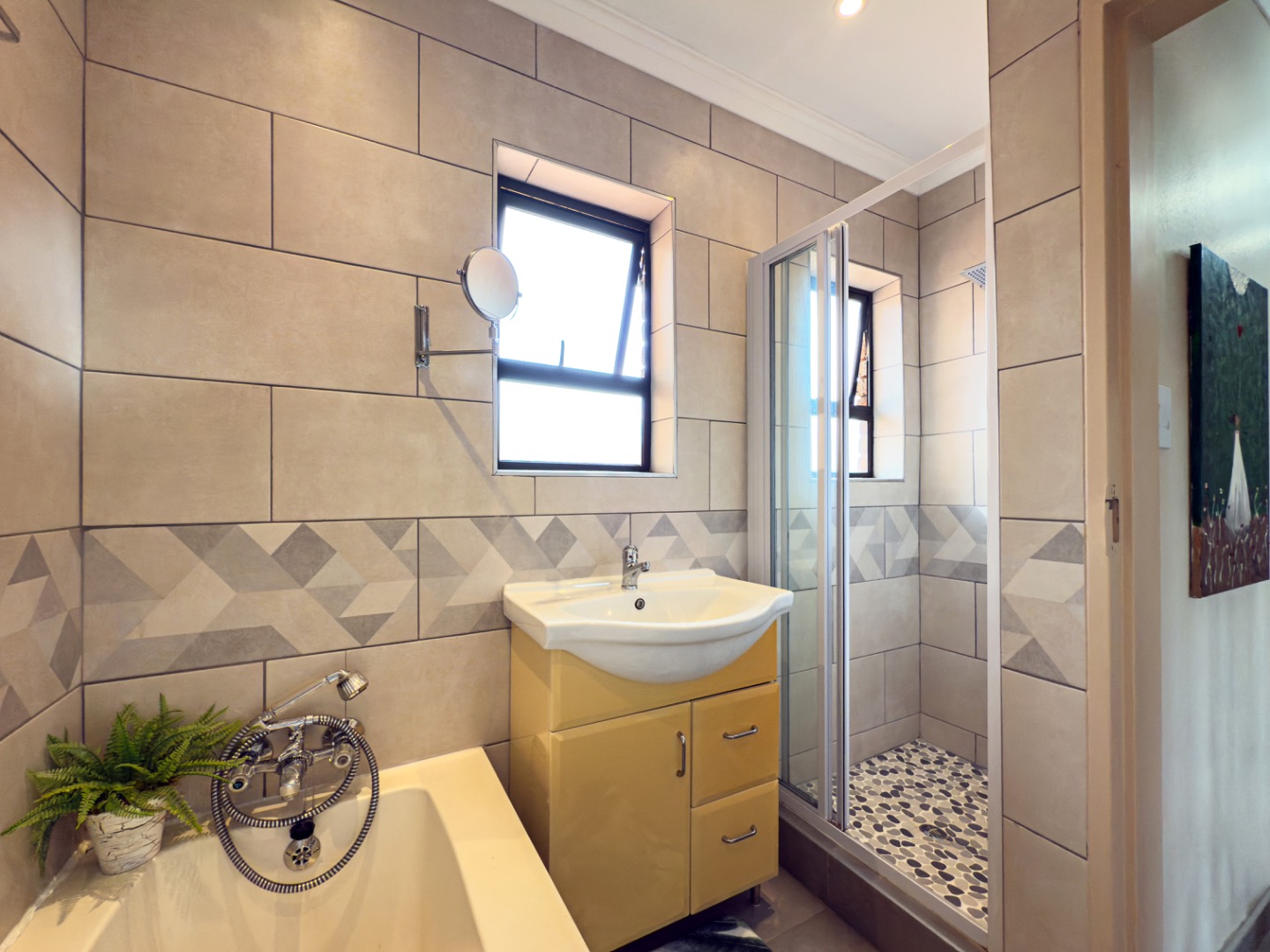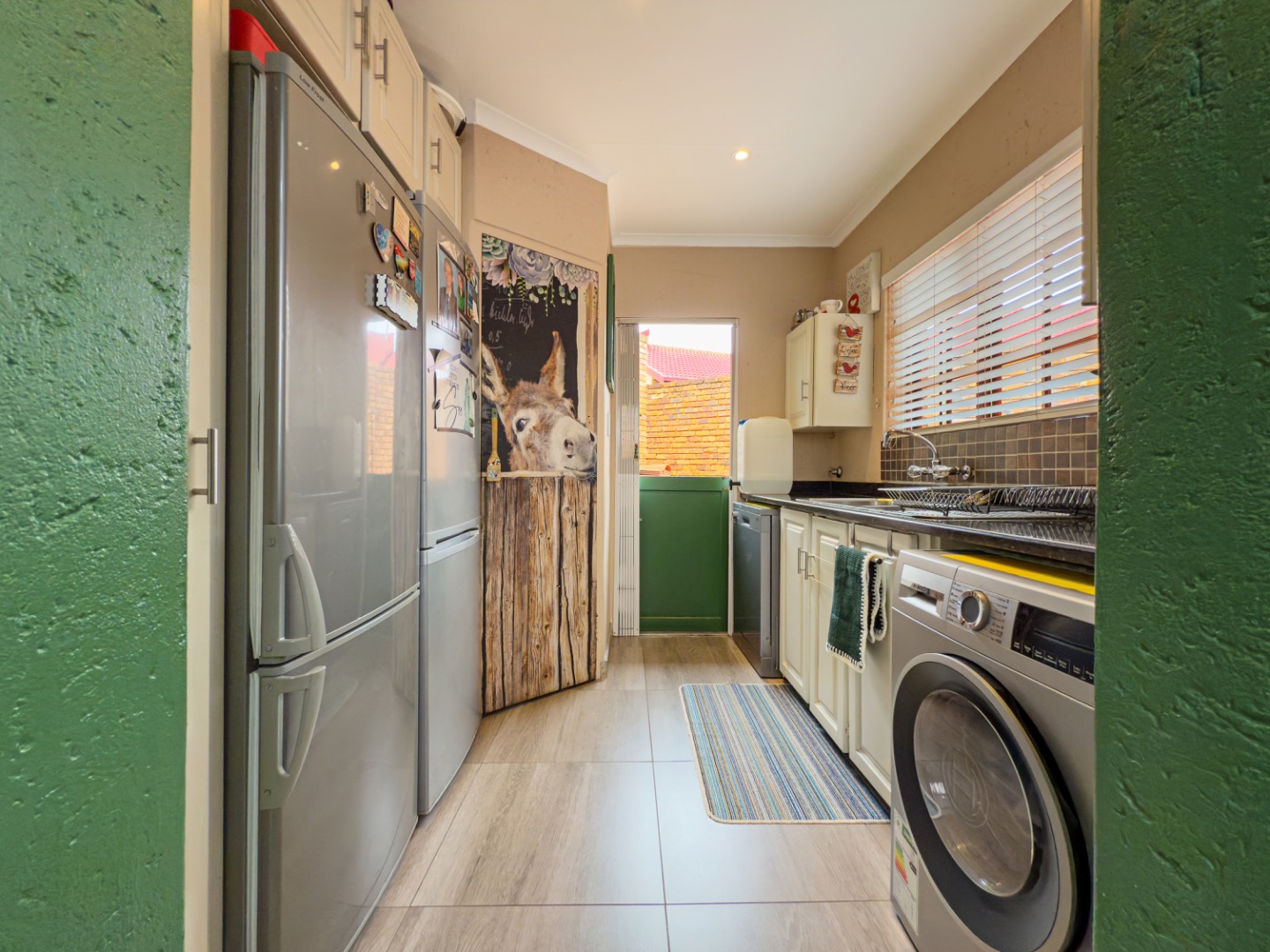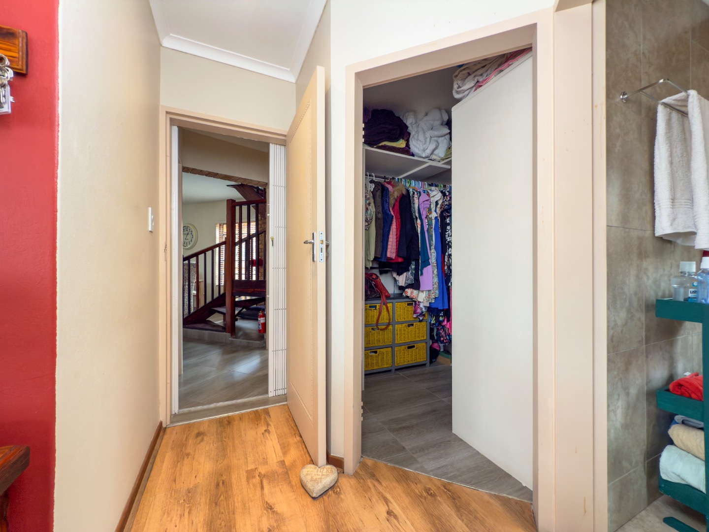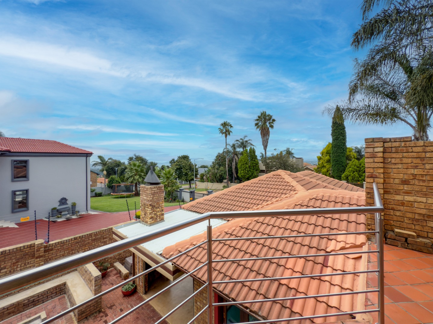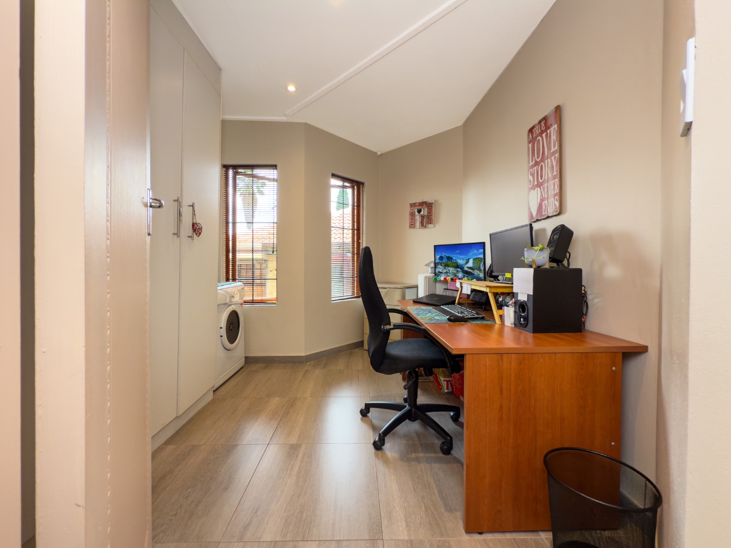 Nestled in the heart of Moreleta Park, this stunning home offers the perfect blend of comfort, security, and entertainment. The spacious interior boasts a TV lounge, a dining room, and a modern kitchen with granite countertops, a gas stove, and an electric oven. A separate scullery and pantry provide ample storage and functionality. The ground floor also features a guest toilet, a bar/study that can easily serve as a fourth bedroom, and a luxurious main suite complete with a full en-suite bathroom and a walk-in cupboard.