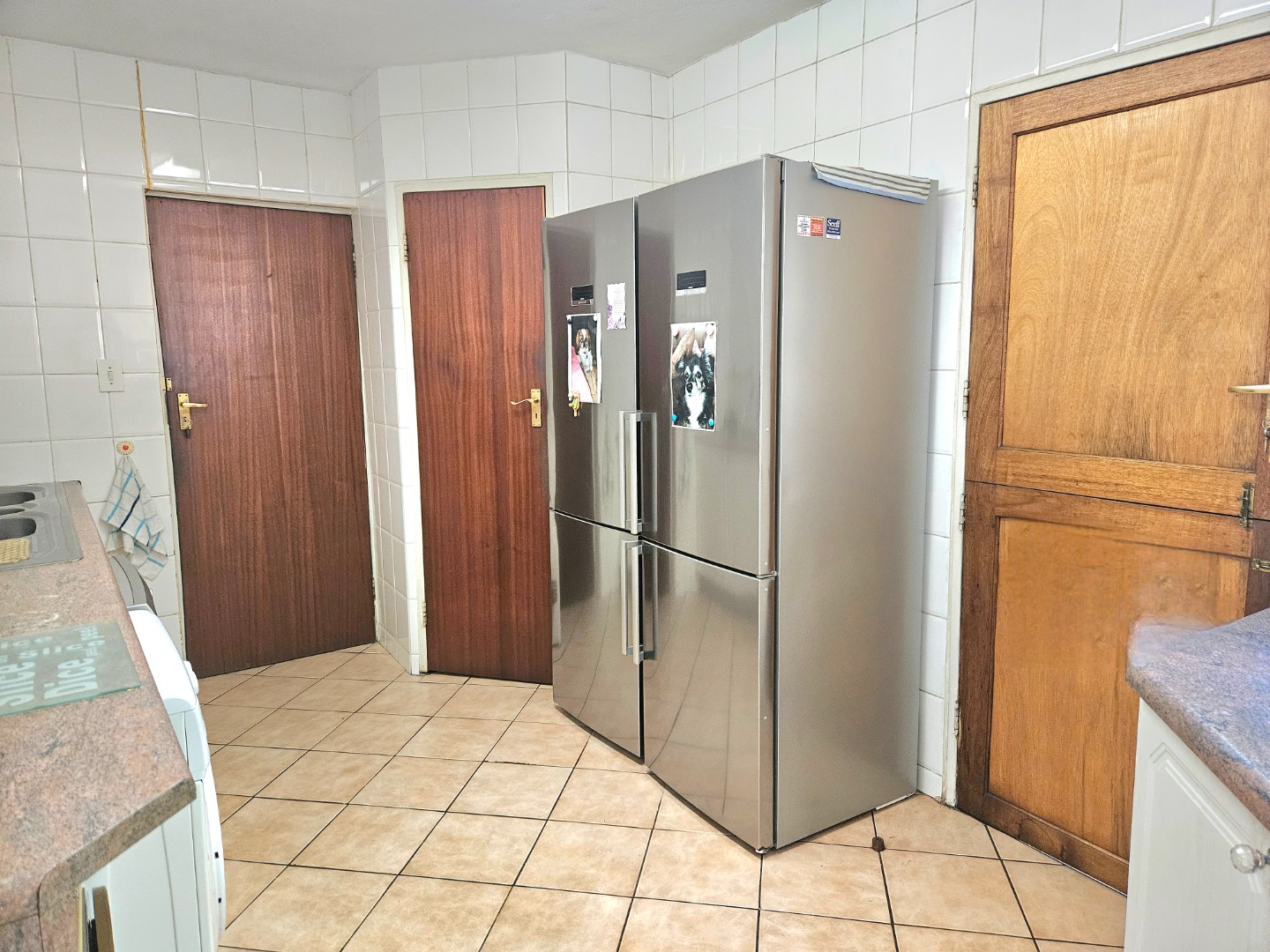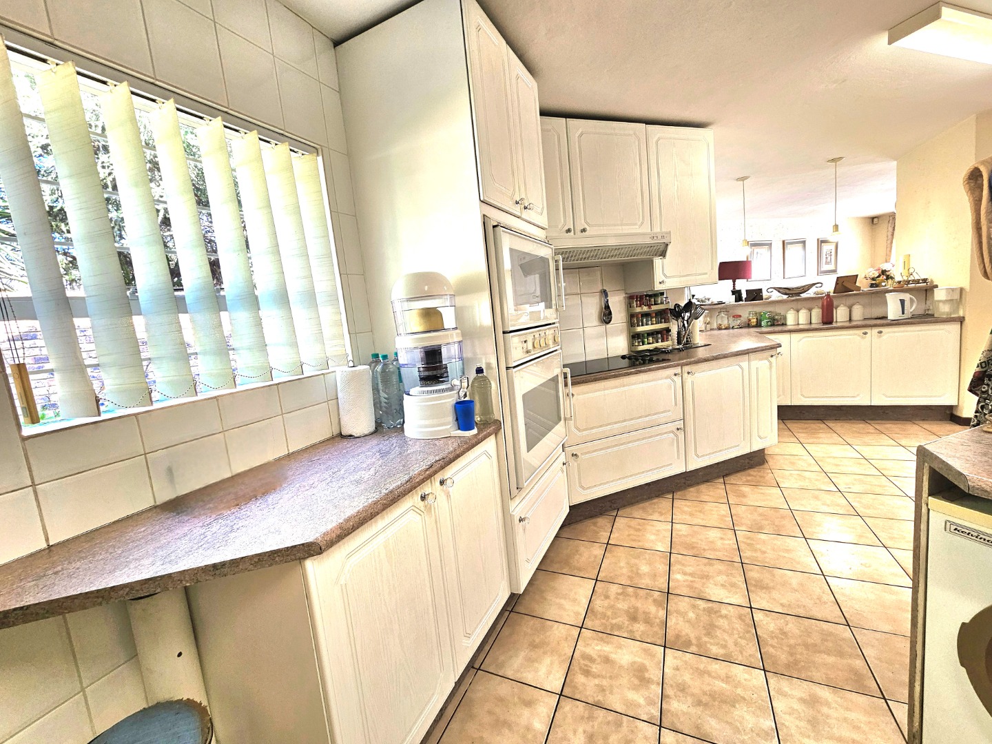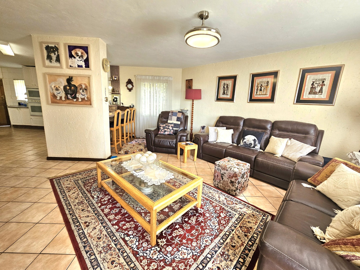 Situated atop a hill, this beautiful home offers breathtaking views, generous living spaces, a sunny patio and the comfort of solar power. The lower level features four versatile living areas: a private lounge or study, a spacious dining room with a built-in bar ideal for entertaining, and a TV room seamlessly integrated with the kitchen. Both the dining and TV room open through sliding doors into an enclosed patio with sliding windows and doors, flowing into the beautifully landscaped garden. The well-appointed kitchen includes a breakfast nook, ample cupboard space extending into the scullery, a pantry, and room for double fridges as well as three appliances—perfect for modern family living.