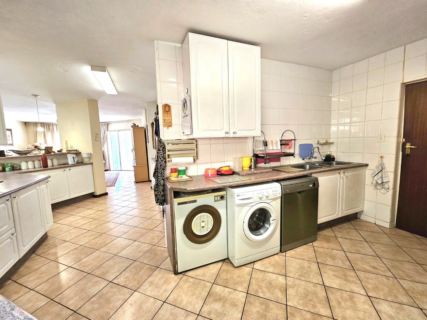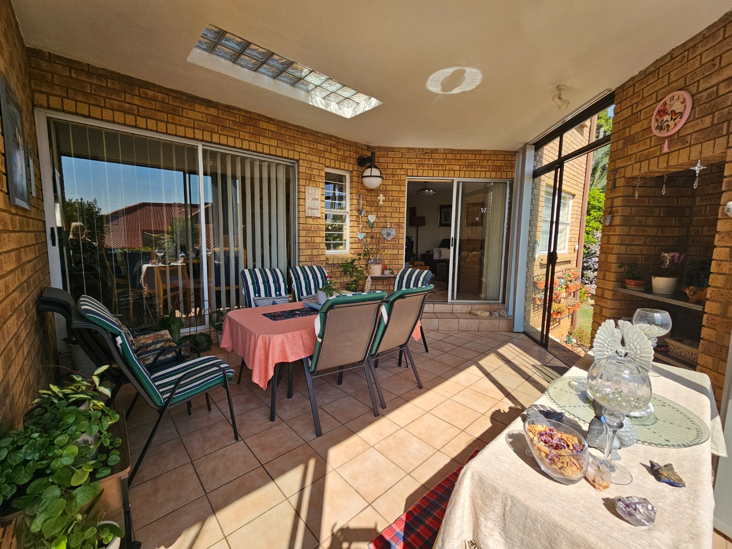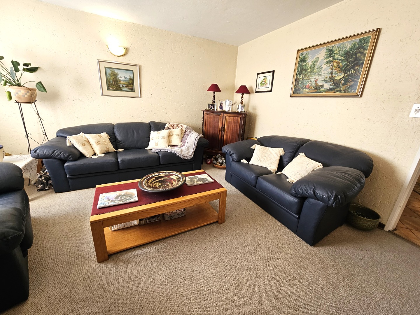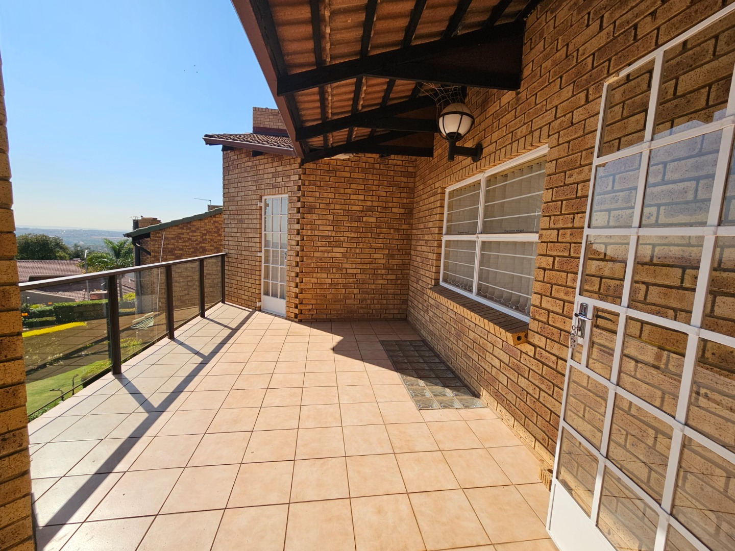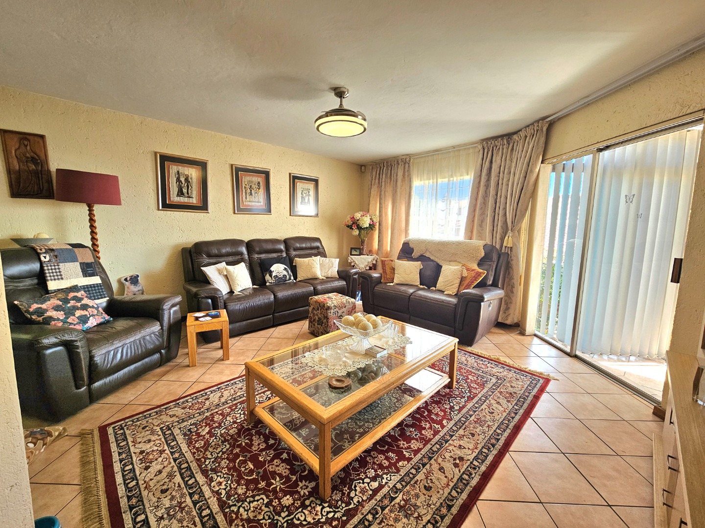 Situated atop a hill, this beautiful home offers breathtaking views, generous living spaces, a sunny patio and the comfort of solar power. The lower level features four versatile living areas: a private lounge or study, a spacious dining room with a built-in bar ideal for entertaining, and a TV room seamlessly integrated with the kitchen. Both the dining and TV room open through sliding doors into an enclosed patio with sliding windows and doors, flowing into the beautifully landscaped garden. The well-appointed kitchen includes a breakfast nook, ample cupboard space extending into the scullery, a pantry, and room for double fridges as well as three appliances—perfect for modern family living.