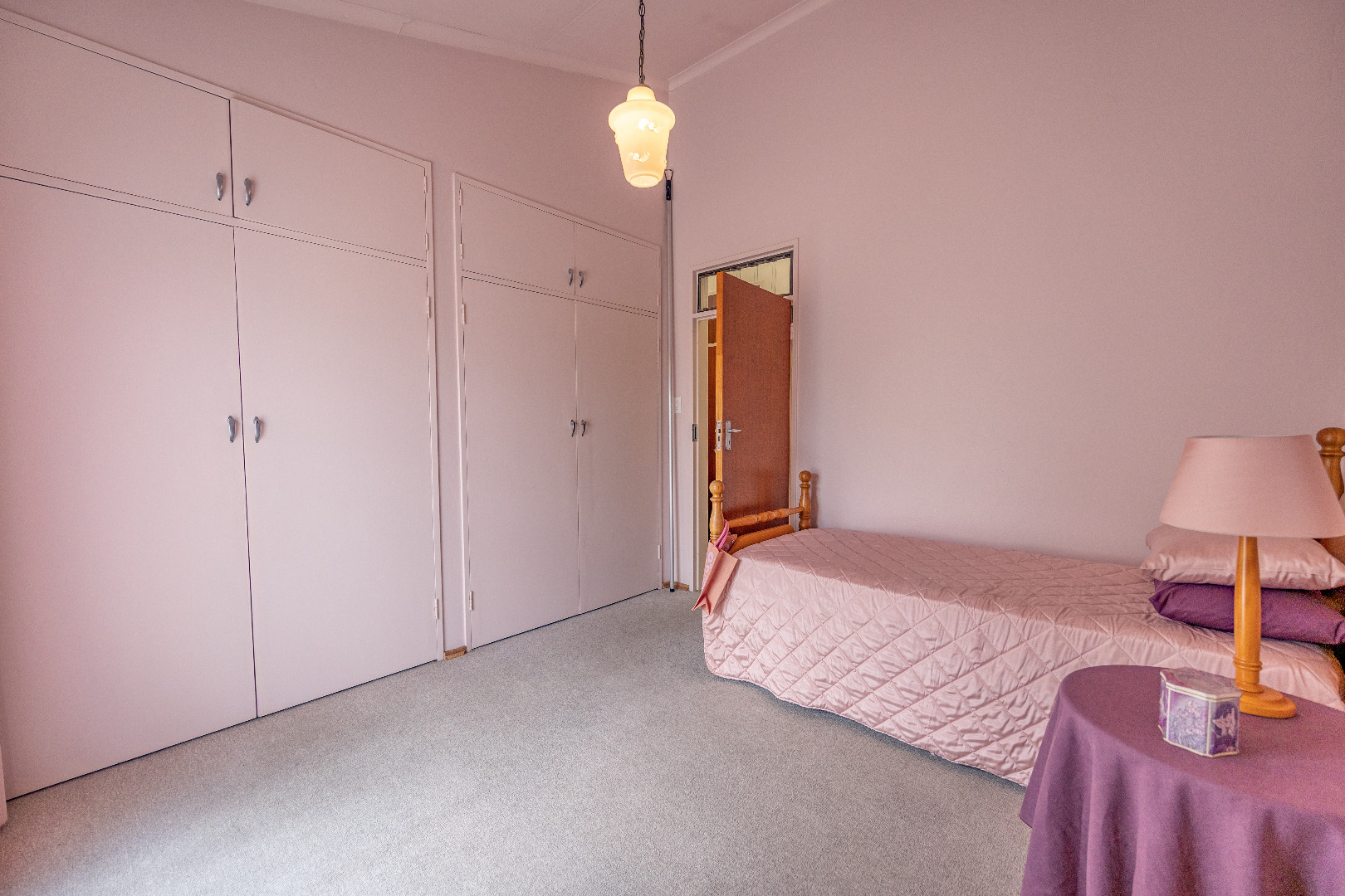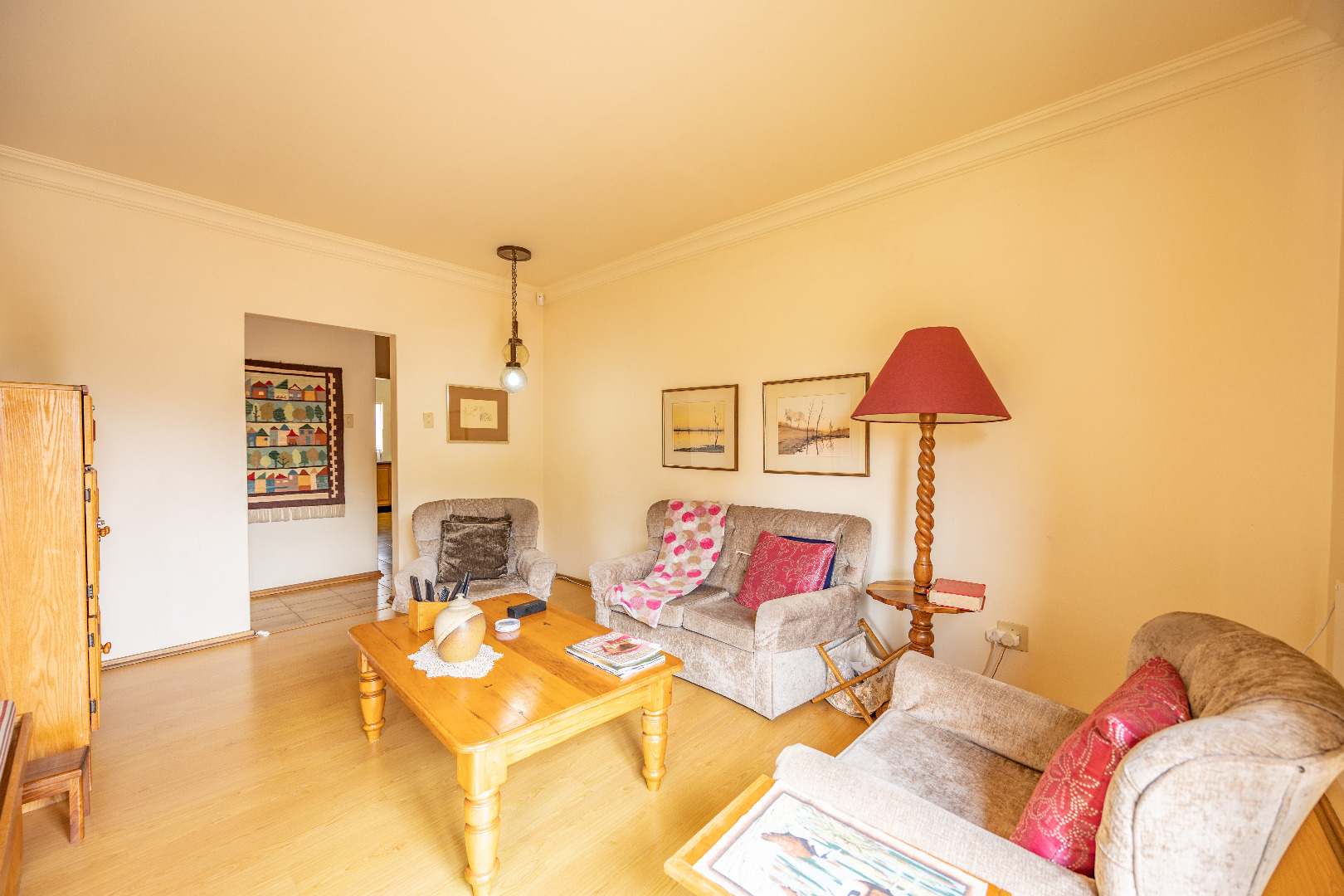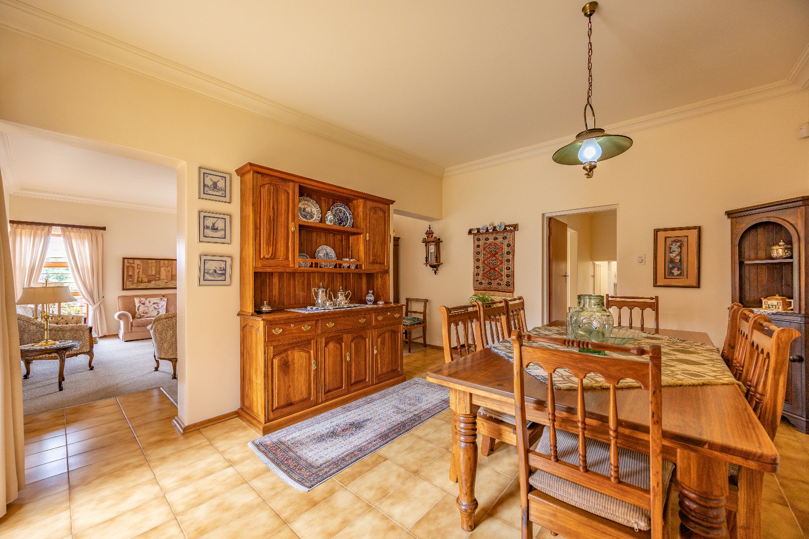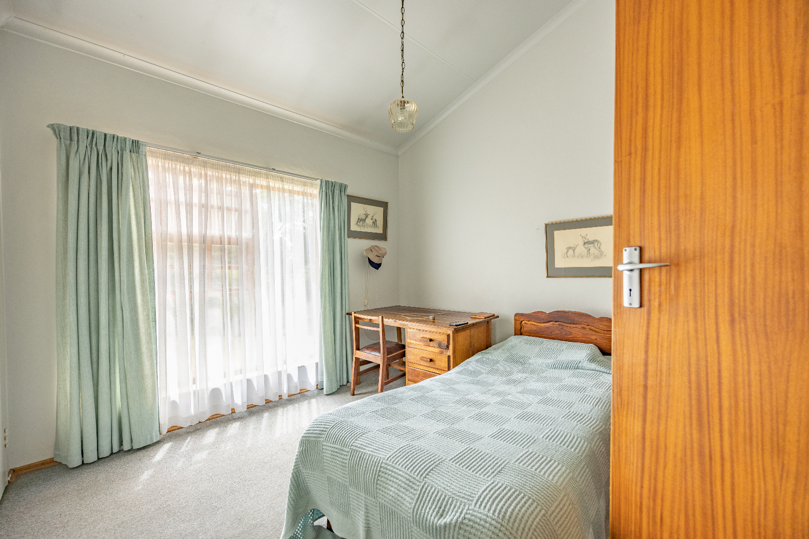Accommodation is generous with three well-sized downstairs bedrooms, all carpeted with built-in cupboards. The main bedroom is particularly spacious with ample cupboards and an en-suite bathroom. Additional bathrooms include one with a bath and basin, a separate shower and toilet, and a family bathroom upstairs that serves the fourth bedroom. Upstairs, a spacious carpeted bedroom with built-in cupboards adds versatility, perfect for a guest suite or teenager’s retreat.