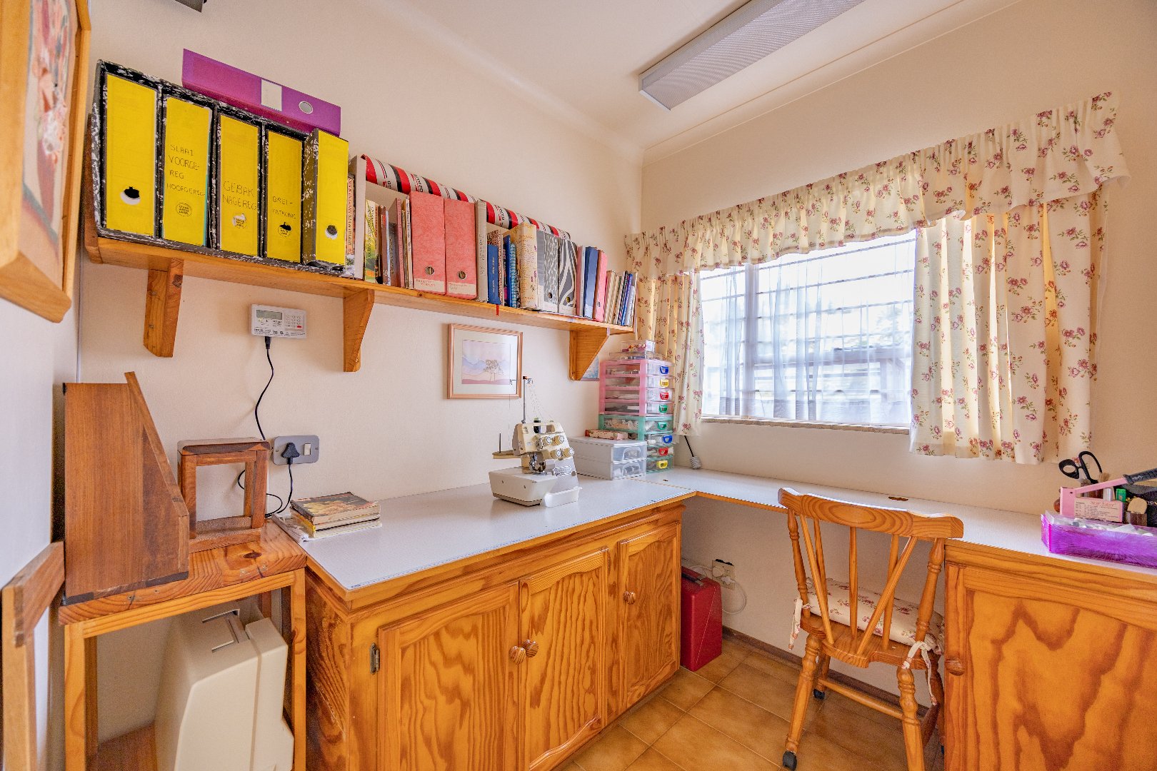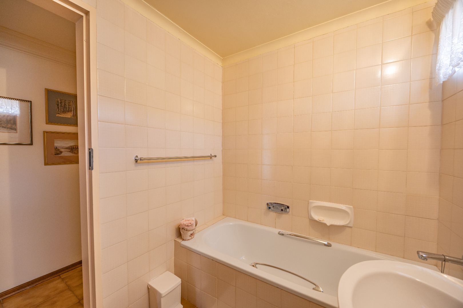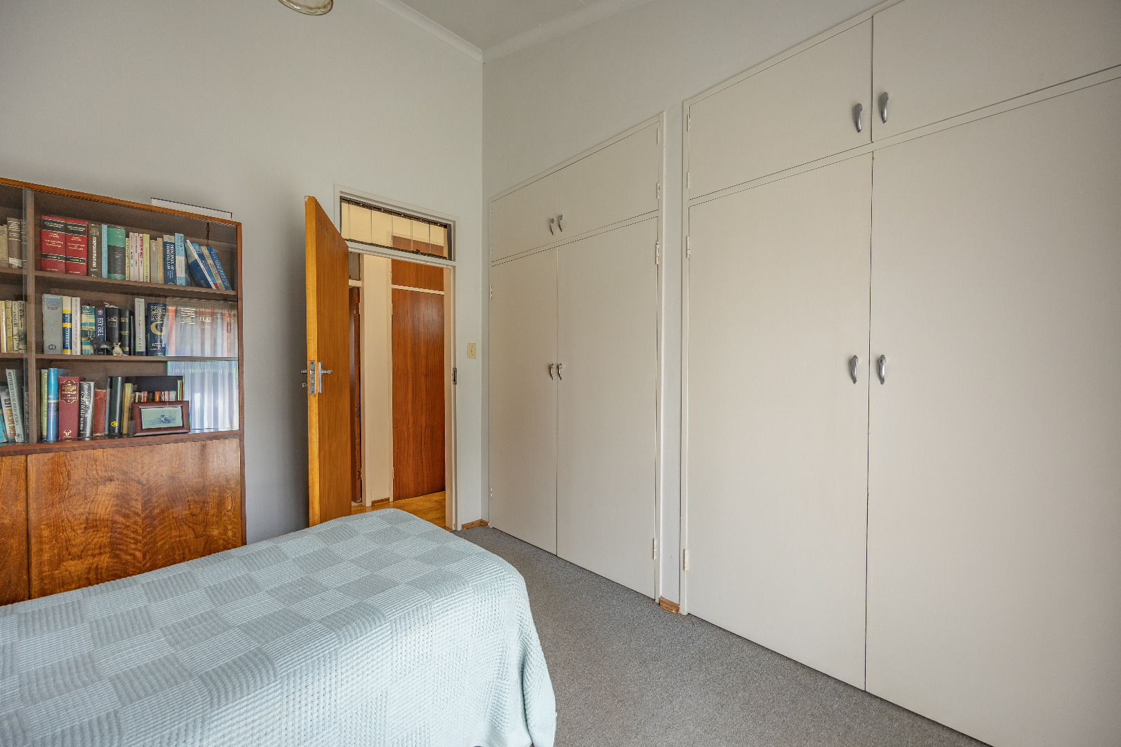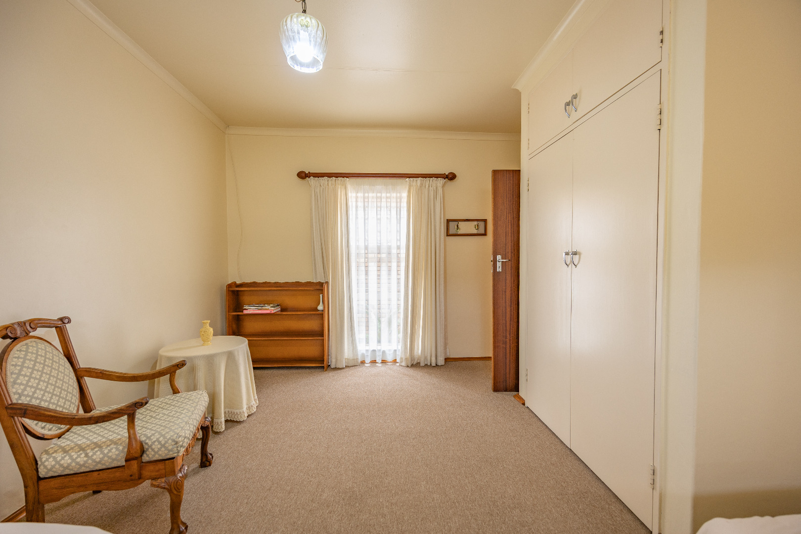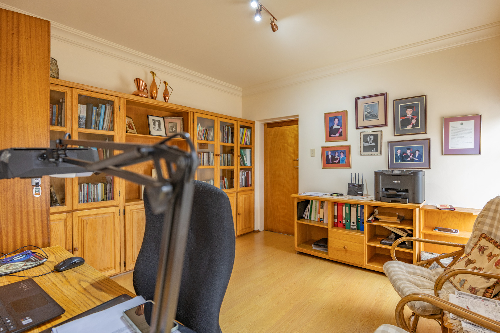 Accommodation is generous with three well-sized downstairs bedrooms, all carpeted with built-in cupboards. The main bedroom is particularly spacious with ample cupboards and an en-suite bathroom. Additional bathrooms include one with a bath and basin, a separate shower and toilet, and a family bathroom upstairs that serves the fourth bedroom. Upstairs, a spacious carpeted bedroom with built-in cupboards adds versatility, perfect for a guest suite or teenager’s retreat.