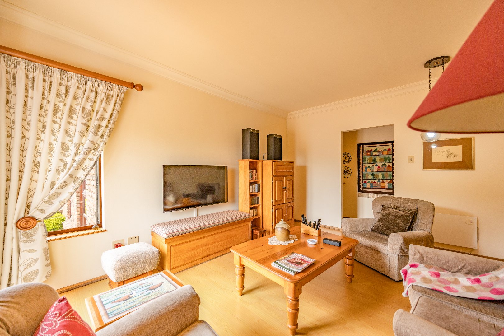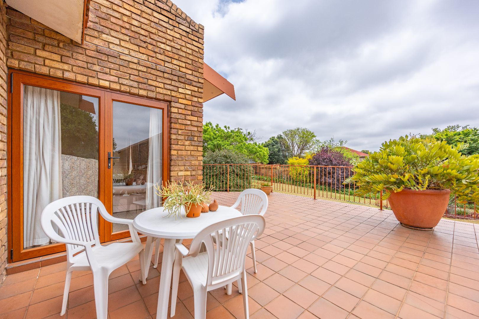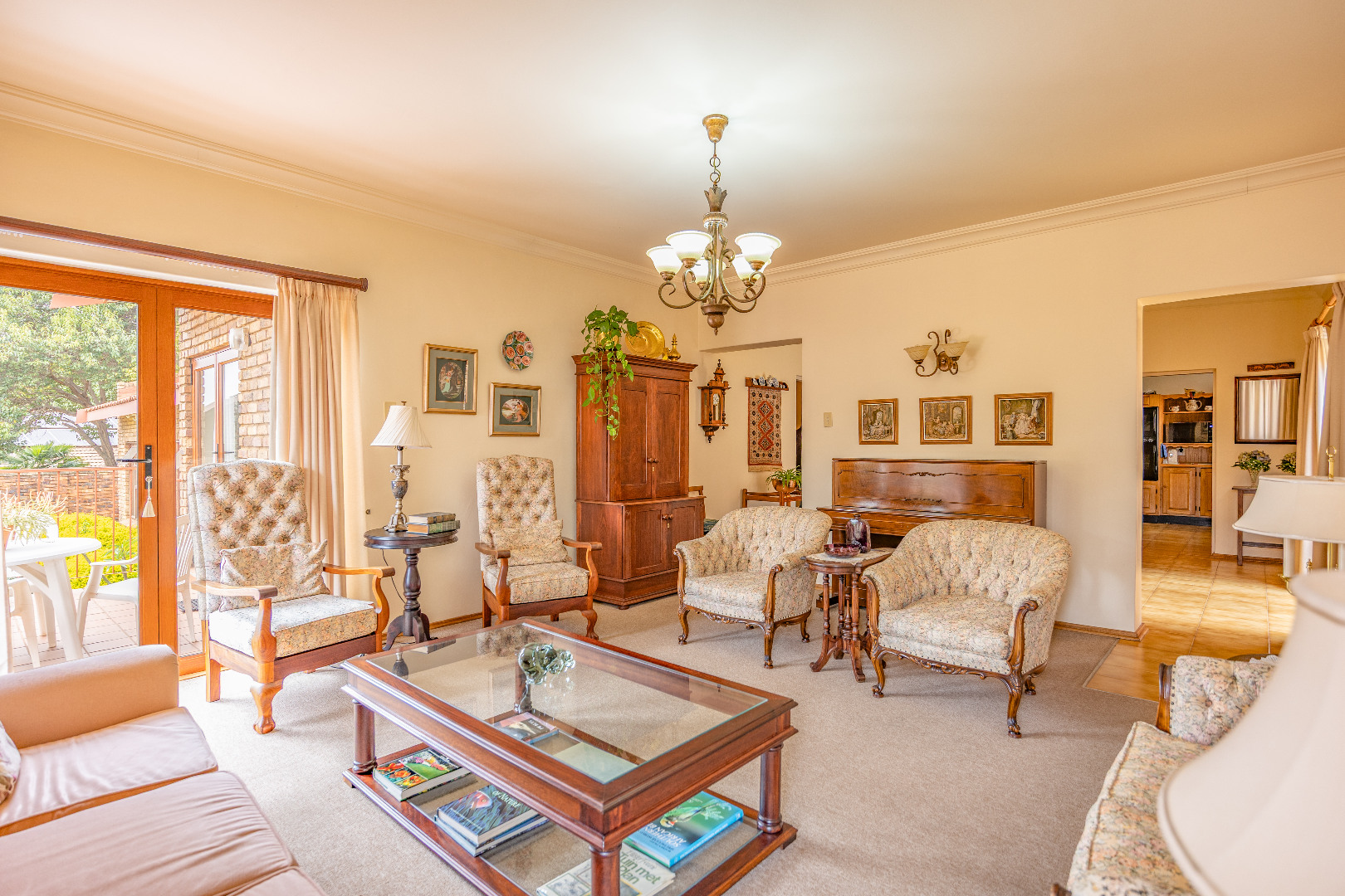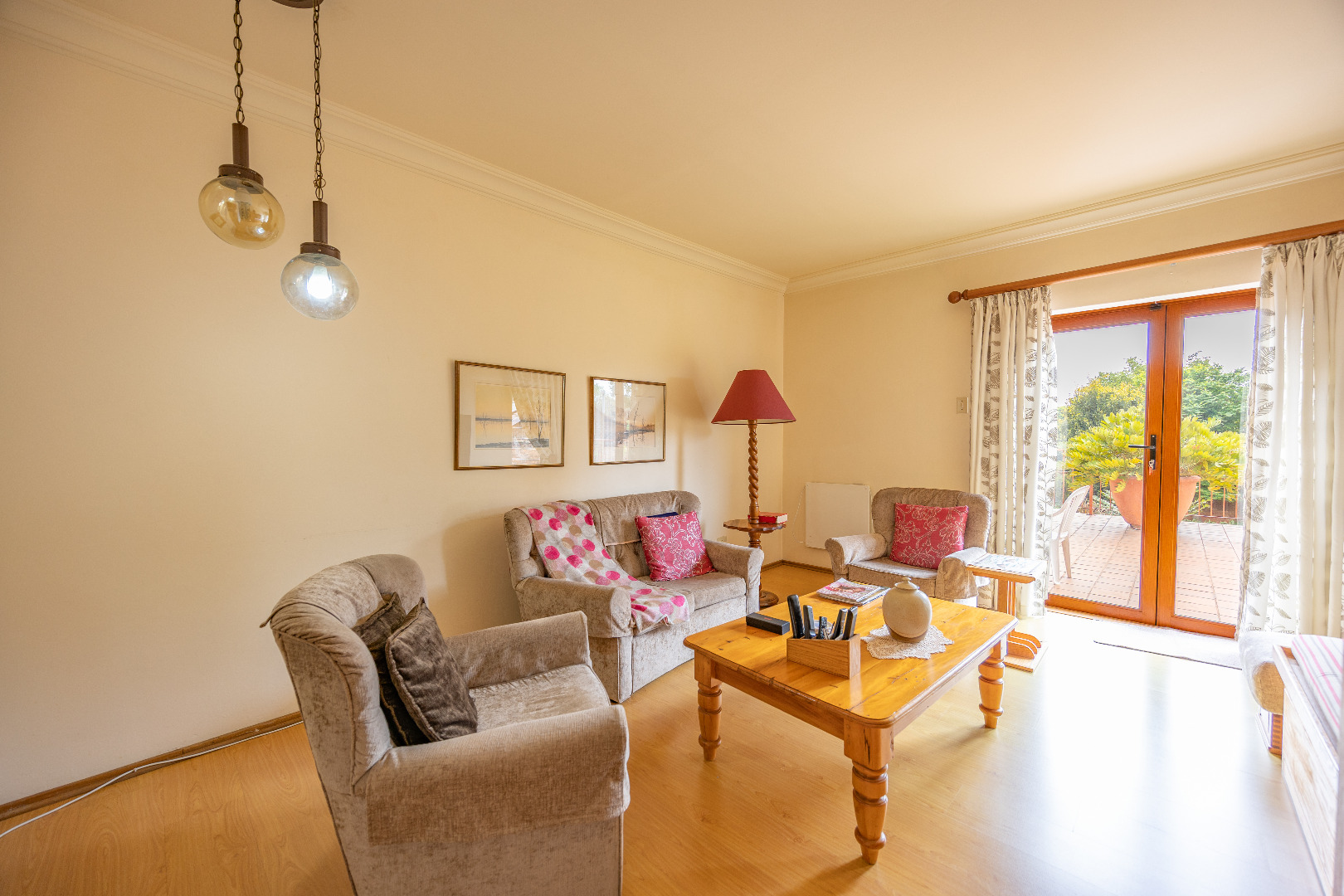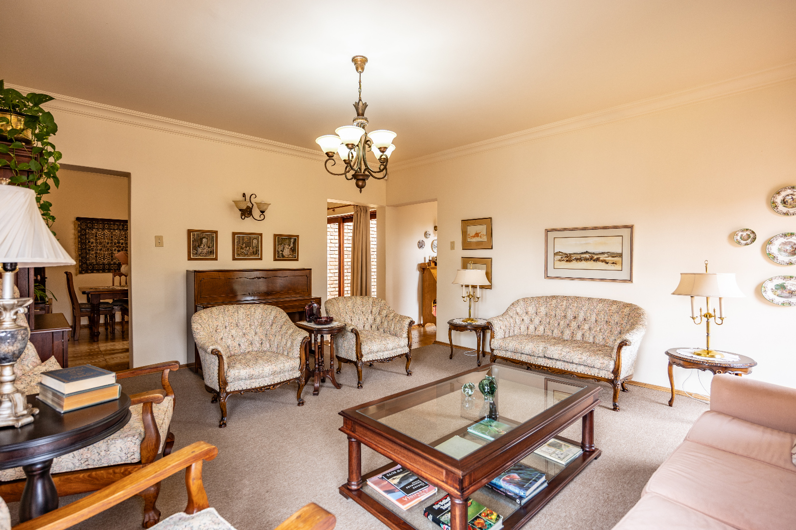 Accommodation is generous with three well-sized downstairs bedrooms, all carpeted with built-in cupboards. The main bedroom is particularly spacious with ample cupboards and an en-suite bathroom. Additional bathrooms include one with a bath and basin, a separate shower and toilet, and a family bathroom upstairs that serves the fourth bedroom. Upstairs, a spacious carpeted bedroom with built-in cupboards adds versatility, perfect for a guest suite or teenager’s retreat.