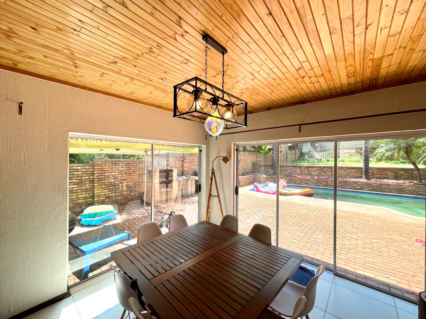 Inside, versatility is the theme. Three open-plan living areas flow seamlessly into a separate lounge, while a beautifully redone kitchen with granite countertops, breakfast nook, walk-in pantry, and separate scullery brings both style and practicality. A private study adds the perfect work-from-home setup, giving the home multiple layers of functionality.