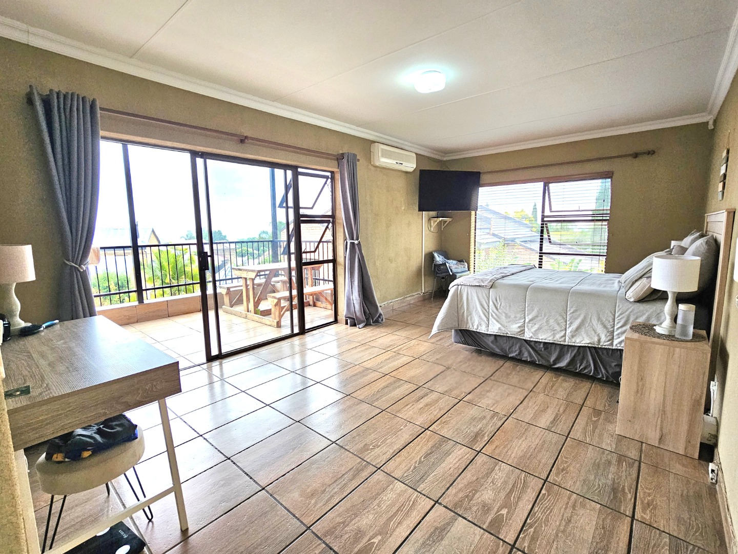 Comfort is paramount with five generously sized bedrooms, three upstairs and two downstairs. The large master bedroom has it's own balcony ideal for relaxation while enjoying the view, a built in closet and en-suite bathroom, with additional 1.5 bathrooms downstairs. The bathrooms are neatly tiled, offering a clean and practical aesthetic.