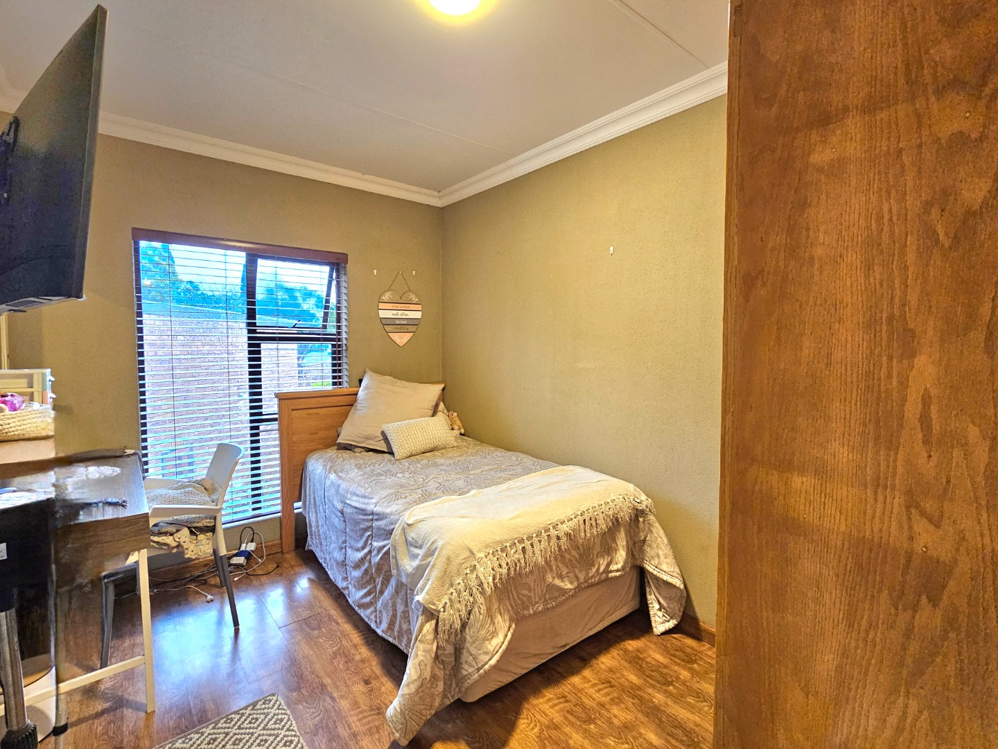 Step outside to a private oasis featuring a sparkling heated swimming pool, beautiful garden, a spacious patio, and a braai room with its coaland a built-in braai, ideal for outdoor living and entertaining. The property also benefits from a well-maintained garden with an irrigation system, outside toilets, a wendy, a double garage, additional parking spaces and an alarm system.