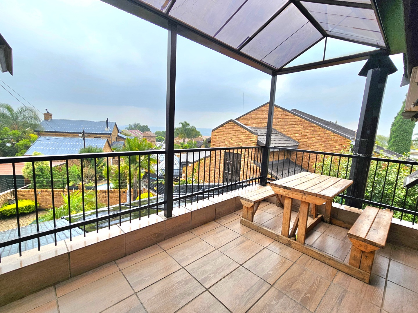 Comfort is paramount with five generously sized bedrooms, three upstairs and two downstairs. The large master bedroom has it's own balcony ideal for relaxation while enjoying the view, a built in closet and en-suite bathroom, with additional 1.5 bathrooms downstairs. The bathrooms are neatly tiled, offering a clean and practical aesthetic.