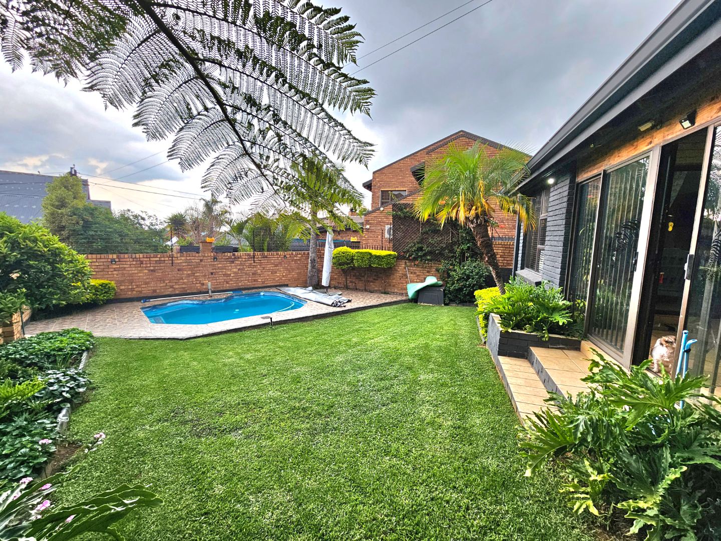 Step outside to a private oasis featuring a sparkling heated swimming pool, beautiful garden, a spacious patio, and a braai room with its coaland a built-in braai, ideal for outdoor living and entertaining. The property also benefits from a well-maintained garden with an irrigation system, outside toilets, a wendy, a double garage, additional parking spaces and an alarm system.