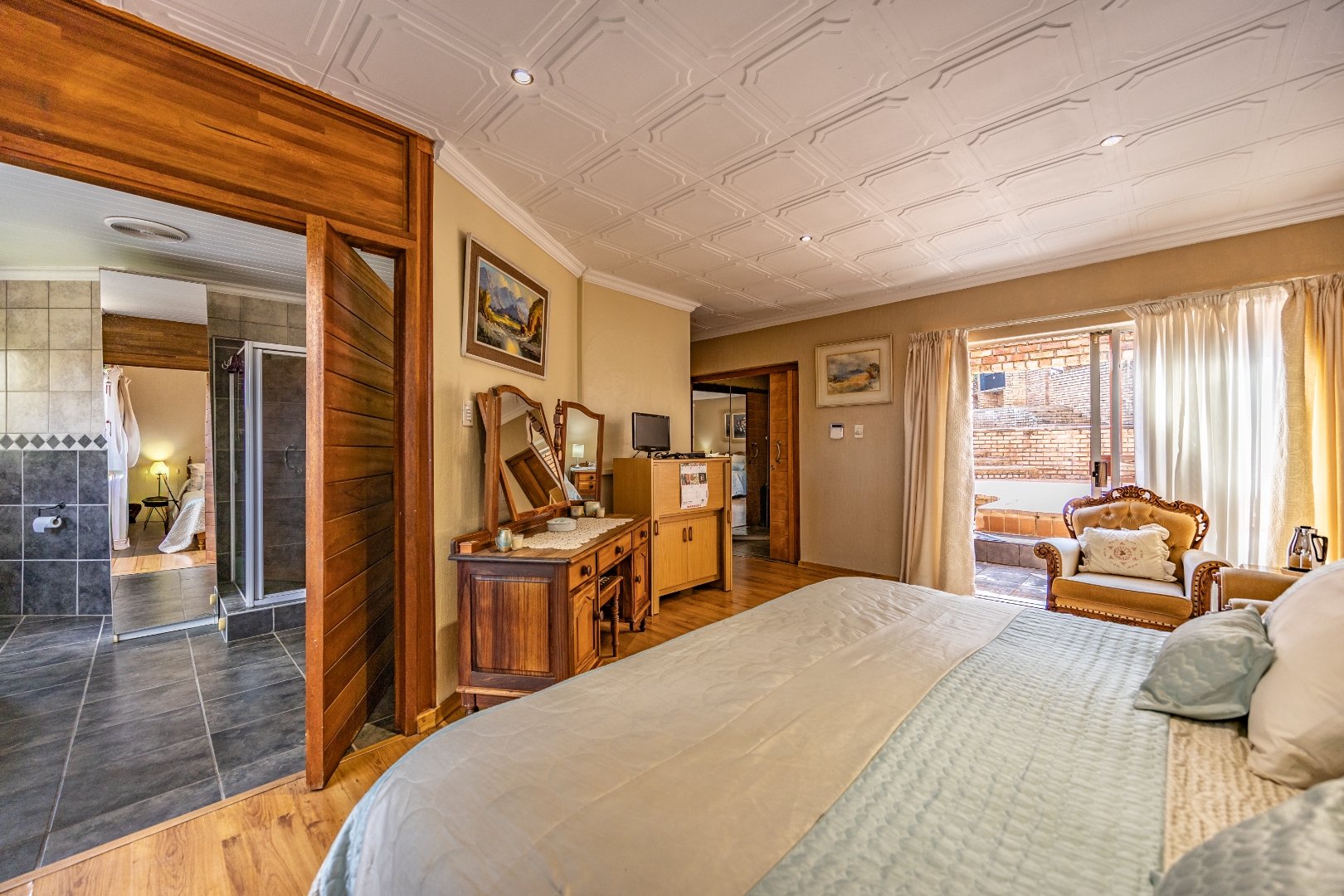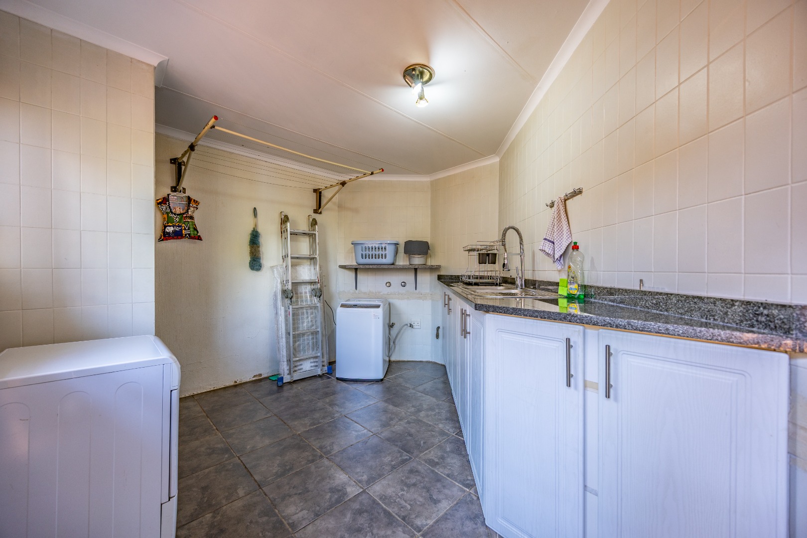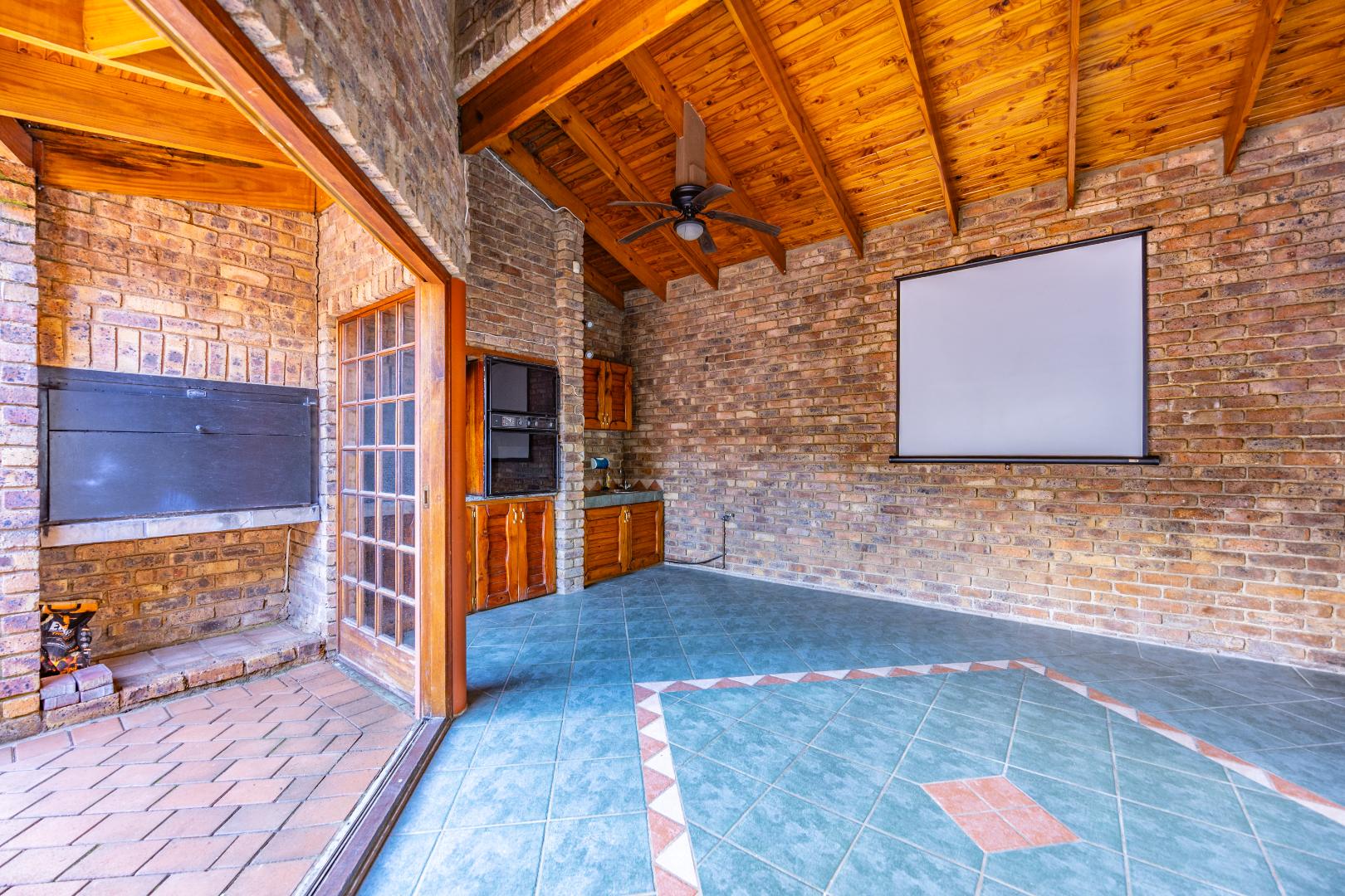 Entertainment is where this property truly shines. Living areas open onto a large entertainment zone overlooking the sparkling pool, complete with a built-in braai, extractor, bar area (included) and additional built-in ovens and electric hobs ideal for year-round hosting. A second outdoor braai area by the pool, currently suitable as a smoker or easily convertible into one, adds even more possibility. Downstairs, a private wine cellar completes the entertainer’s picture, while three automated garages, multiple storage rooms and a pool with pump ensure convenience matches the scale of the home.