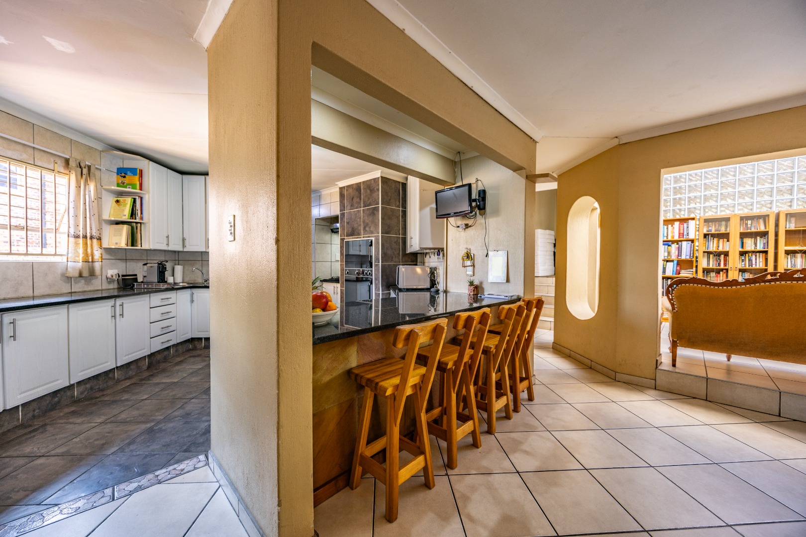 This expansive five-bedroom home in the heart of Moreleta Park is designed for those who value space, flexibility and effortless living. From the welcoming entrance hall, multiple living areas unfold seamlessly into a generous dining space and an open-plan kitchen fitted with a five-burner gas hob, double built-in ovens, breakfast nook, large walk-in pantry and separate scullery leading to the garages. A sun-filled reading room adds warmth and versatility, while the dedicated study with built-in cupboards makes working from home both practical and private. Every space flows naturally, creating a home that feels open, functional and ready to adapt to your lifestyle.
