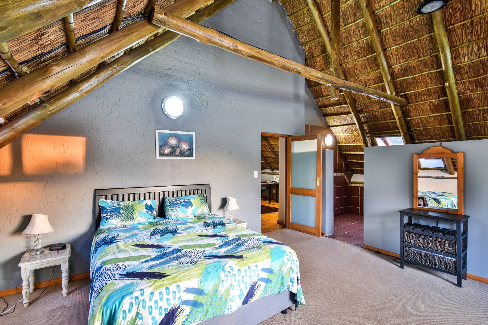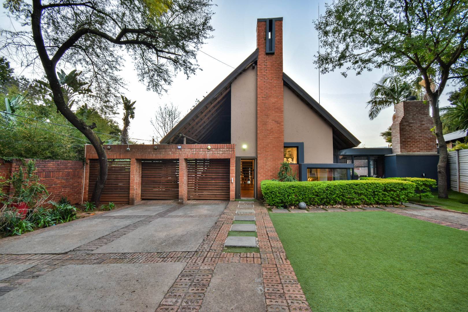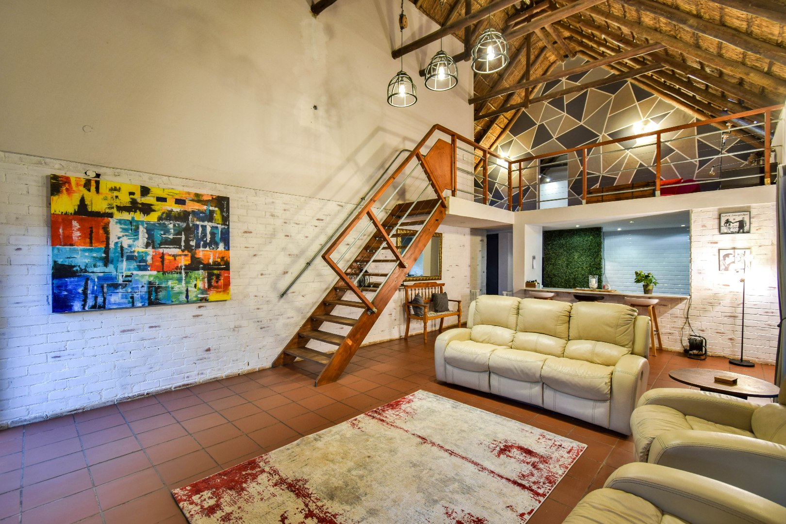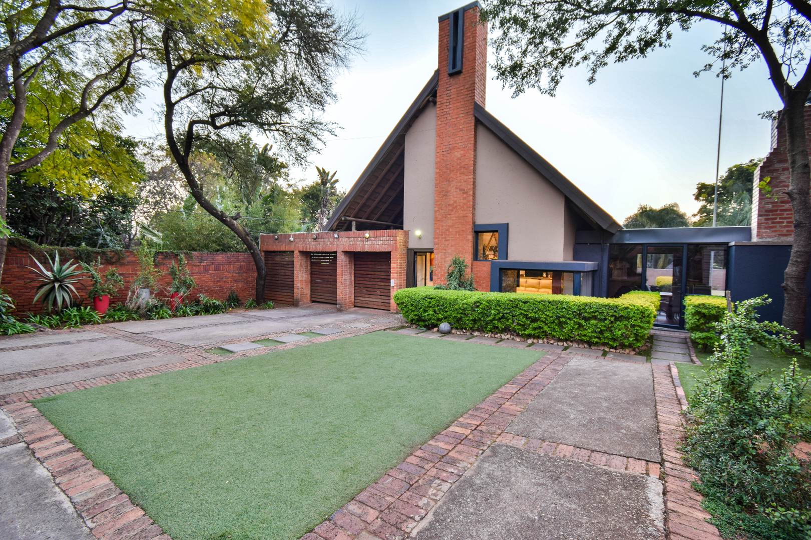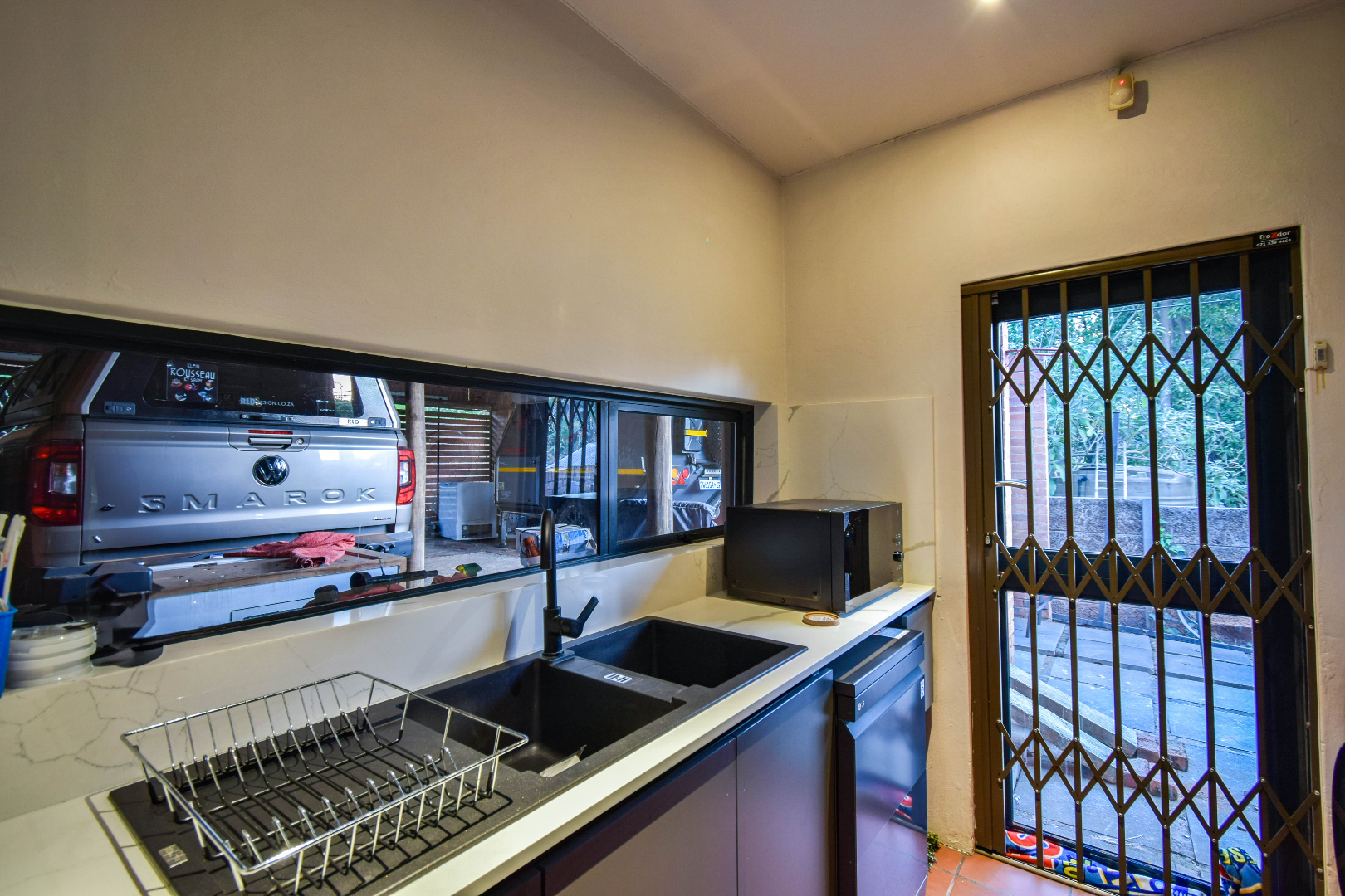 Outdoor features include a covered braai area with aluminum stacker doors and built-in doggy doors—perfect for relaxed entertaining. The well-maintained wrap-around garden offers plenty of space for pets and children to enjoy. Additional highlights include JoJo tank and a borehole that is ready as an optional connection. Sustainable living is made easy with 16 solar panels, an 8kW inverter and 15kWh battery system The property also boasts a tiled Havi-tiled roof, three garages, and thoughtful extras such as filtered water to taps and geysers, a geyser on WiFi timer, and modern finishes throughout. This is a refined, well-designed home ready for comfortable and stylish family living.