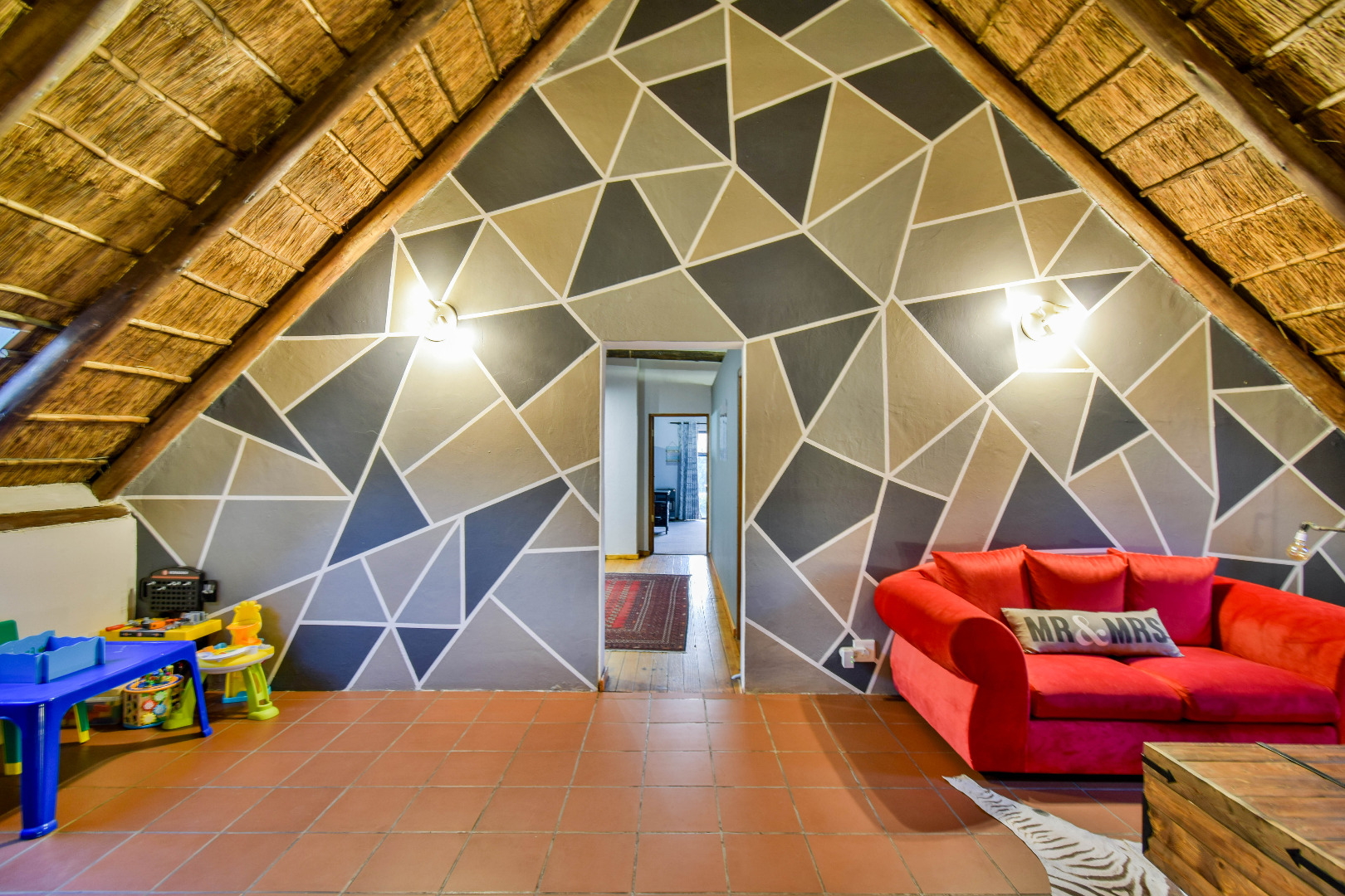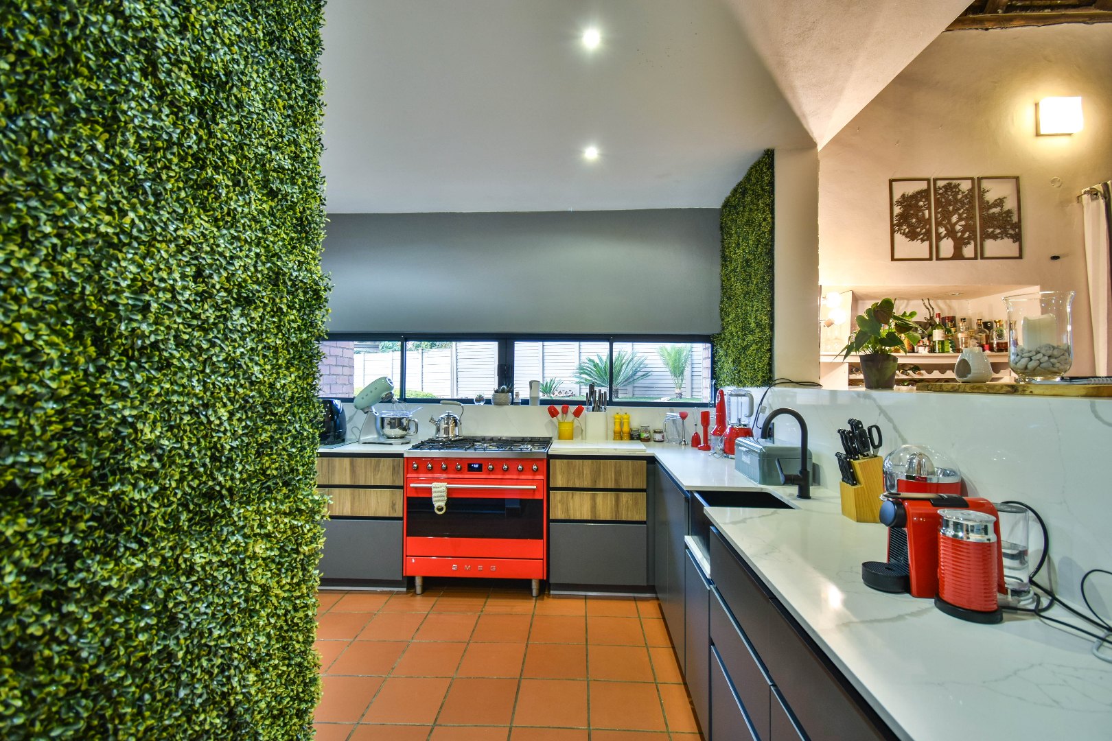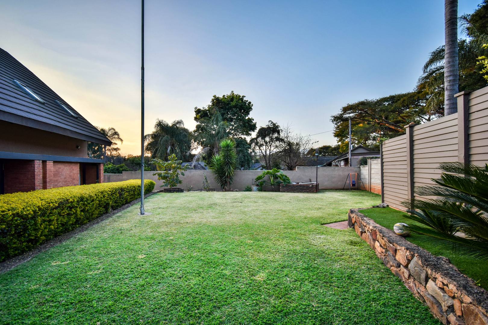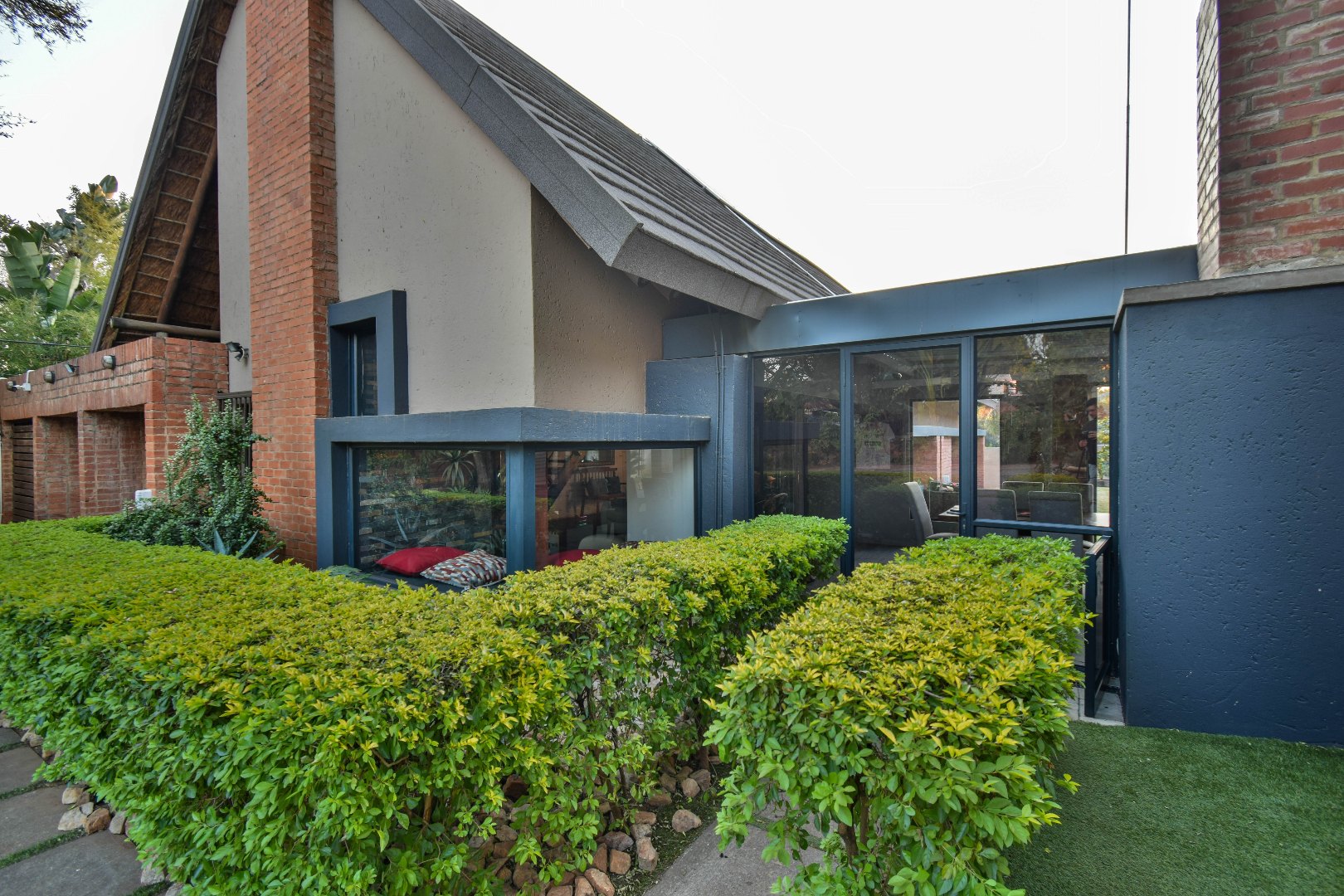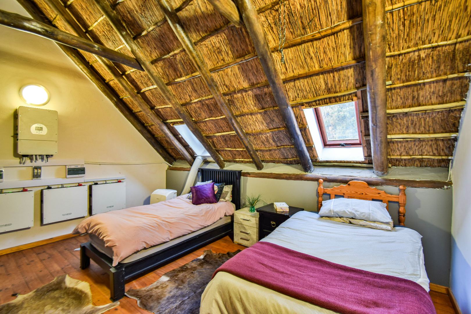 Outdoor features include a covered braai area with aluminum stacker doors and built-in doggy doors—perfect for relaxed entertaining. The well-maintained wrap-around garden offers plenty of space for pets and children to enjoy. Additional highlights include JoJo tank and a borehole that is ready as an optional connection. Sustainable living is made easy with 16 solar panels, an 8kW inverter and 15kWh battery system The property also boasts a tiled Havi-tiled roof, three garages, and thoughtful extras such as filtered water to taps and geysers, a geyser on WiFi timer, and modern finishes throughout. This is a refined, well-designed home ready for comfortable and stylish family living.