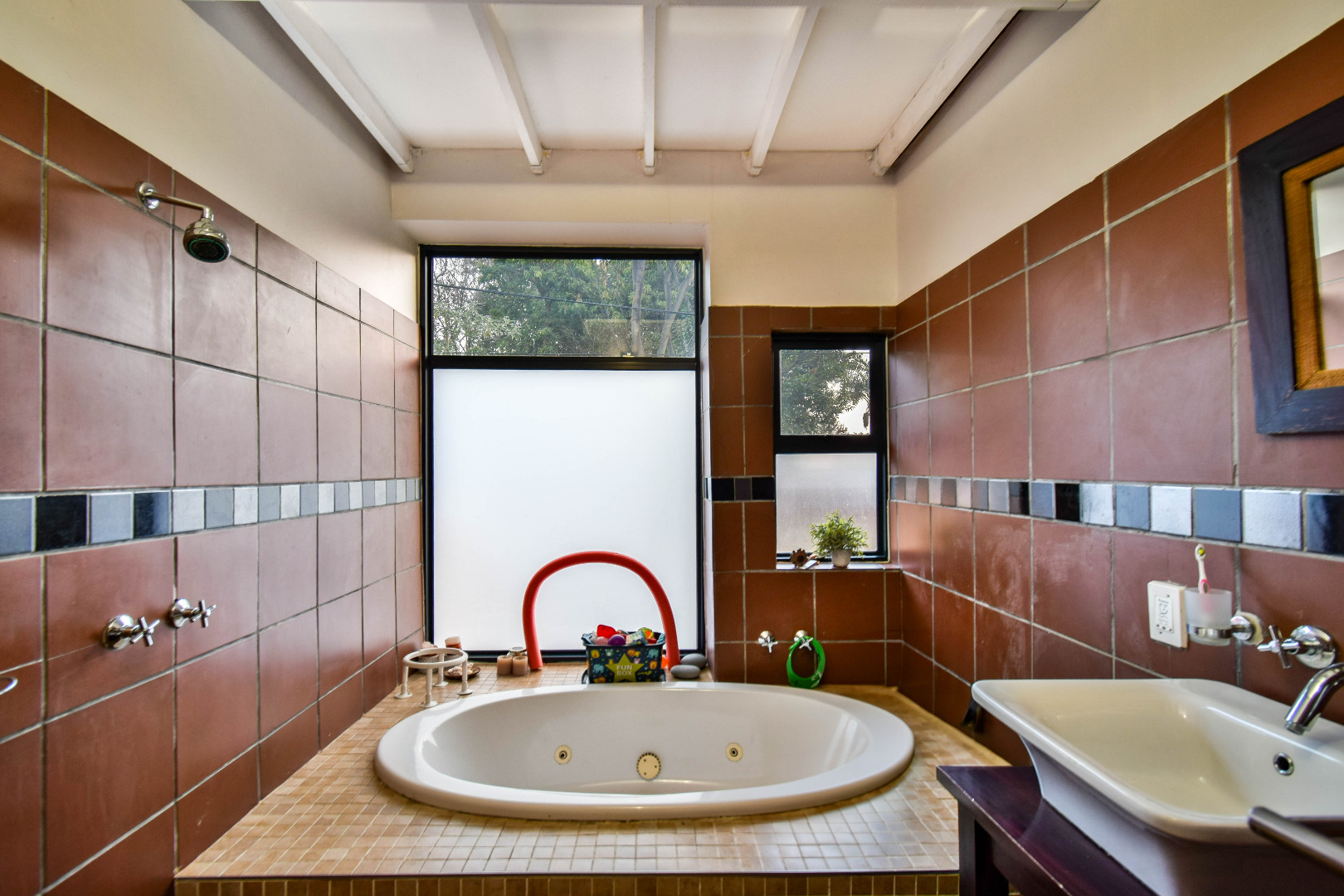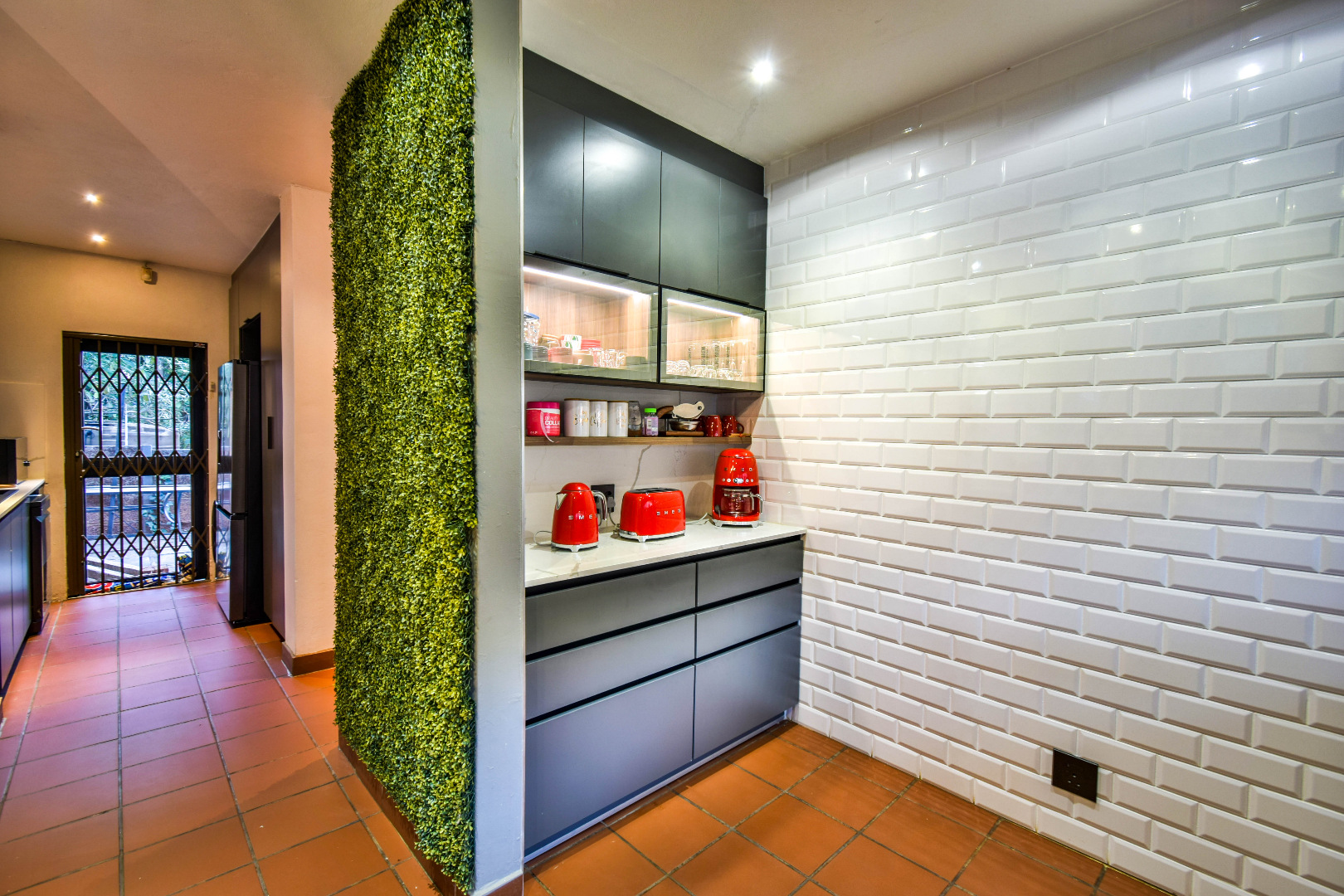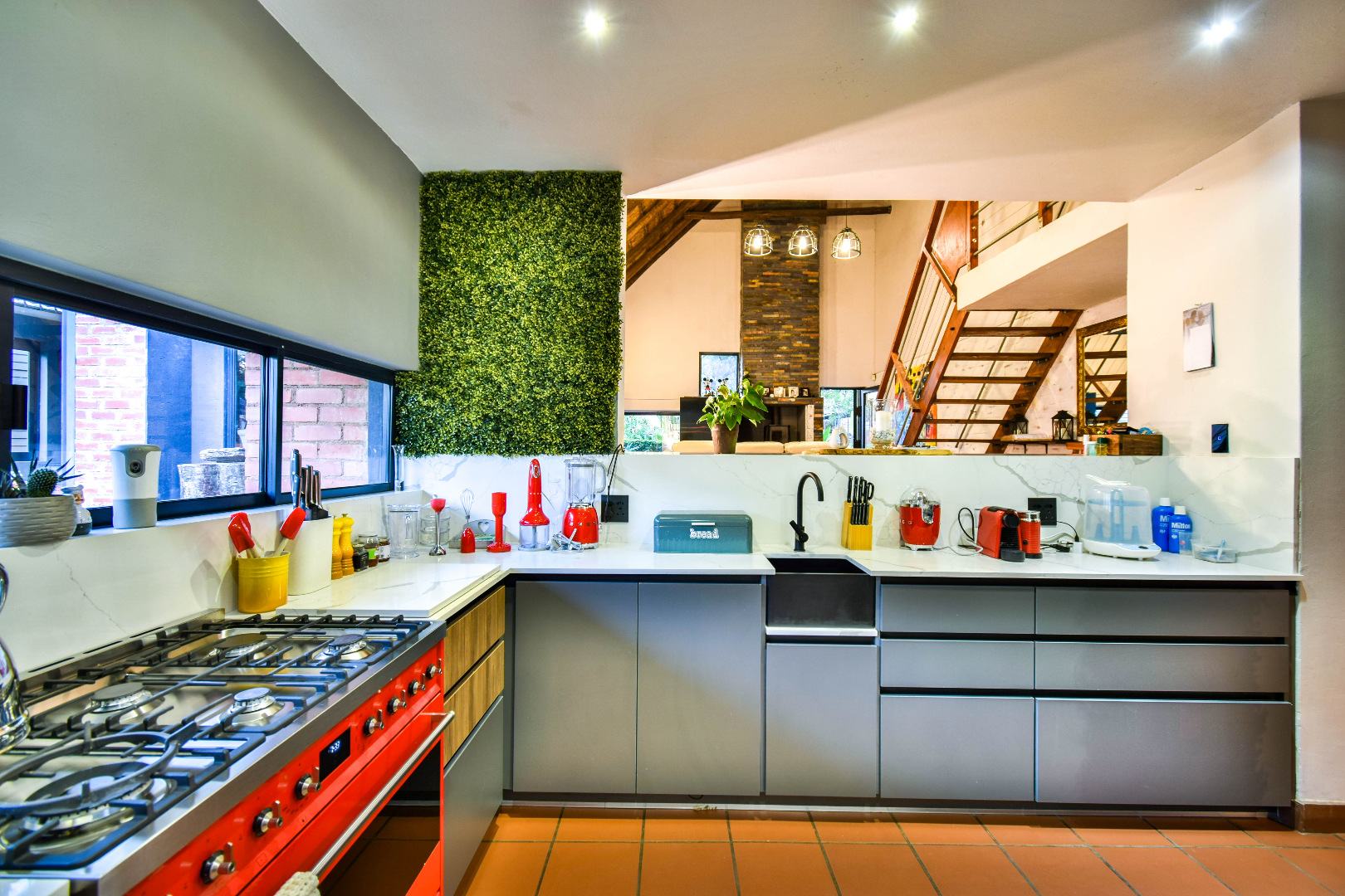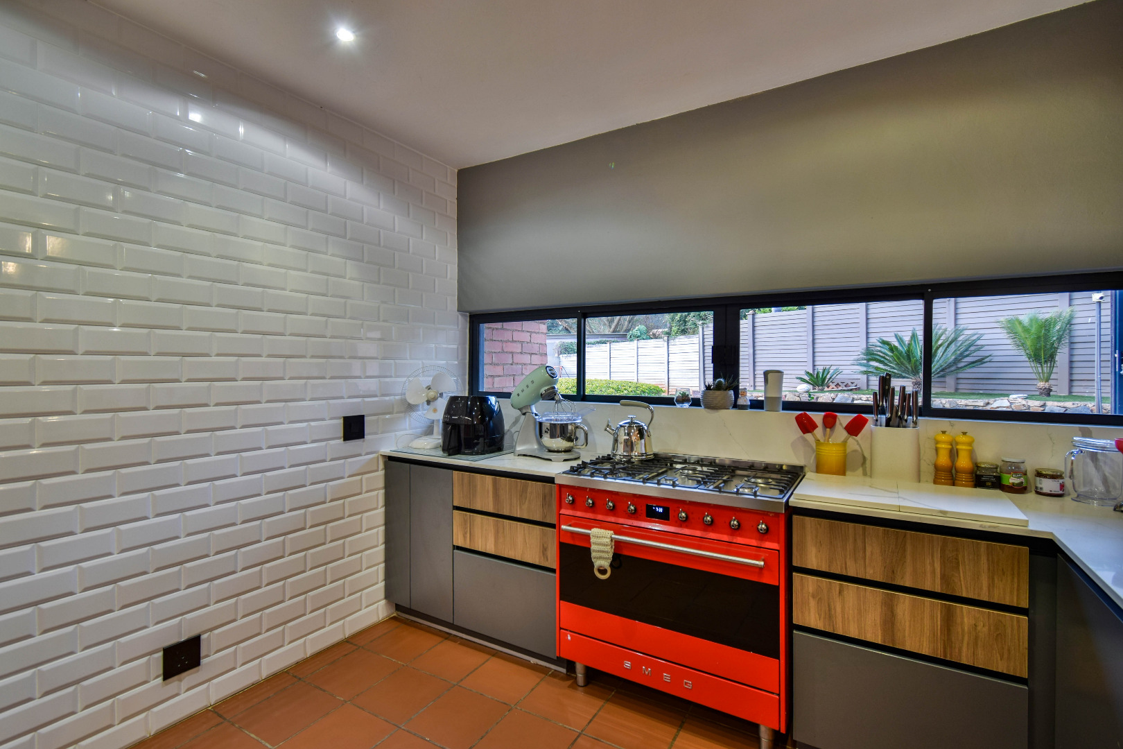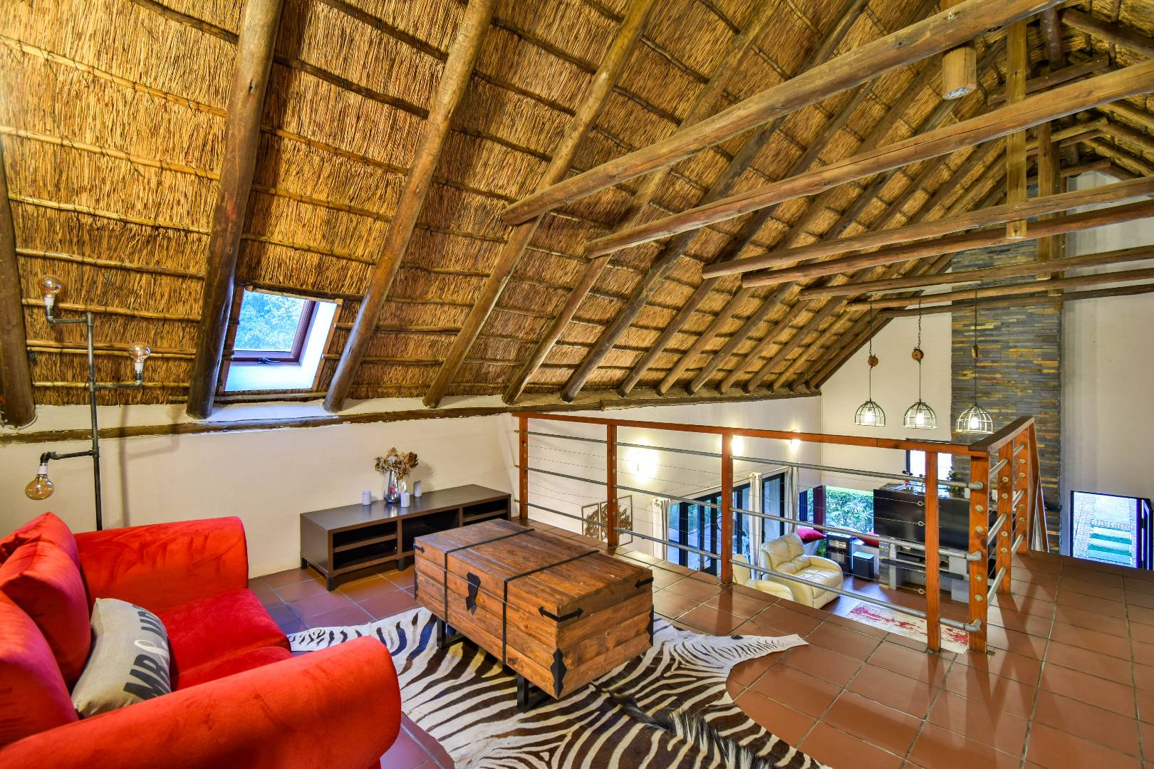 Outdoor features include a covered braai area with aluminum stacker doors and built-in doggy doors—perfect for relaxed entertaining. The well-maintained wrap-around garden offers plenty of space for pets and children to enjoy. Additional highlights include JoJo tank and a borehole that is ready as an optional connection. Sustainable living is made easy with 16 solar panels, an 8kW inverter and 15kWh battery system The property also boasts a tiled Havi-tiled roof, three garages, and thoughtful extras such as filtered water to taps and geysers, a geyser on WiFi timer, and modern finishes throughout. This is a refined, well-designed home ready for comfortable and stylish family living.