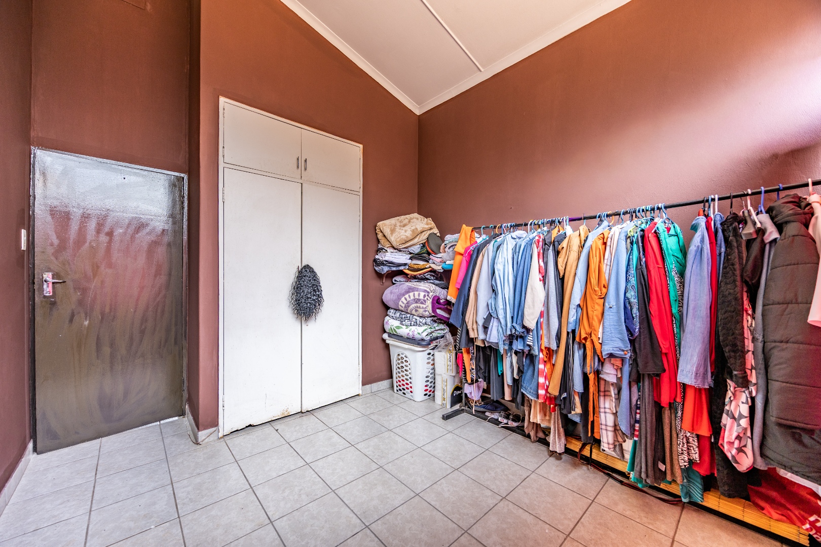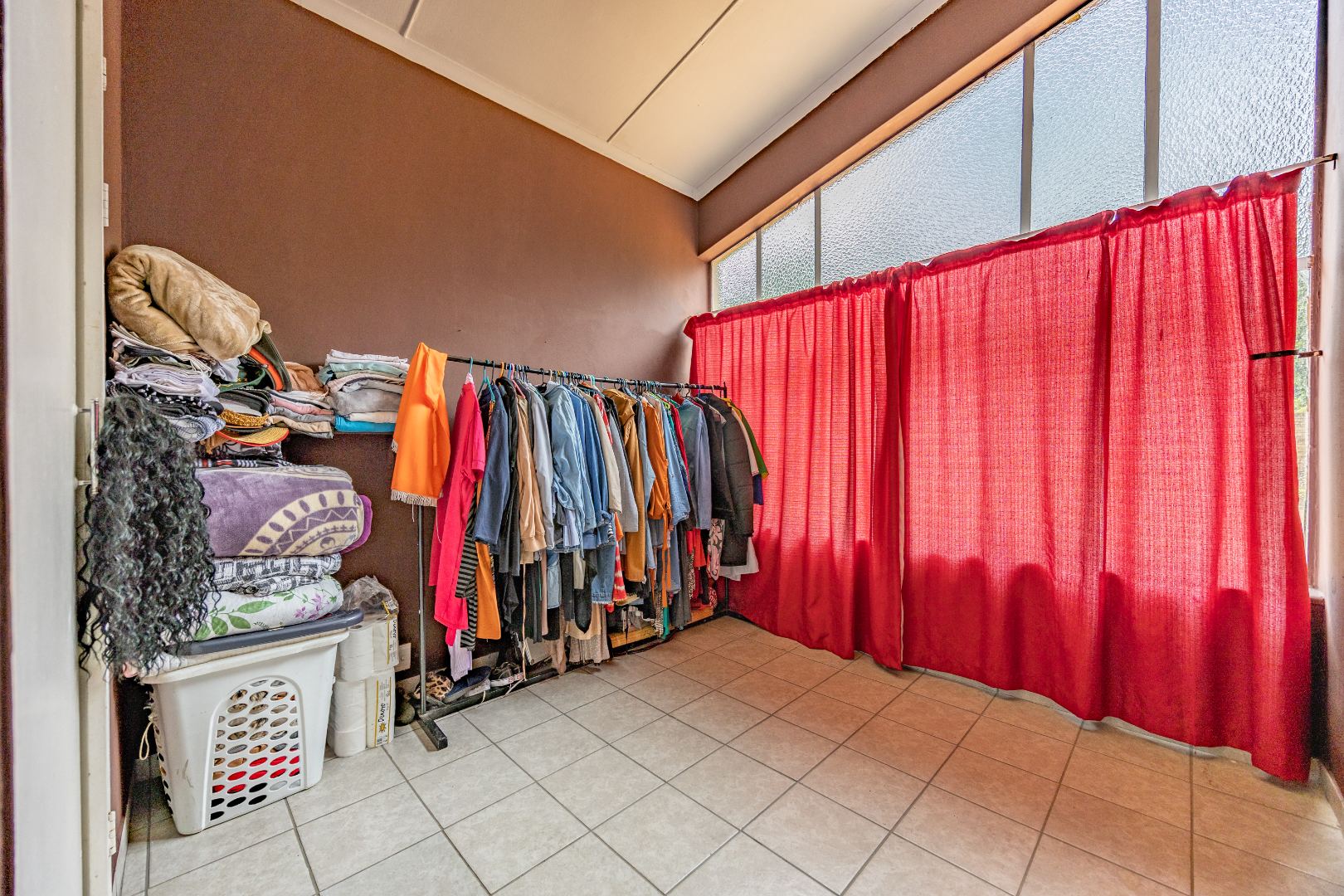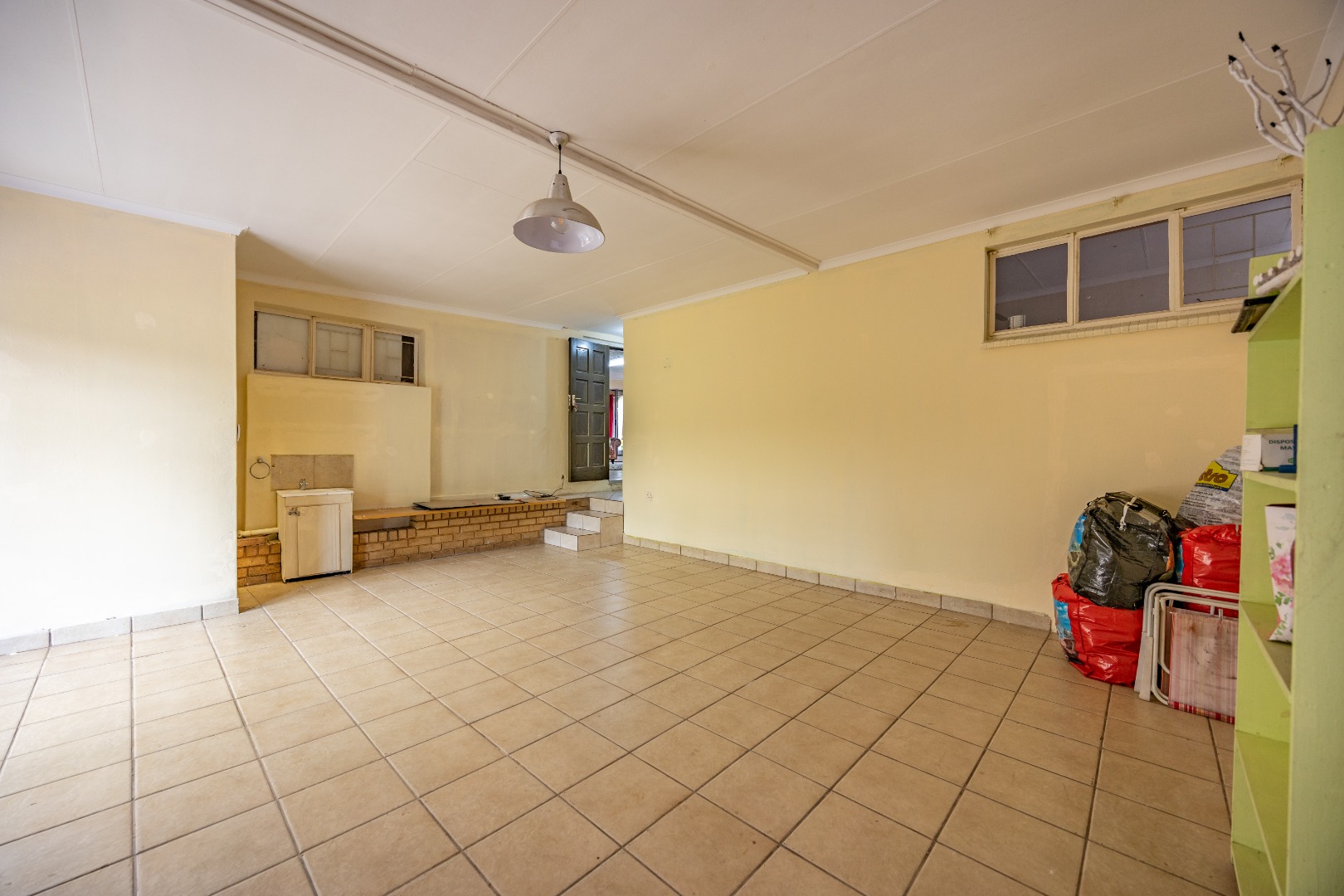 Step outside to enjoy a private patio, a refreshing pool, and a built-in braai, perfect for outdoor gatherings. The established garden and paved areas contribute to the property's appeal, while practical amenities such as staff quarters, a laundry room, and additional storage enhance daily living. Parking is well-catered for with two garages and ample paved parking. Security is paramount, featuring an access gate, security gates, burglar bars, and electric fencing, all within a pet-friendly environment. Fibre connectivity is also available.