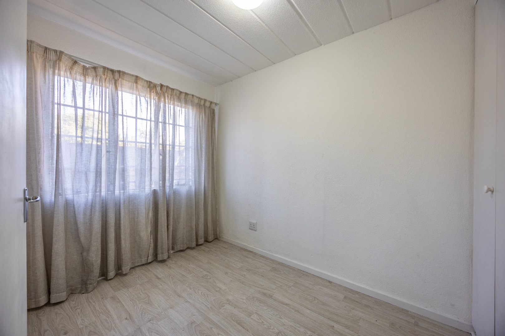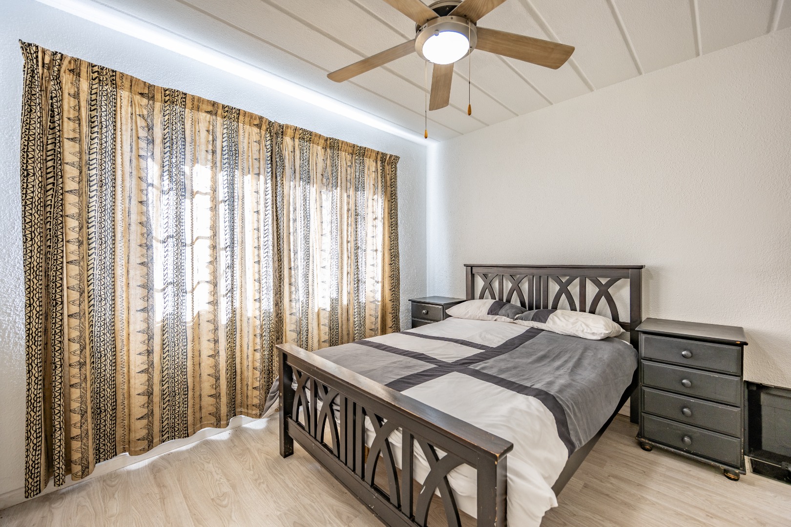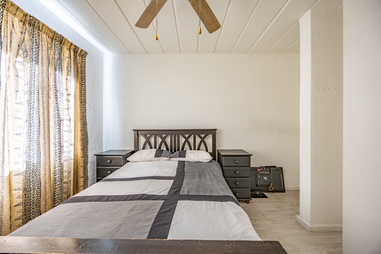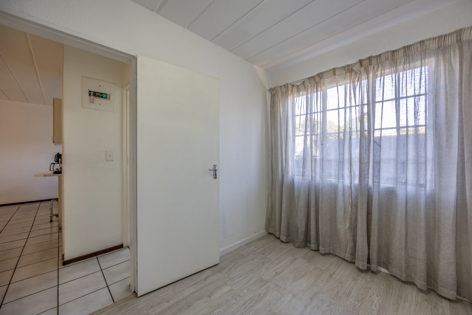 Both bedrooms are well-sized with built-in cupboards, and the full bathroom includes a bath, basin, and toilet – clean and functional.