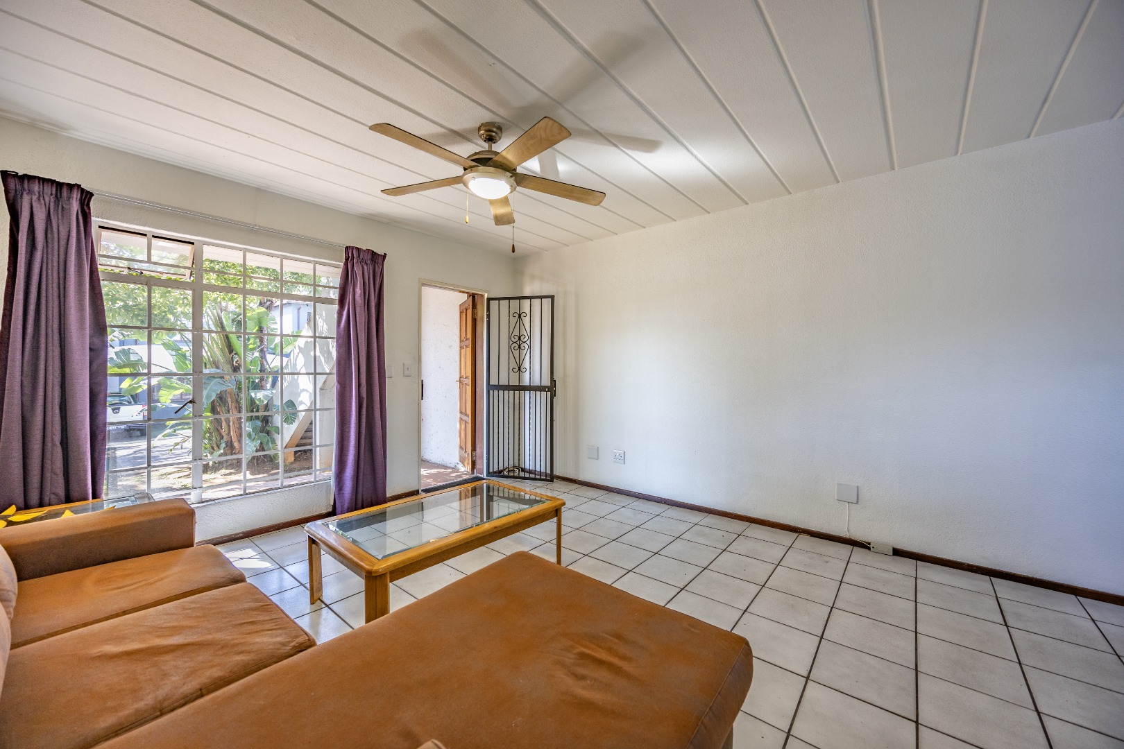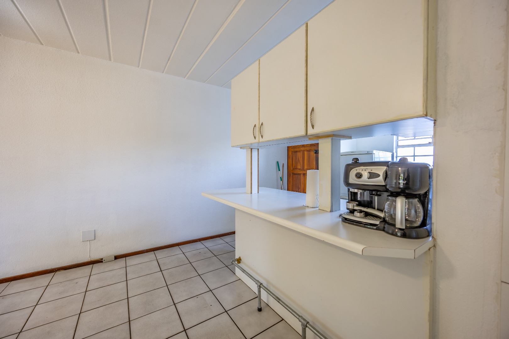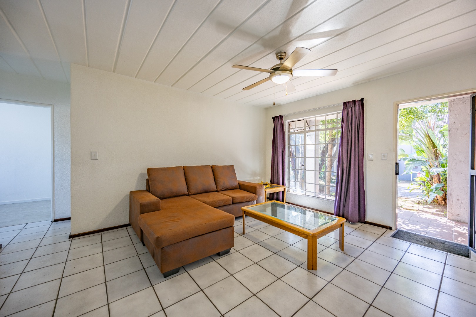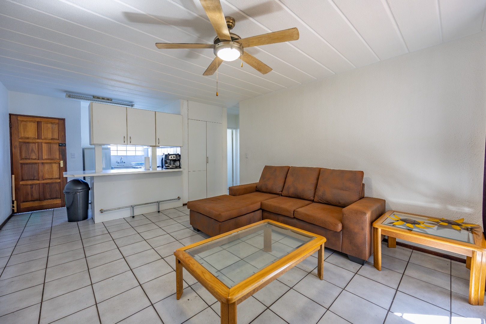Step into a neatly designed open-plan living space, featuring a spacious lounge area that leads to a small patio – ideal for morning coffee or entertaining friends. The modern kitchen is fitted with ample cupboard space and a gas stove, offering both practicality and savings on electricity.