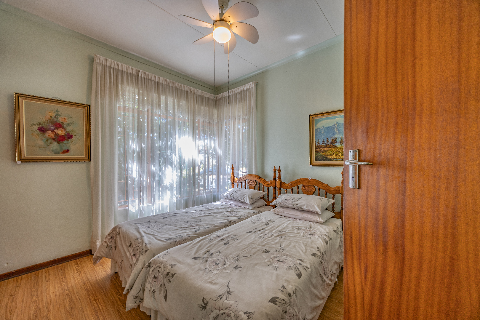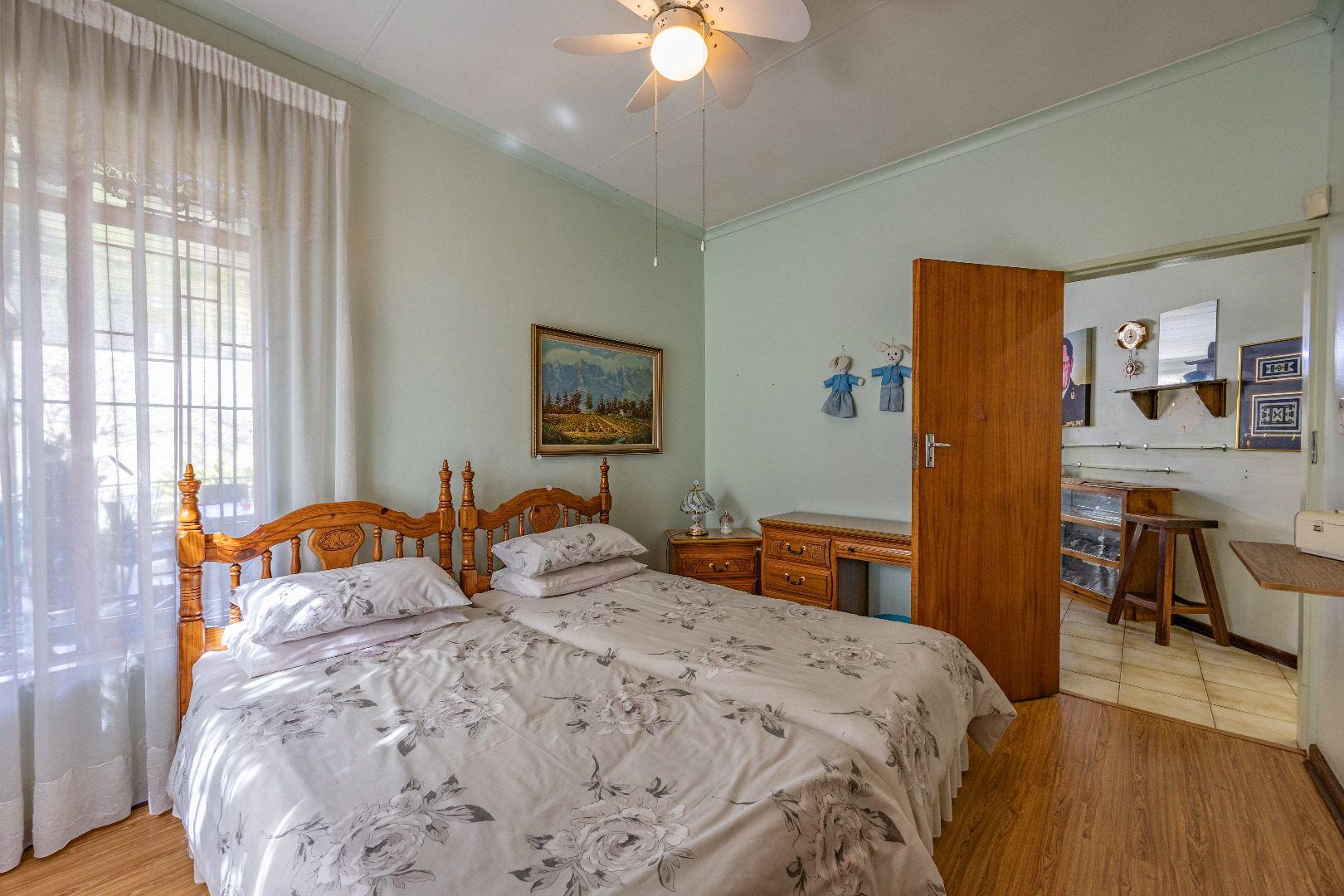 his well-sized home is located in the secure boomed-off area of Newlands, offering peace of mind and a convenient central location. The property features a double garage with motorized doors and direct access to the house, as well as a store area for added practicality.