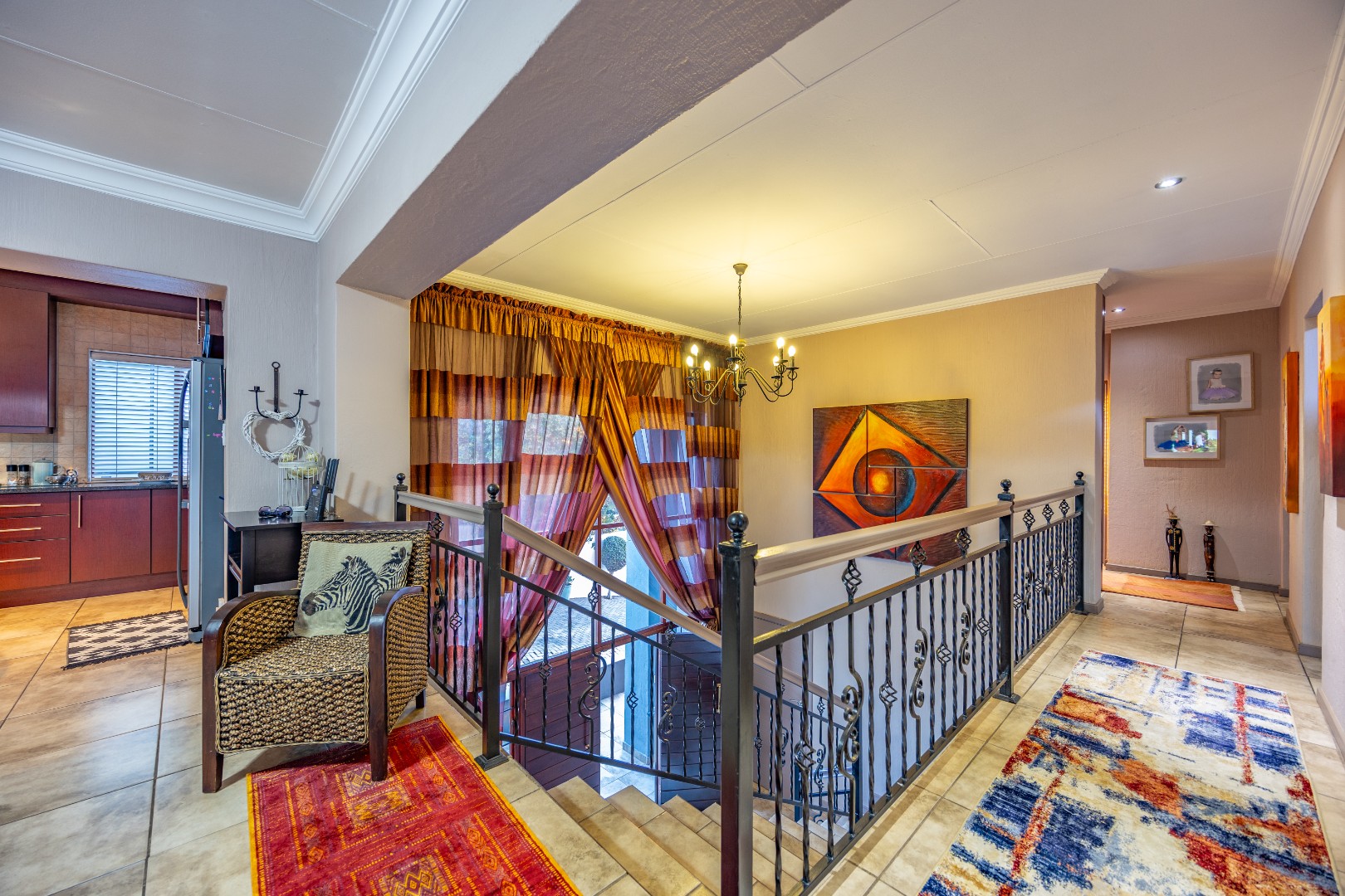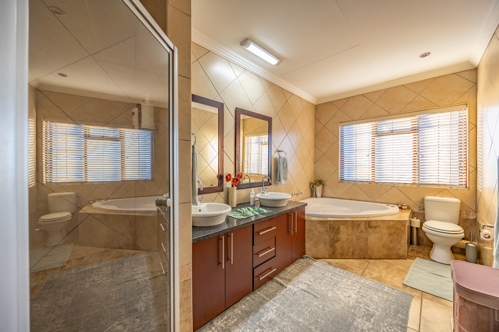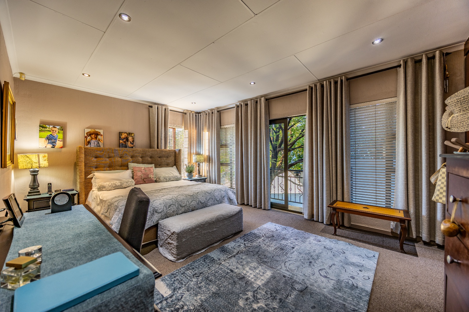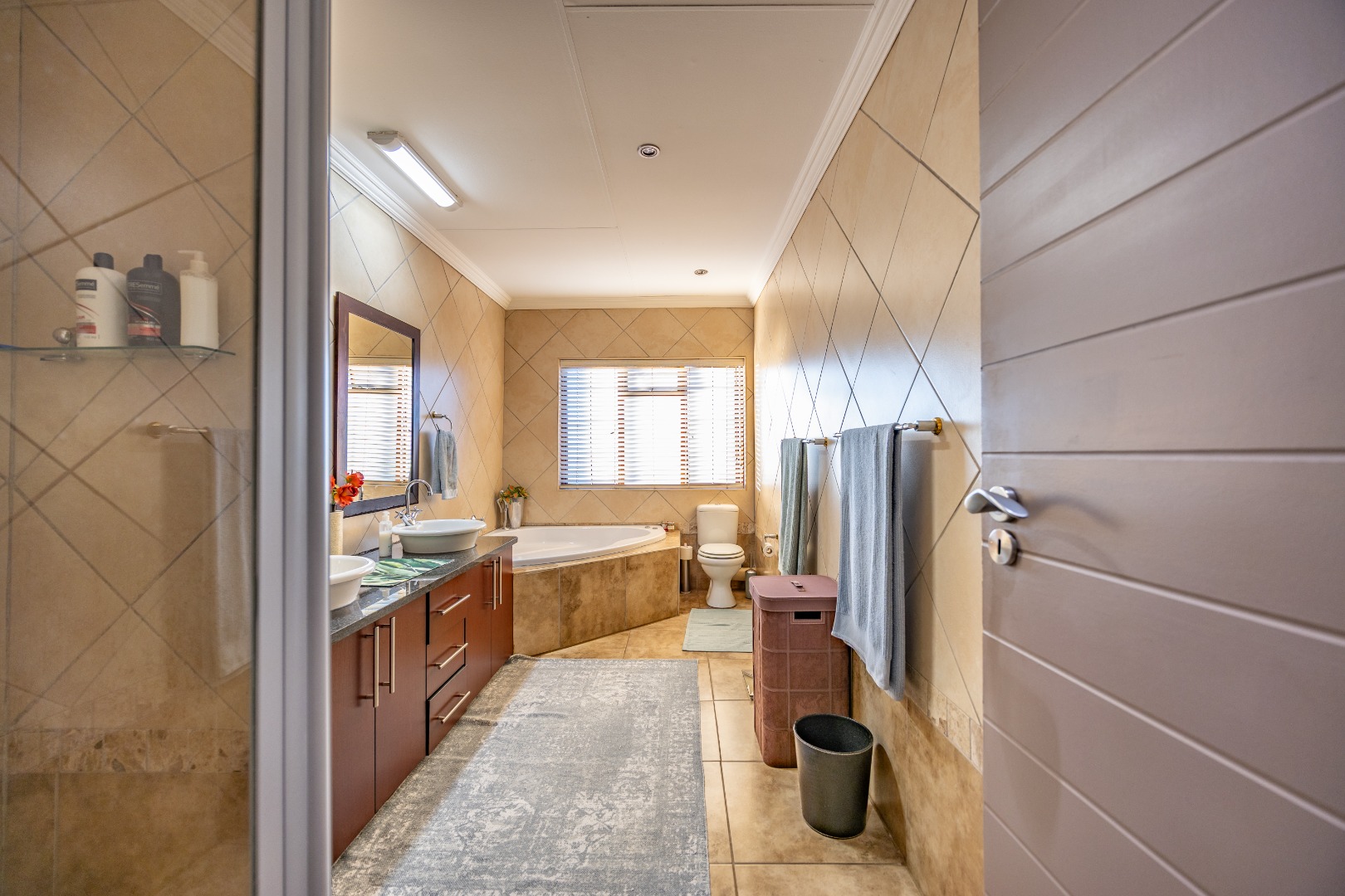 The private bedroom wing is designed with both comfort and luxury in mind. Bedroom 1 features built-in cupboards, offering a cozy yet functional space. Bedroom 2 is a true highlight of the home, boasting the most incredible view from its private balcony, a place to start the day with serenity and end it with reflection as the sun sets over Pretoria. Between the bedrooms, linen cupboards and a full bathroom provide thoughtful practicality. The main bedroom is an indulgent retreat, complete with a jet bath en-suite, ample built-in cupboards, and its own balcony overlooking the magnificent cityscape, offering a perfect sanctuary for rest and rejuvenation. The property also includes staff quarters with a private bathroom, a garden shed, and additional parking for two vehicles, providing both versatility and convenience. Aluminium windows frame the stunning vistas, while wall-mounted exterior lights enhance the home’s charm and elegance at night. This home is far more than a residence — it is a statement of lifestyle within Highlands Estate, combining luxurious living, family-friendly functionality, and panoramic Pretoria views to create a space where memories are made, celebrations are enjoyed, and everyday life is elevated to something truly extraordinary.