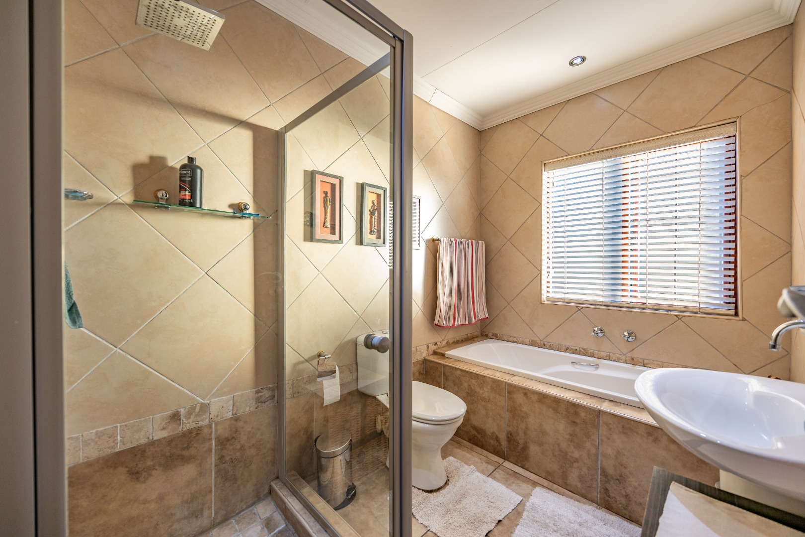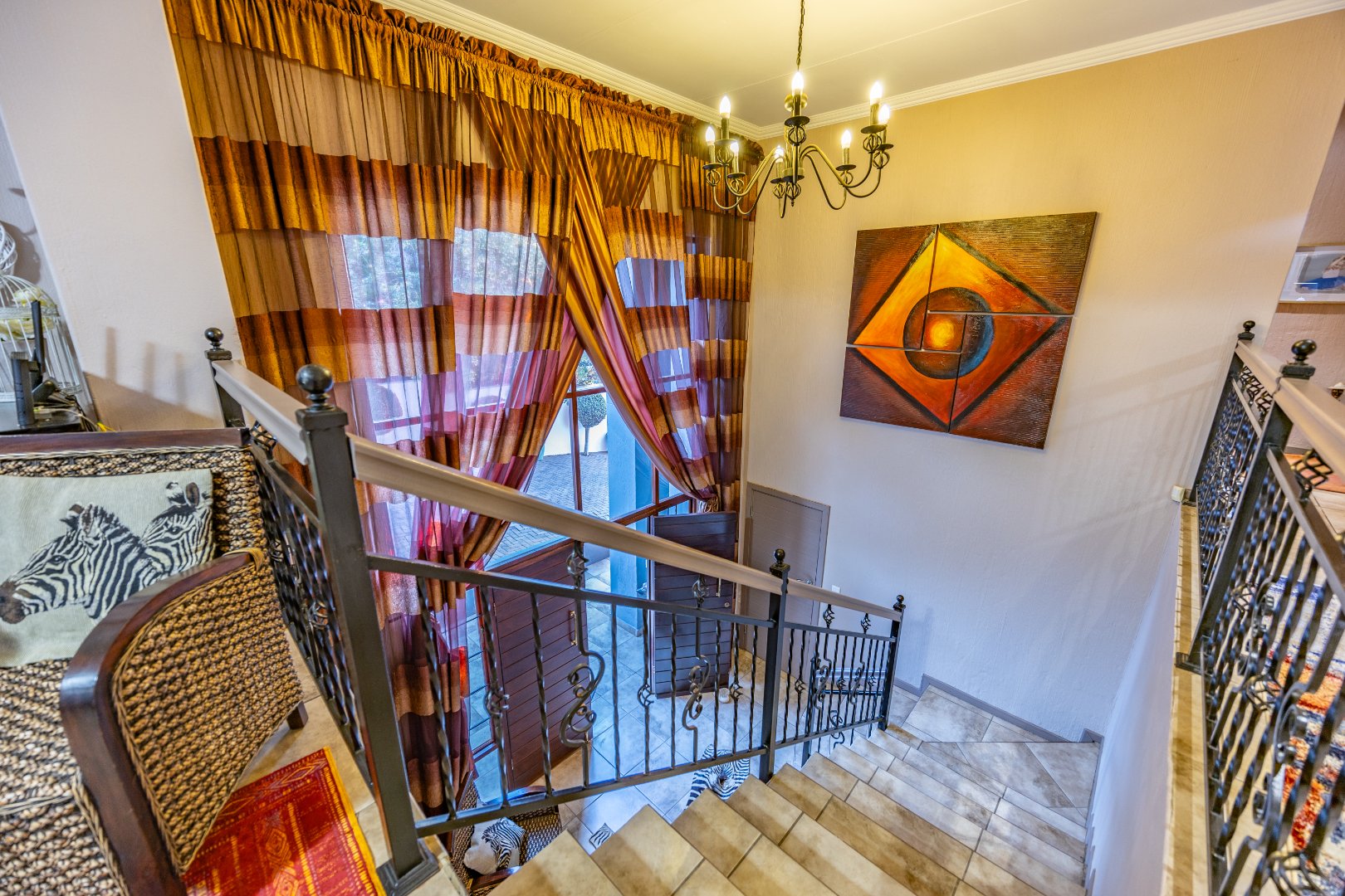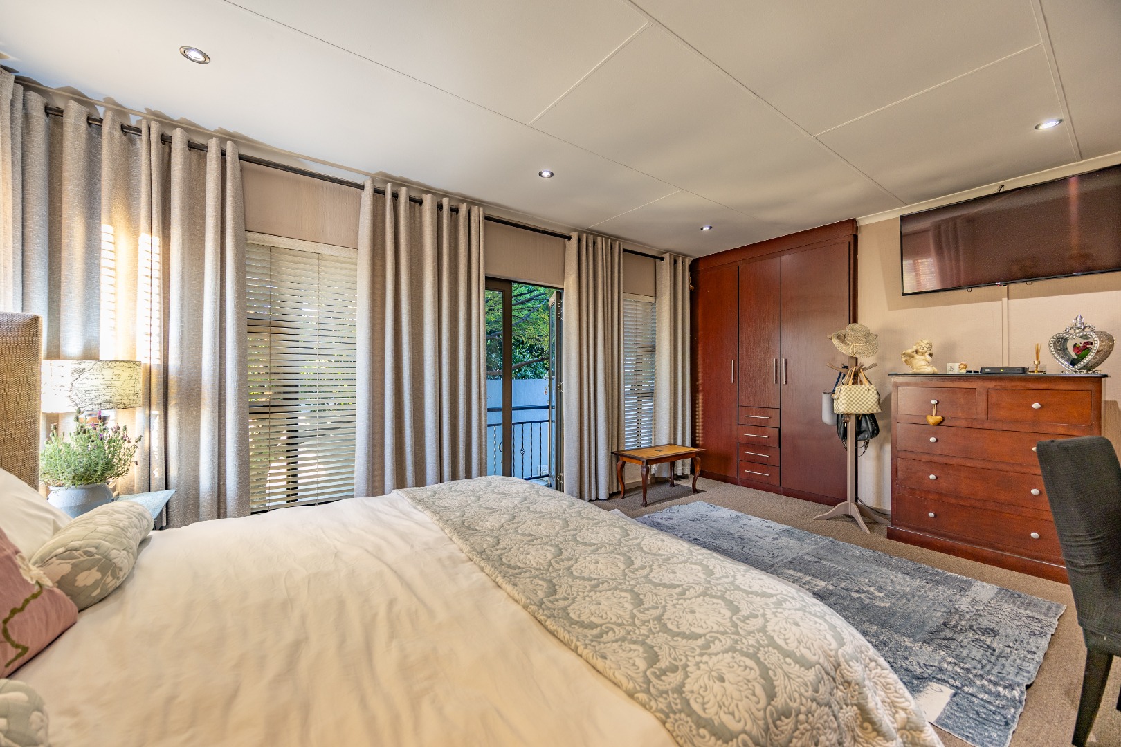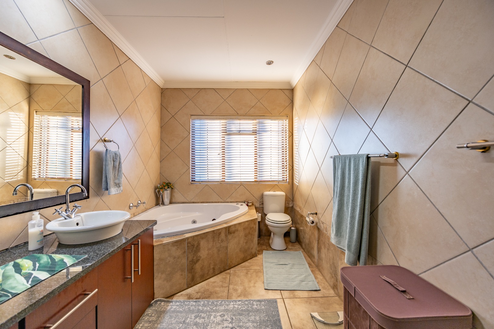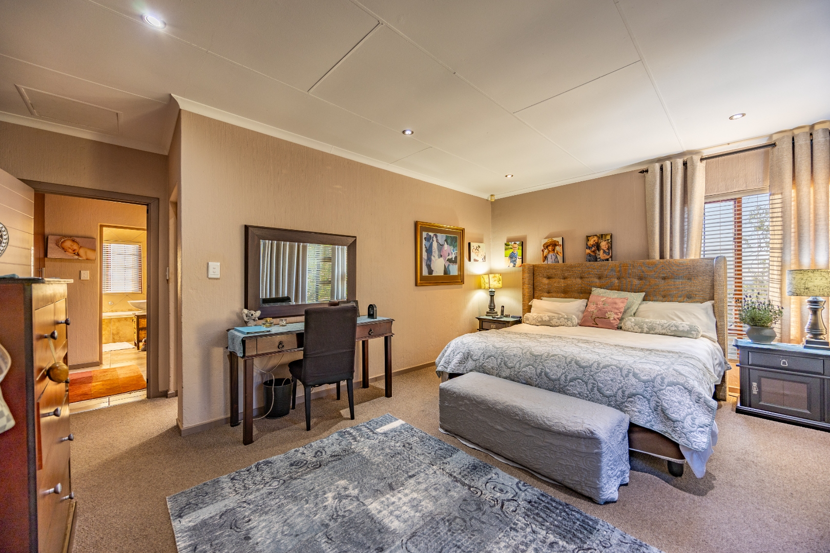 The private bedroom wing is designed with both comfort and luxury in mind. Bedroom 1 features built-in cupboards, offering a cozy yet functional space. Bedroom 2 is a true highlight of the home, boasting the most incredible view from its private balcony, a place to start the day with serenity and end it with reflection as the sun sets over Pretoria. Between the bedrooms, linen cupboards and a full bathroom provide thoughtful practicality. The main bedroom is an indulgent retreat, complete with a jet bath en-suite, ample built-in cupboards, and its own balcony overlooking the magnificent cityscape, offering a perfect sanctuary for rest and rejuvenation. The property also includes staff quarters with a private bathroom, a garden shed, and additional parking for two vehicles, providing both versatility and convenience. Aluminium windows frame the stunning vistas, while wall-mounted exterior lights enhance the home’s charm and elegance at night. This home is far more than a residence — it is a statement of lifestyle within Highlands Estate, combining luxurious living, family-friendly functionality, and panoramic Pretoria views to create a space where memories are made, celebrations are enjoyed, and everyday life is elevated to something truly extraordinary.