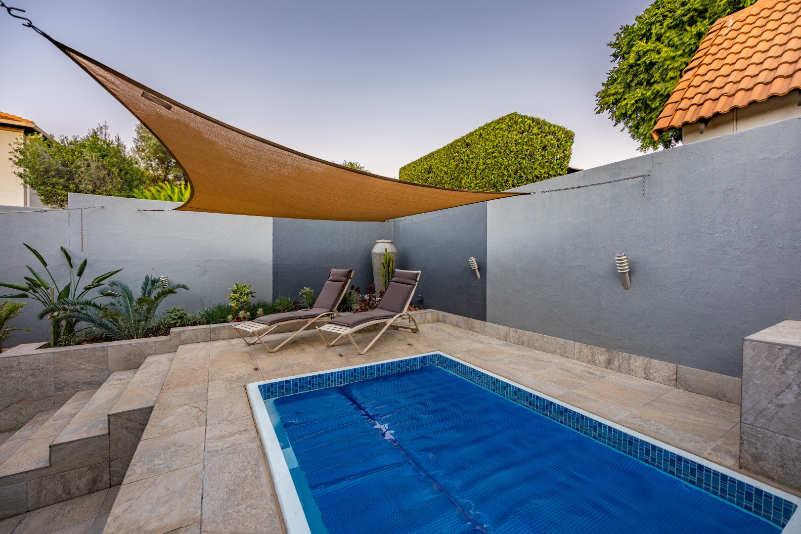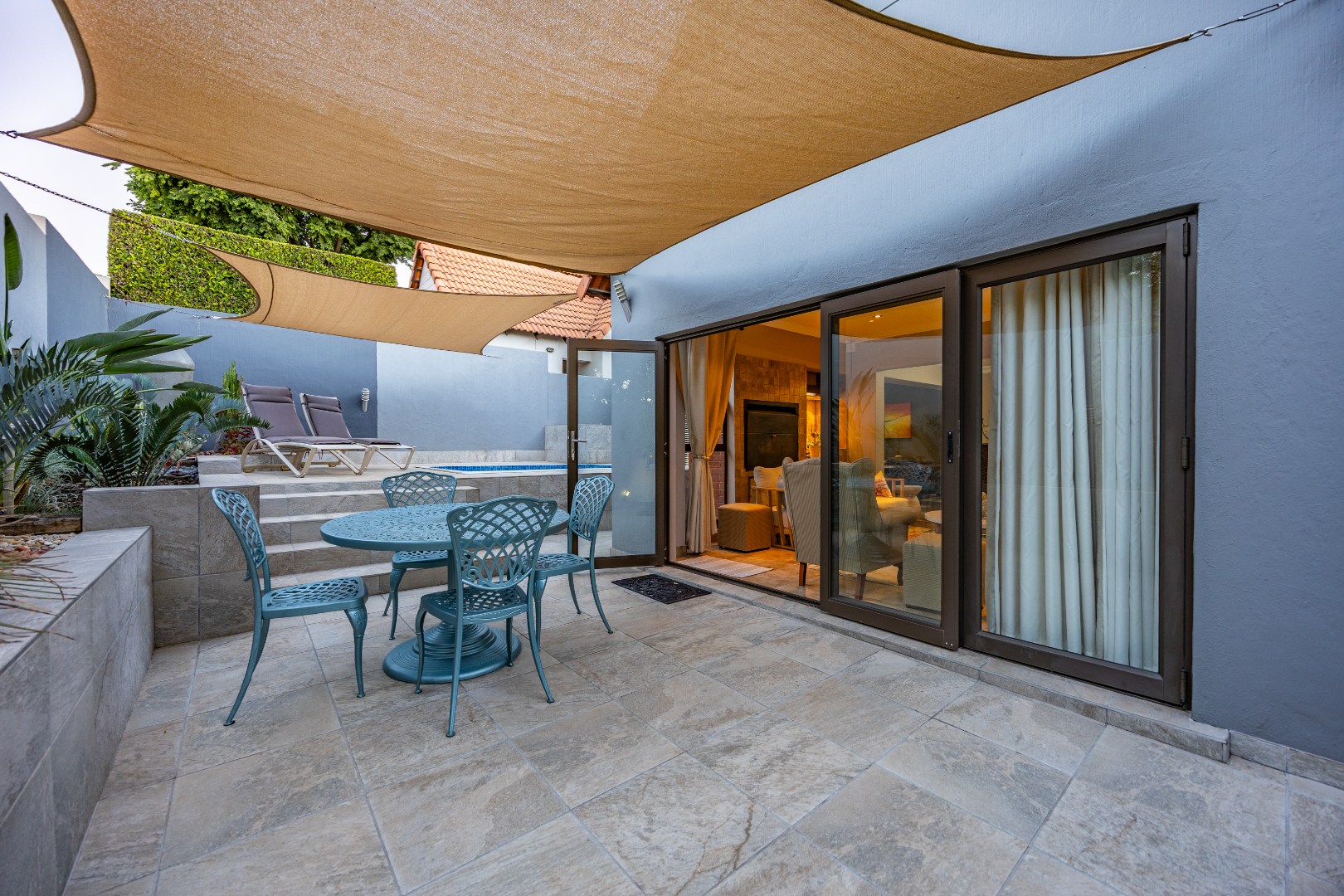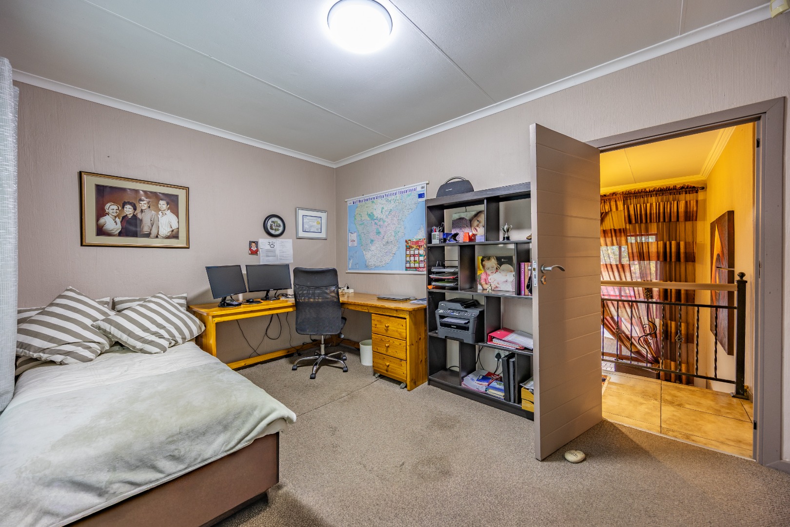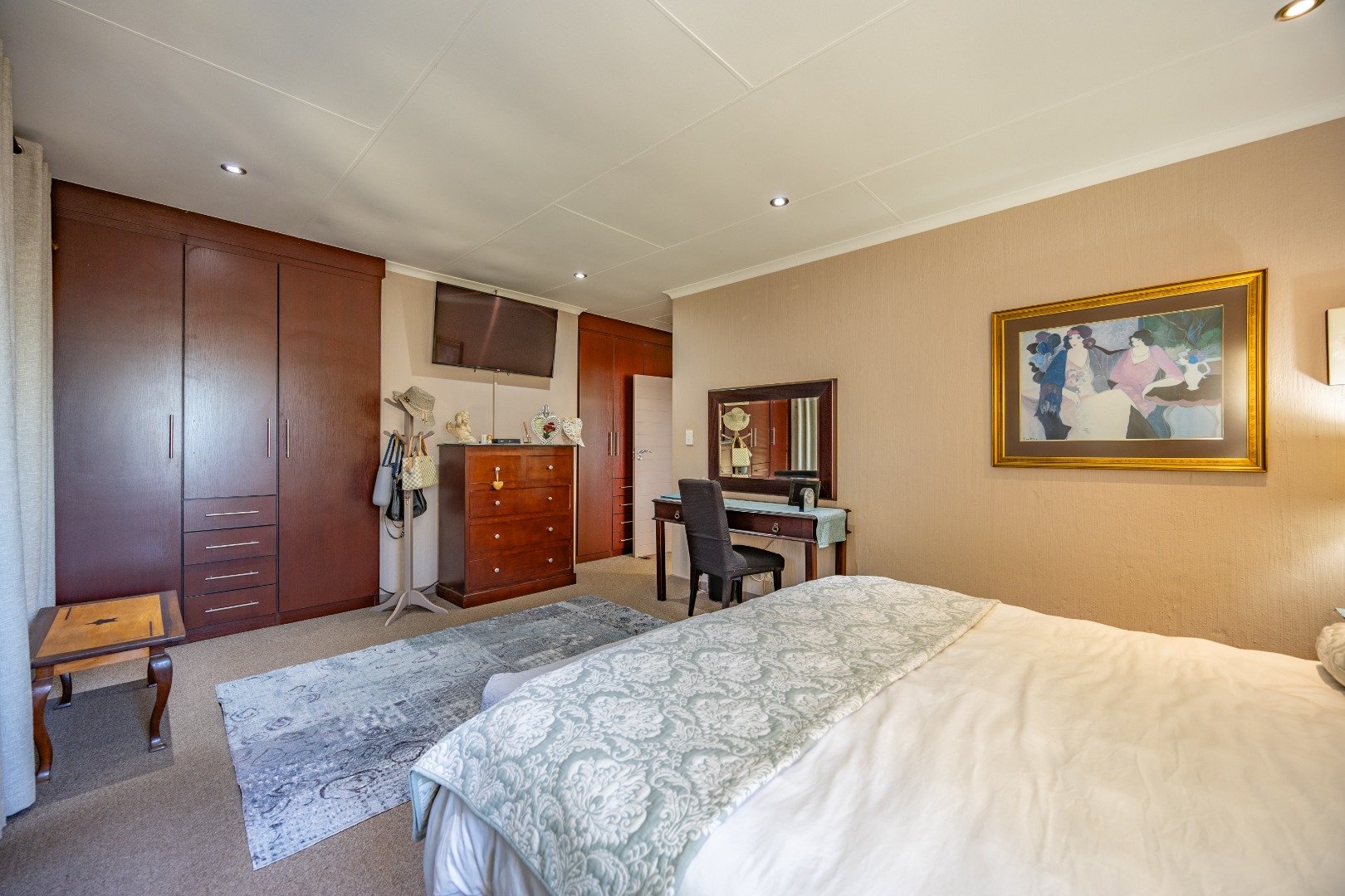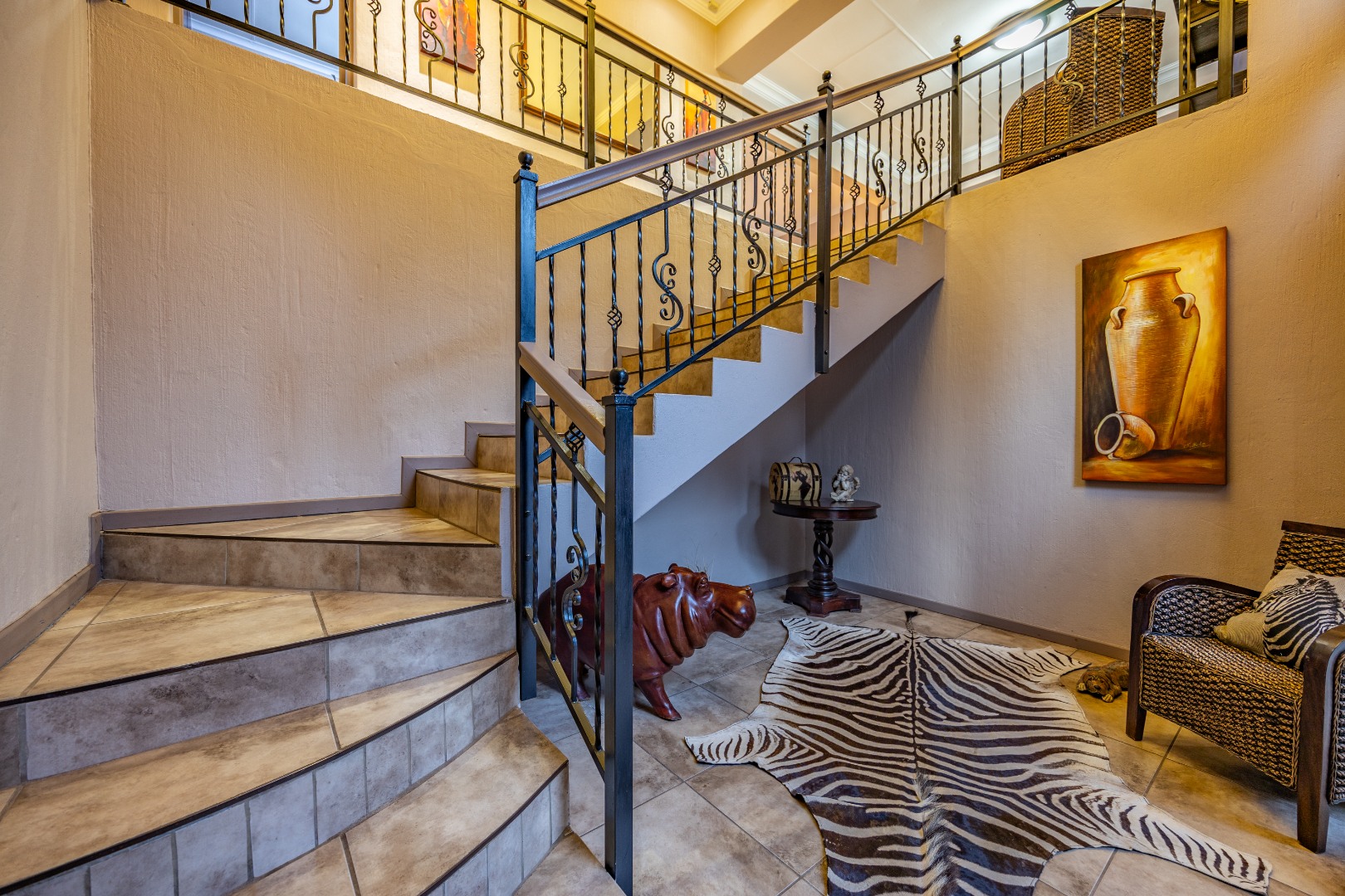 The private bedroom wing is designed with both comfort and luxury in mind. Bedroom 1 features built-in cupboards, offering a cozy yet functional space. Bedroom 2 is a true highlight of the home, boasting the most incredible view from its private balcony, a place to start the day with serenity and end it with reflection as the sun sets over Pretoria. Between the bedrooms, linen cupboards and a full bathroom provide thoughtful practicality. The main bedroom is an indulgent retreat, complete with a jet bath en-suite, ample built-in cupboards, and its own balcony overlooking the magnificent cityscape, offering a perfect sanctuary for rest and rejuvenation. The property also includes staff quarters with a private bathroom, a garden shed, and additional parking for two vehicles, providing both versatility and convenience. Aluminium windows frame the stunning vistas, while wall-mounted exterior lights enhance the home’s charm and elegance at night. This home is far more than a residence — it is a statement of lifestyle within Highlands Estate, combining luxurious living, family-friendly functionality, and panoramic Pretoria views to create a space where memories are made, celebrations are enjoyed, and everyday life is elevated to something truly extraordinary.