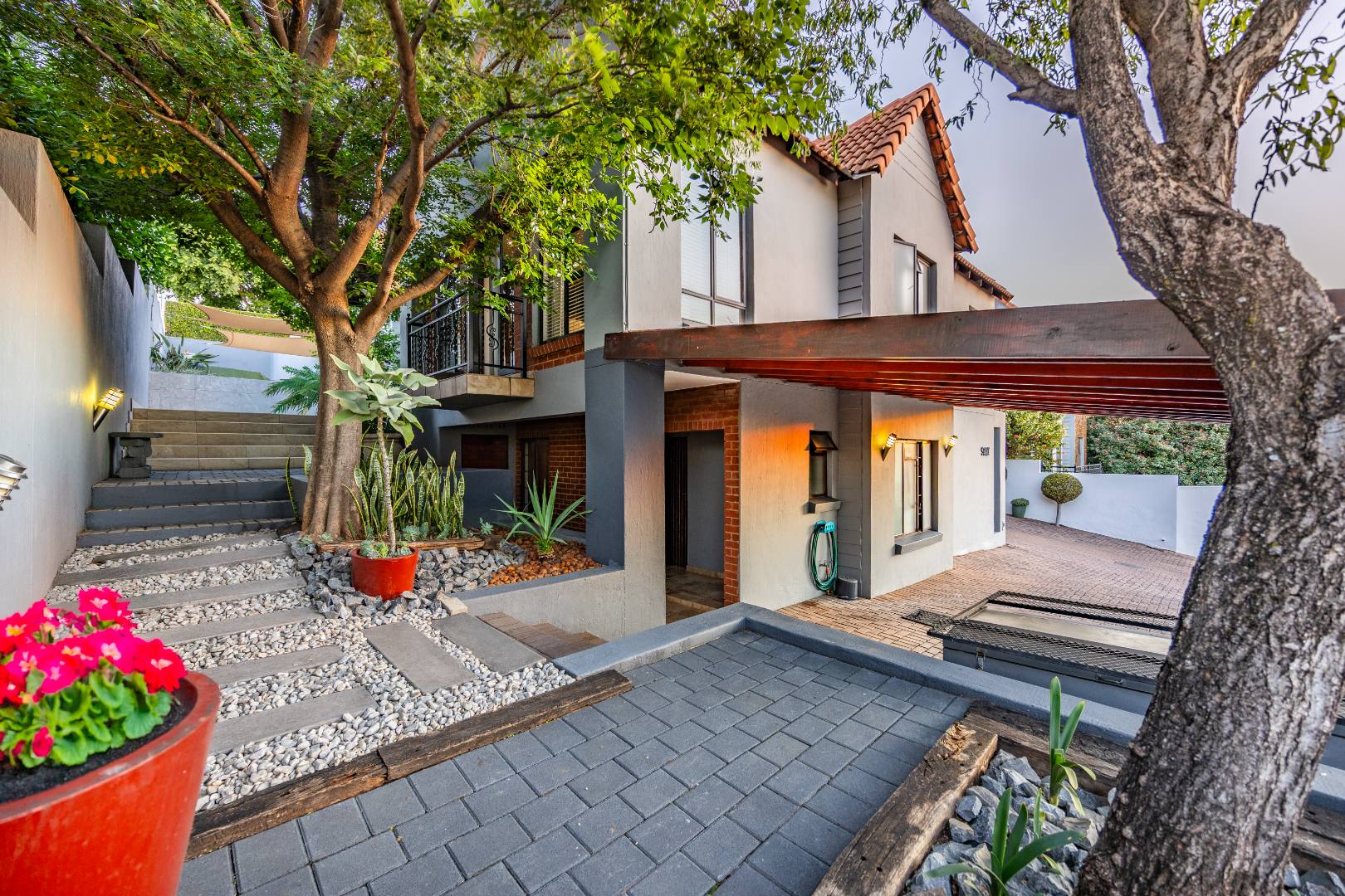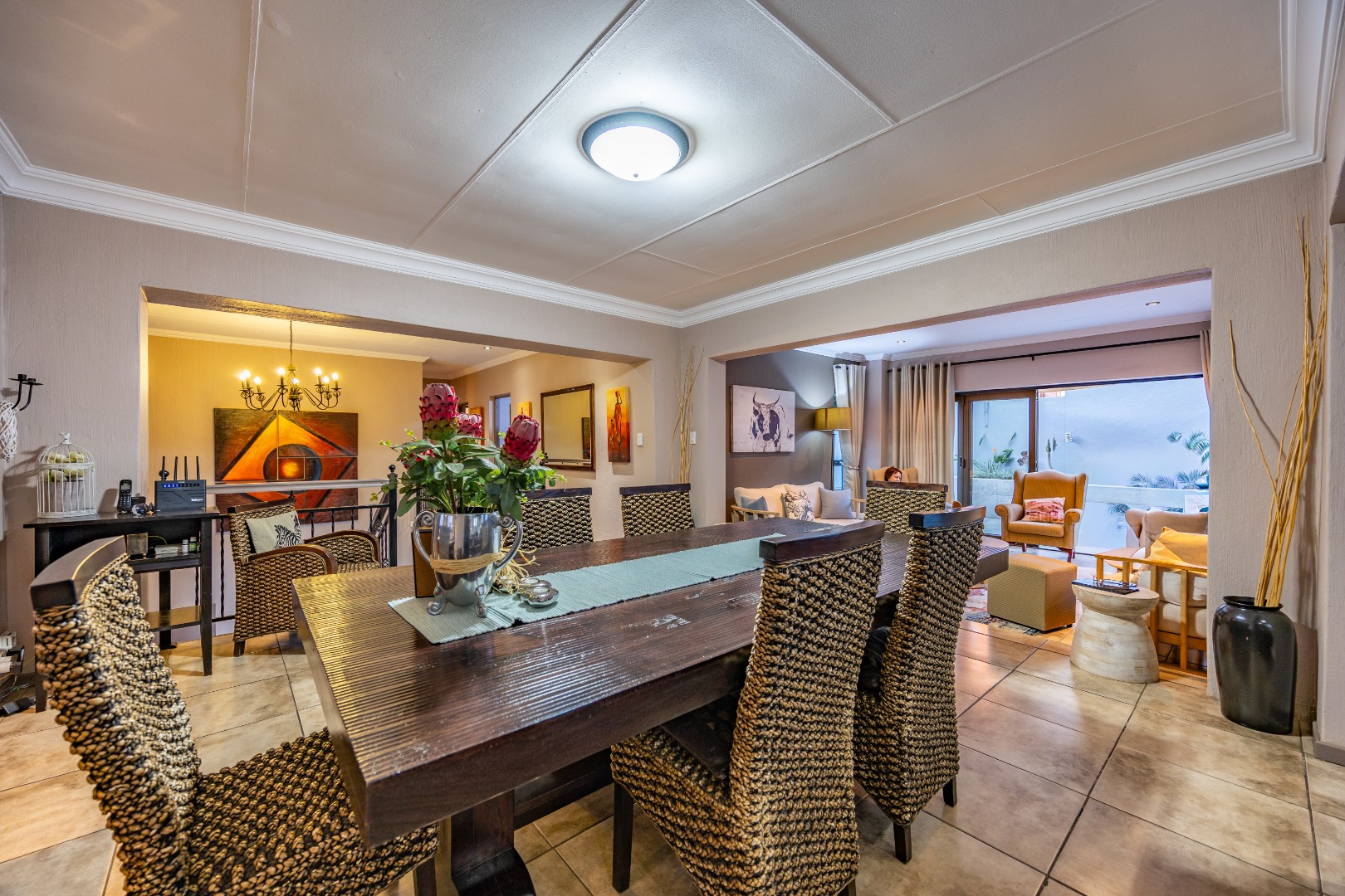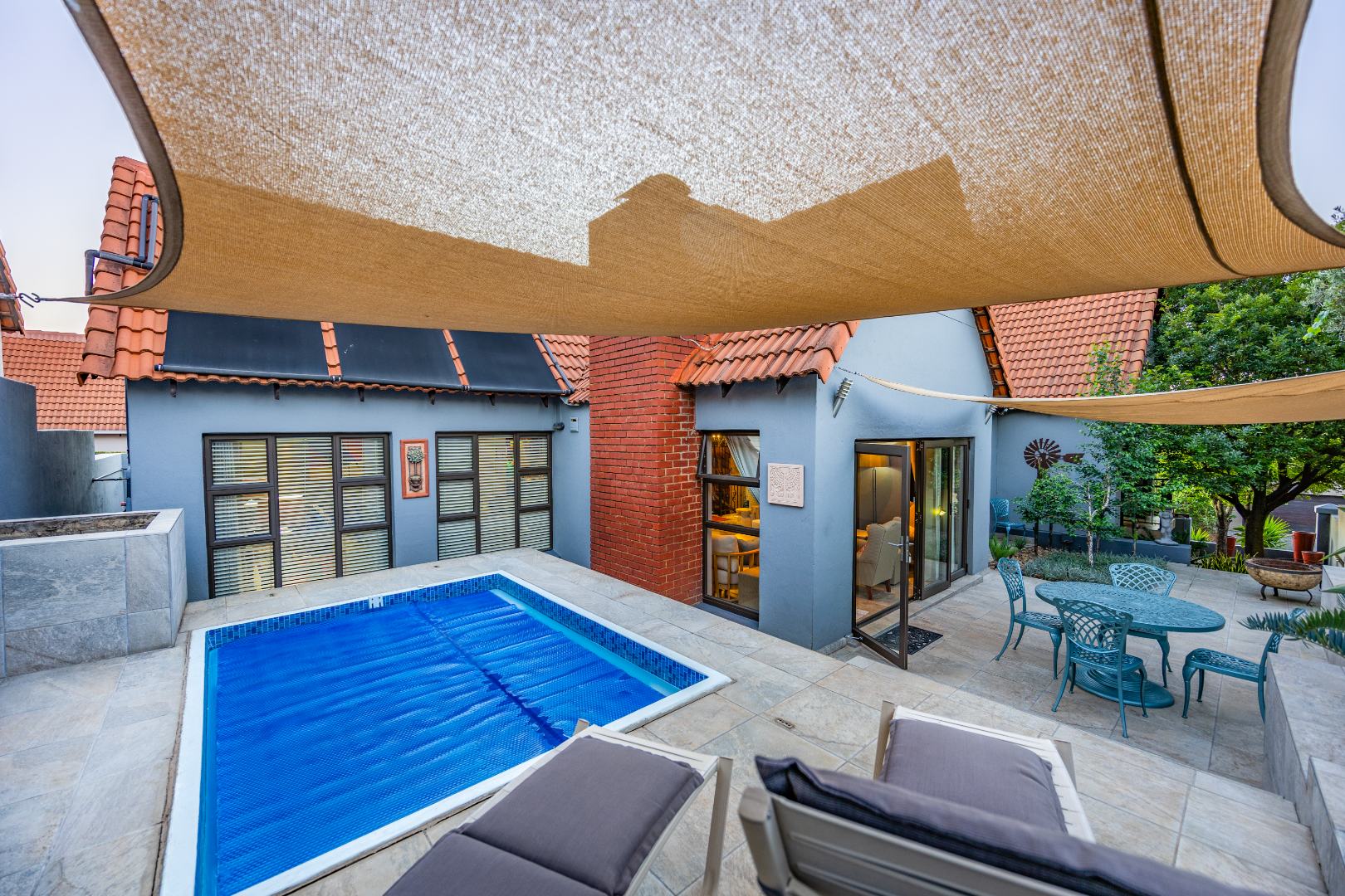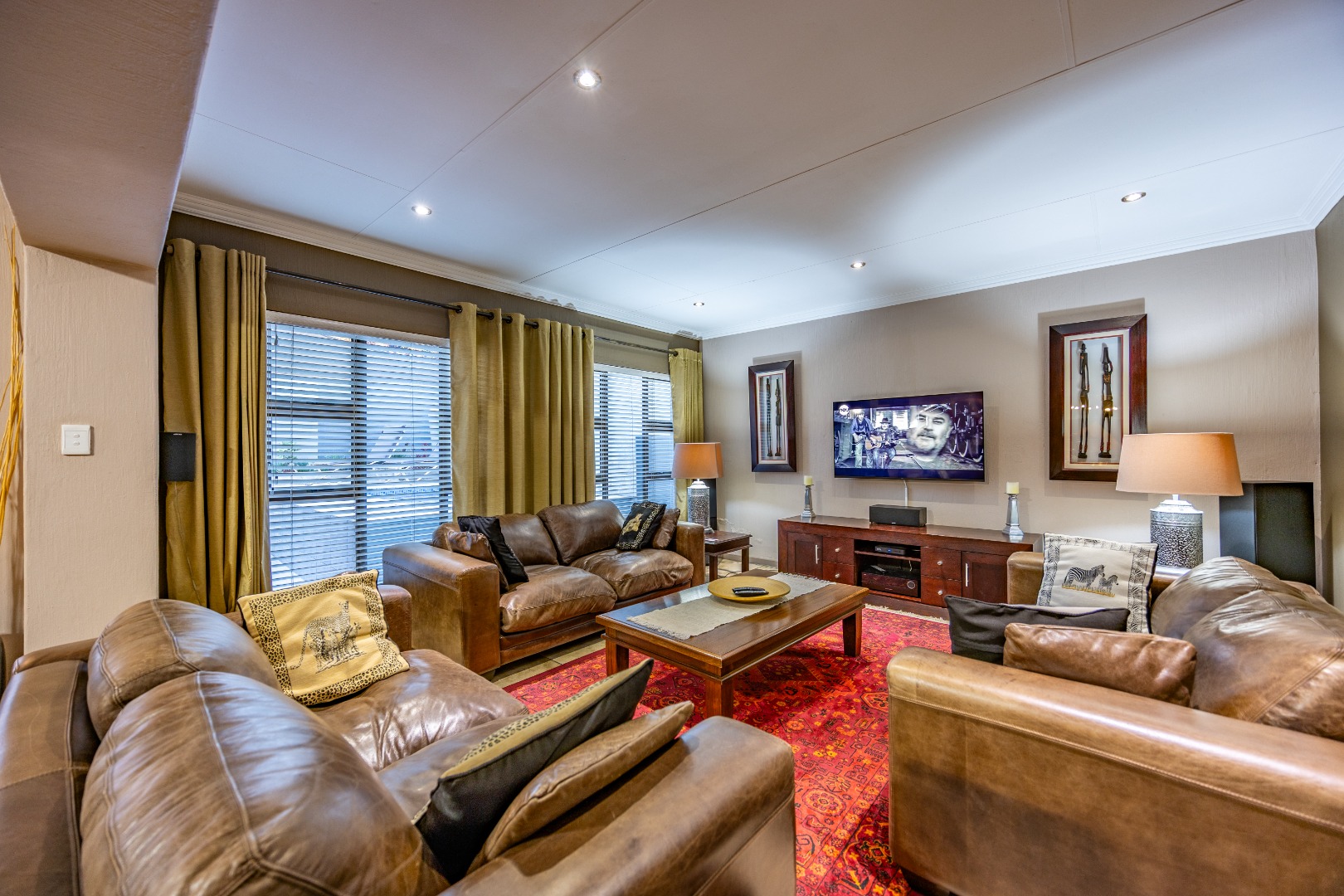 Nestled in the highly sought-after Highlands Estate, this elevated modern family home offers a rare combination of style, comfort, and thoughtful design. From the moment you arrive, the double garage on the ground floor sets the tone, providing convenience while adding to the impressive street presence of the property. Step through the spacious entrance hall and immediately feel a sense of grandeur as the home opens up, guiding you upstairs to the main living level. Here, the flow is effortless, with the kitchen, lounge, and dining area interconnected in an open-plan layout that invites natural light to fill every corner. The kitchen, adorned with granite countertops, a gas stove, and a water connection for your fridge, is designed for both functionality and elegance. Adjacent, the scullery ensures practicality without compromising on aesthetics. Beyond the kitchen, the built-in braai area with folding doors opens to the sparkling swimming pool and sun-soaked terrace, creating a seamless connection between indoors and outdoors. From this vantage point, the home offers breathtaking panoramic views of most of Pretoria, where city lights and natural landscapes blend beautifully, making every gathering, every family moment, and every quiet evening an extraordinary experience.