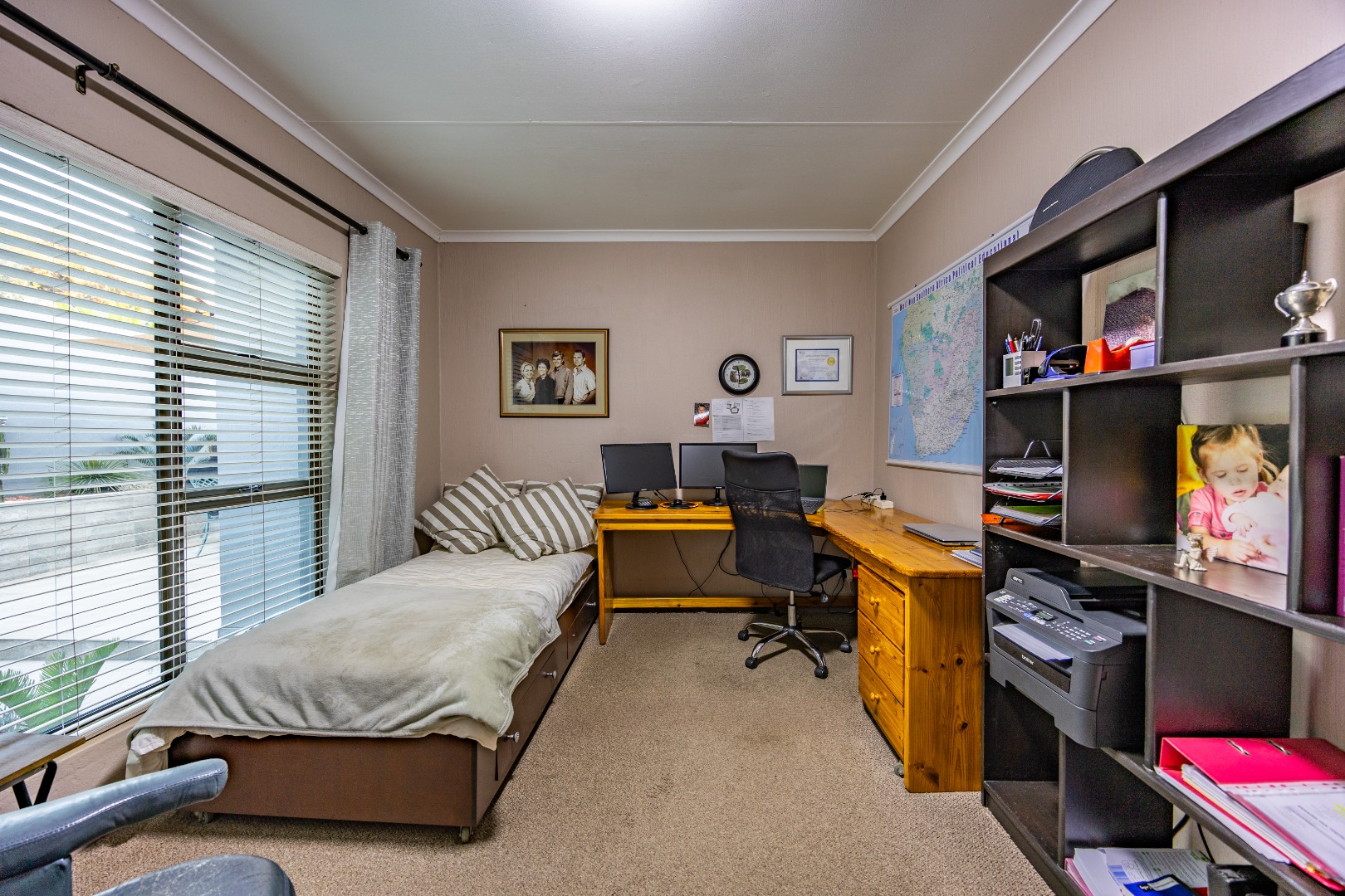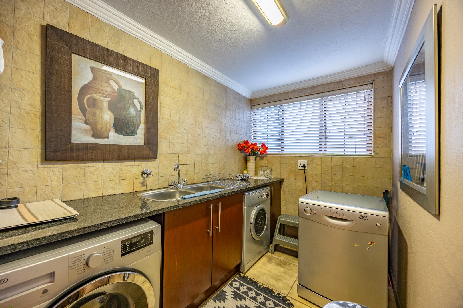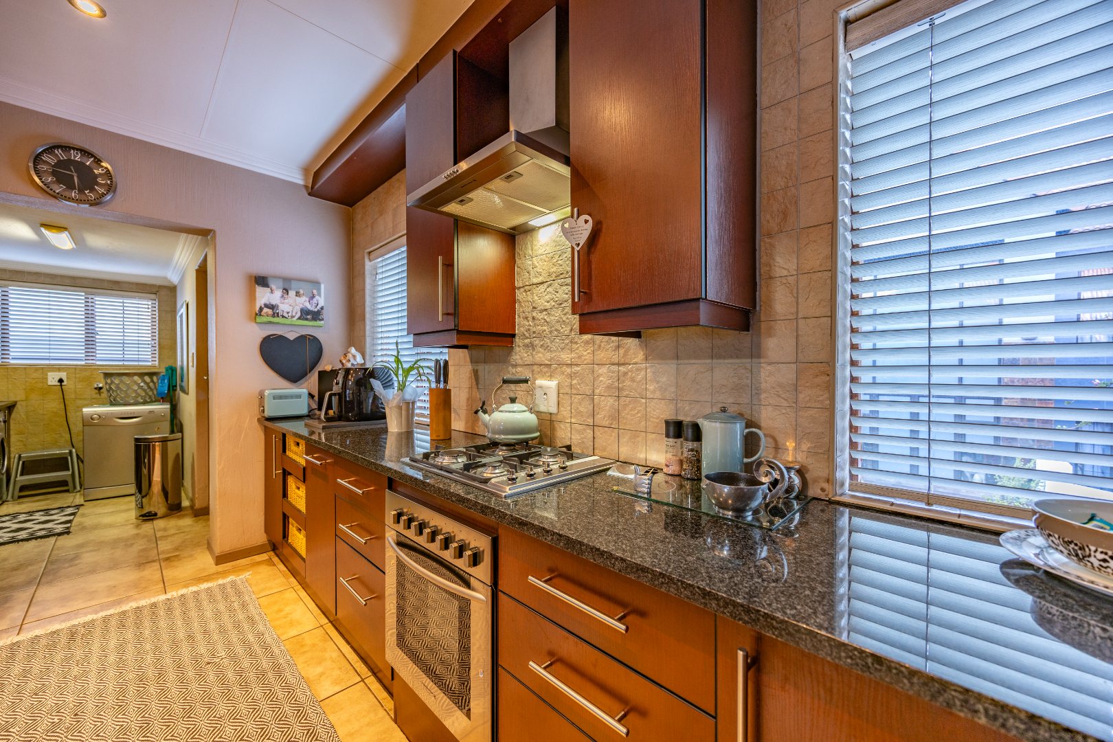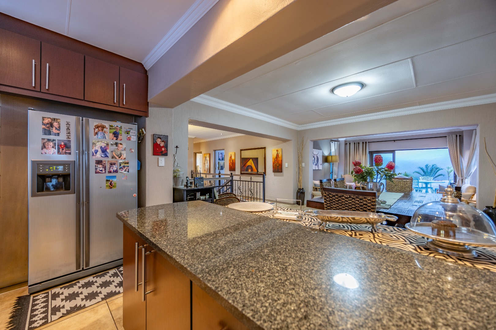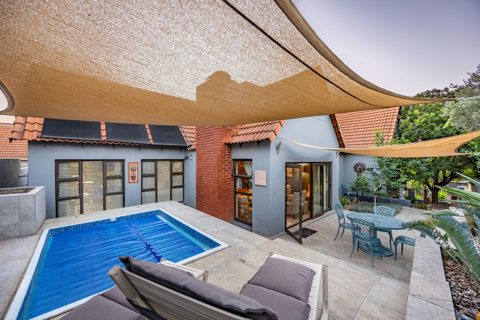 Nestled in the highly sought-after Highlands Estate, this elevated modern family home offers a rare combination of style, comfort, and thoughtful design. From the moment you arrive, the double garage on the ground floor sets the tone, providing convenience while adding to the impressive street presence of the property. Step through the spacious entrance hall and immediately feel a sense of grandeur as the home opens up, guiding you upstairs to the main living level. Here, the flow is effortless, with the kitchen, lounge, and dining area interconnected in an open-plan layout that invites natural light to fill every corner. The kitchen, adorned with granite countertops, a gas stove, and a water connection for your fridge, is designed for both functionality and elegance. Adjacent, the scullery ensures practicality without compromising on aesthetics. Beyond the kitchen, the built-in braai area with folding doors opens to the sparkling swimming pool and sun-soaked terrace, creating a seamless connection between indoors and outdoors. From this vantage point, the home offers breathtaking panoramic views of most of Pretoria, where city lights and natural landscapes blend beautifully, making every gathering, every family moment, and every quiet evening an extraordinary experience.