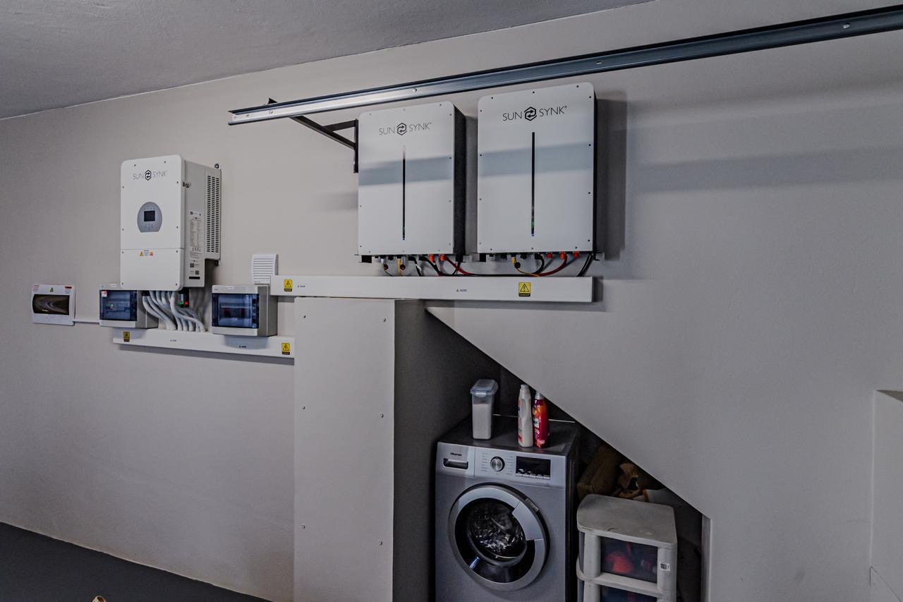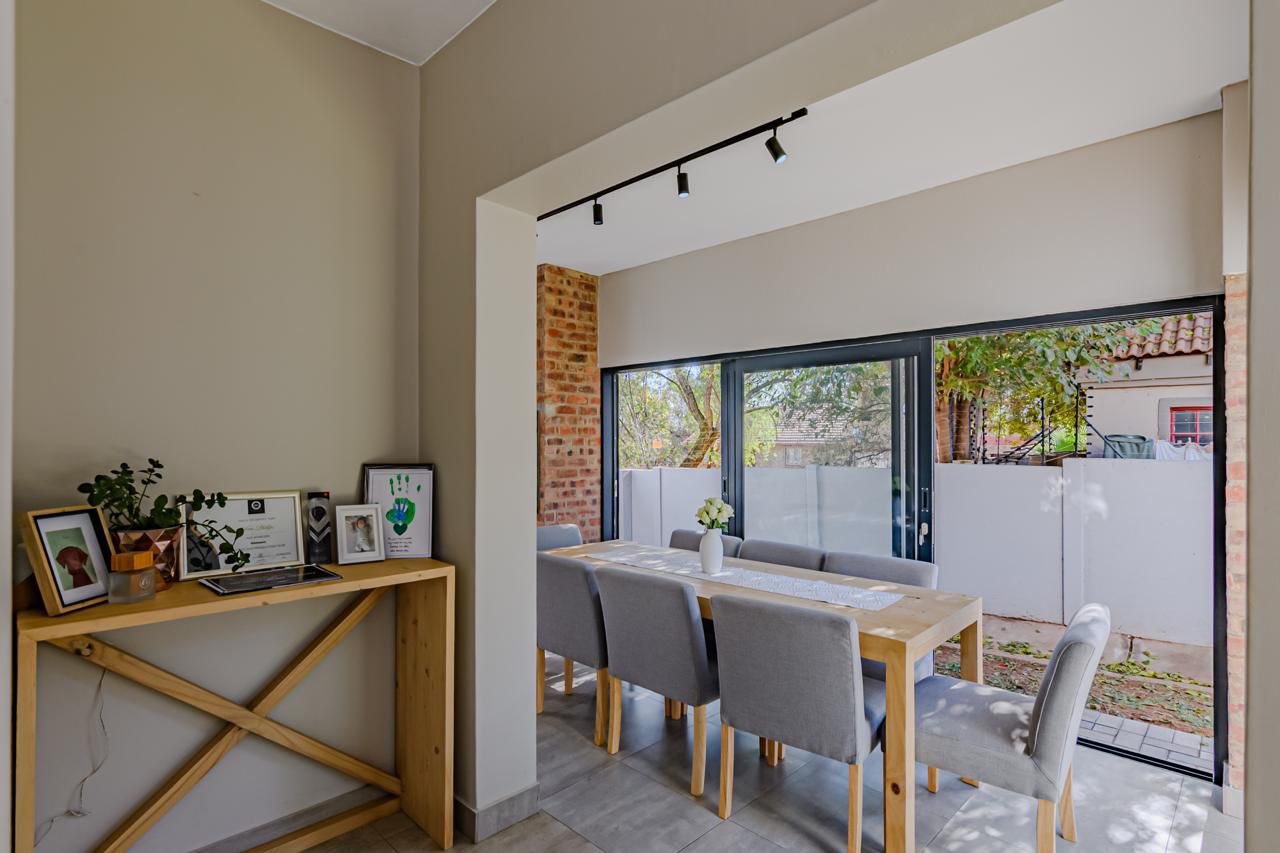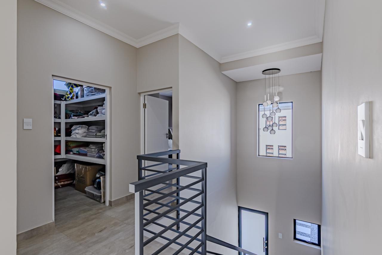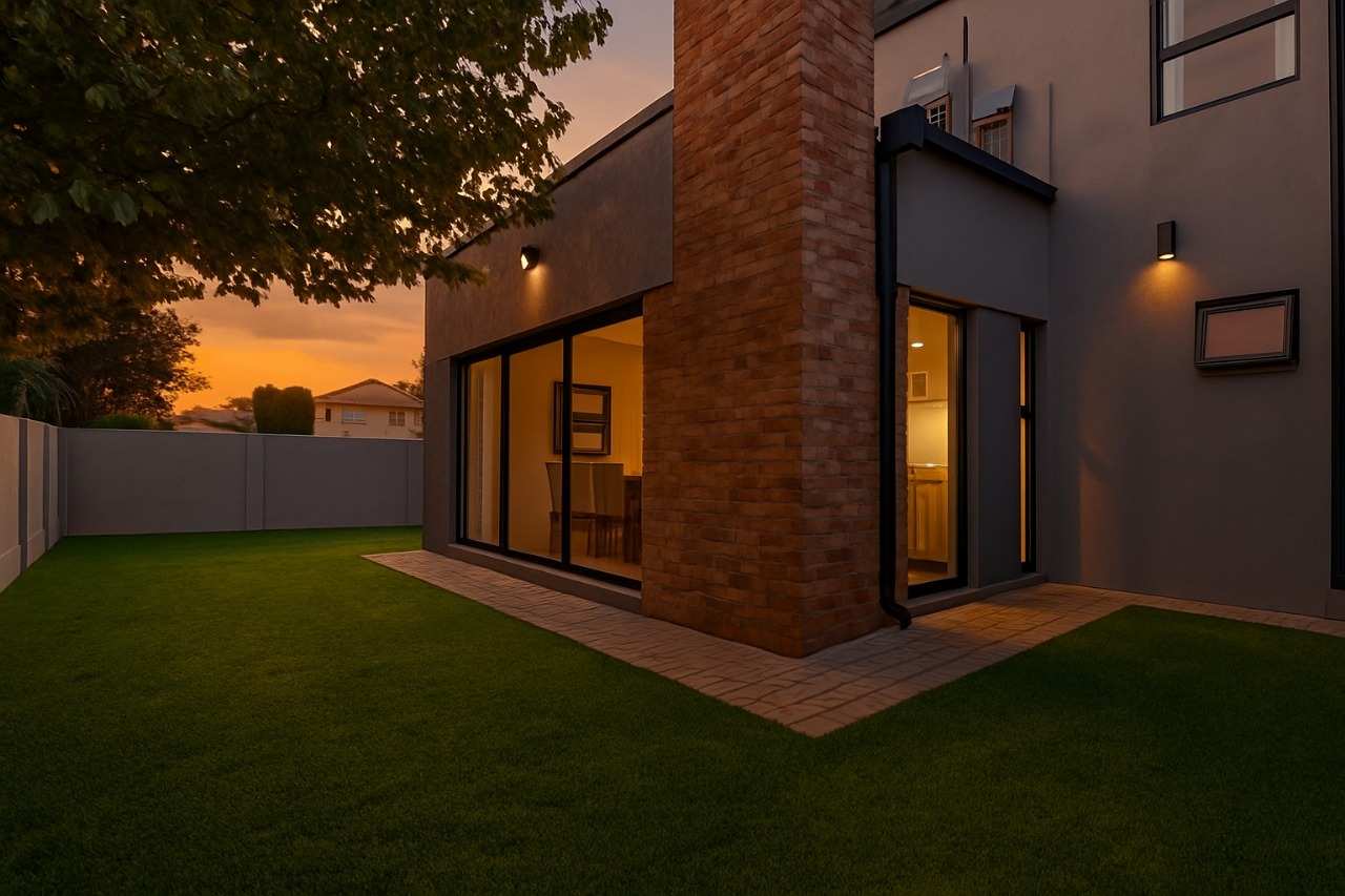 The property boasts three well-sized bedrooms, two and a half bathrooms including a guest toilet, and two spacious lounges that provide versatile living areas. The modern kitchen is fitted with quality finishes, while the built-in braai creates the perfect setting for hosting family and friends. Two automated garages with direct access ensure ease of living, while a solar geyser and gas geyser provide excellent energy efficiency and long-term savings.