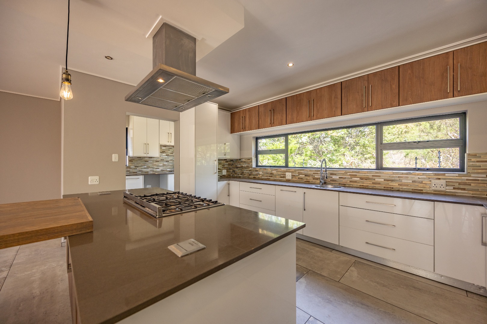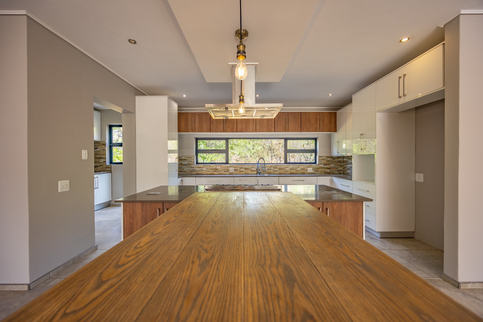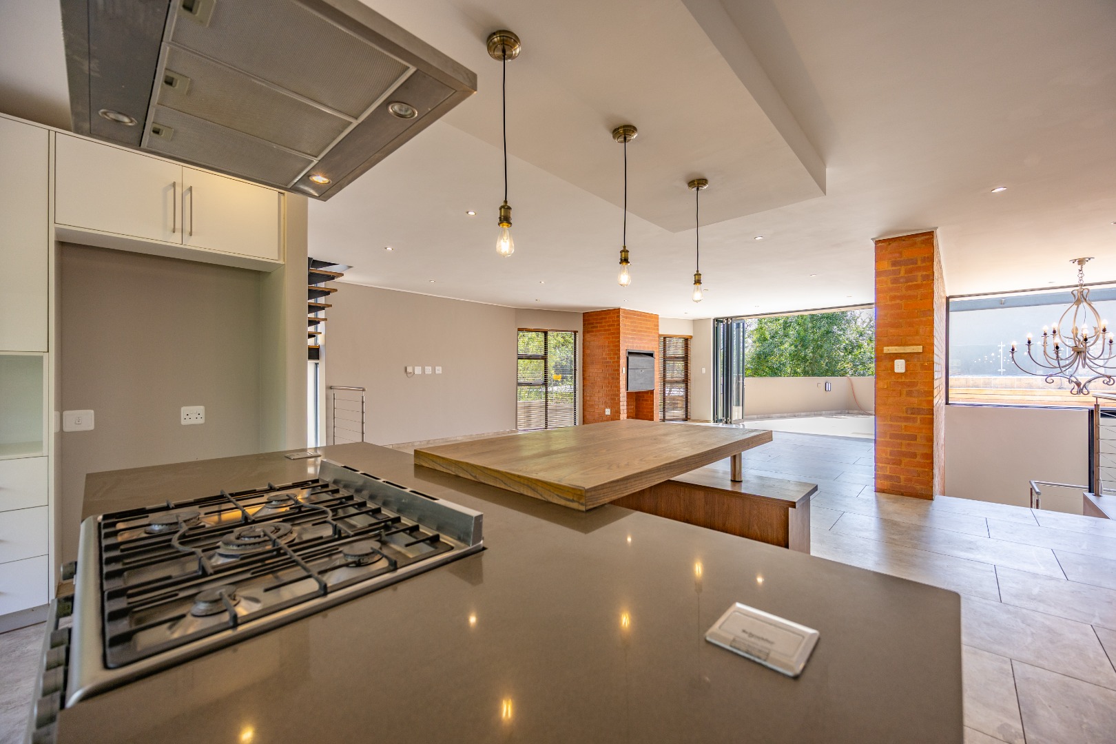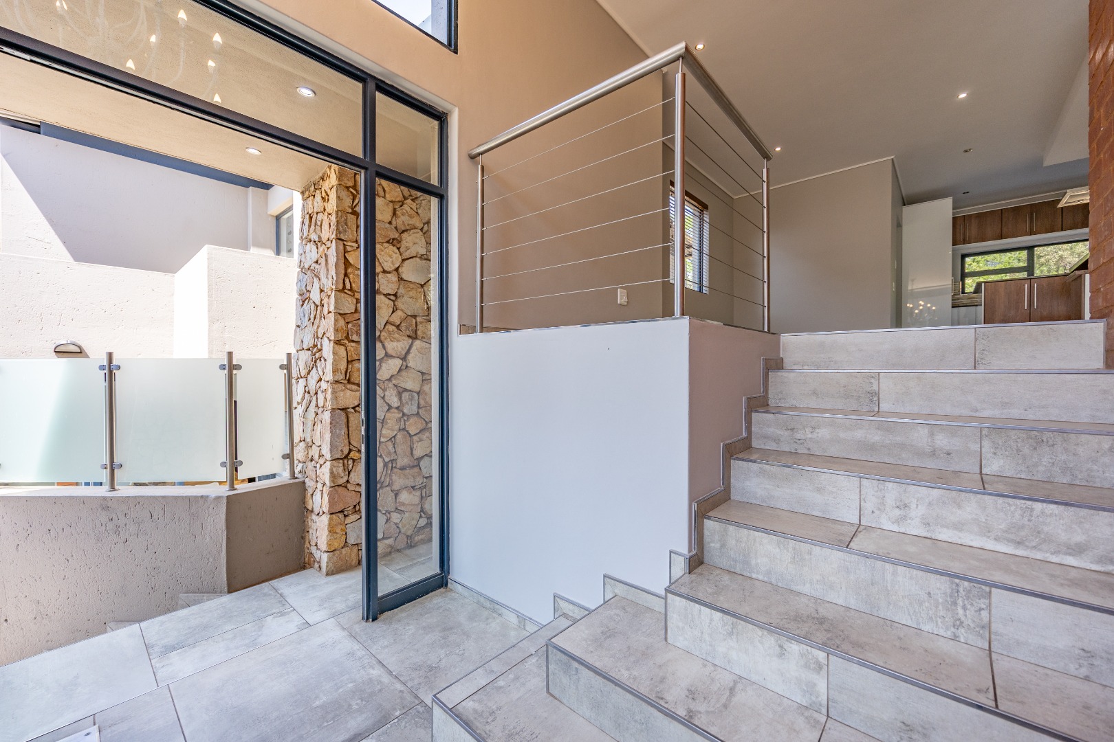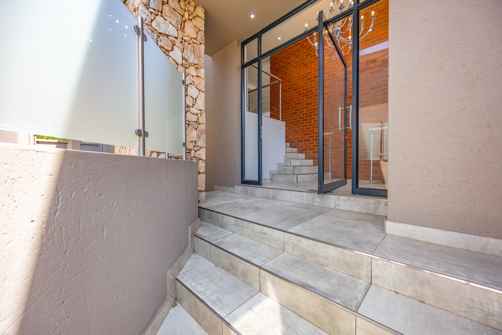 The main floor features an inviting entrance hall that opens into a spacious open-plan living area. Here, the dining room, lounge, and enclosed braai area flow effortlessly together, creating a versatile space for family gatherings or entertaining. A contemporary kitchen with a separate scullery completes the picture.