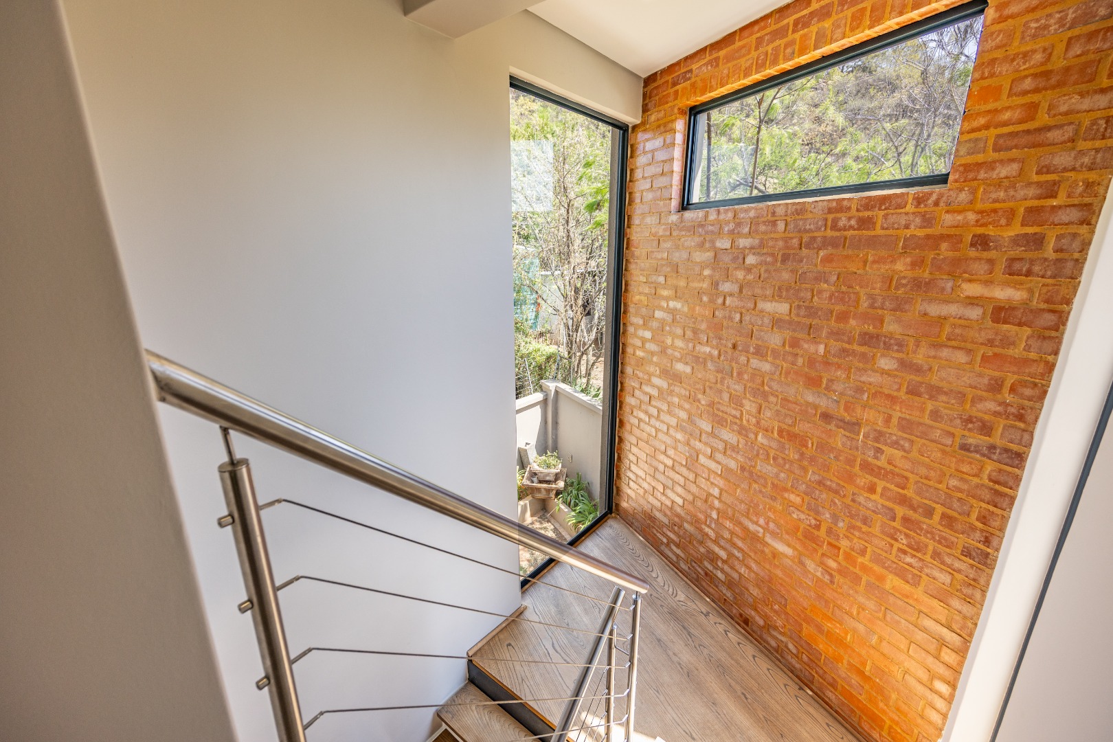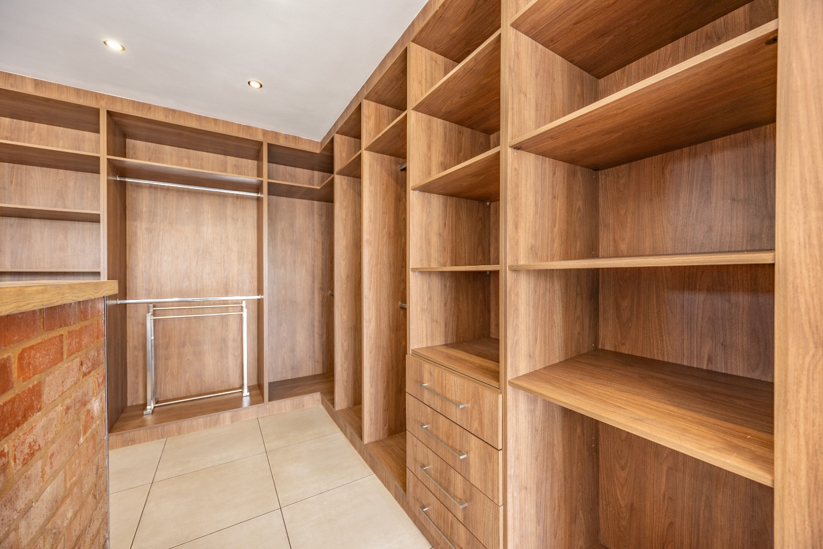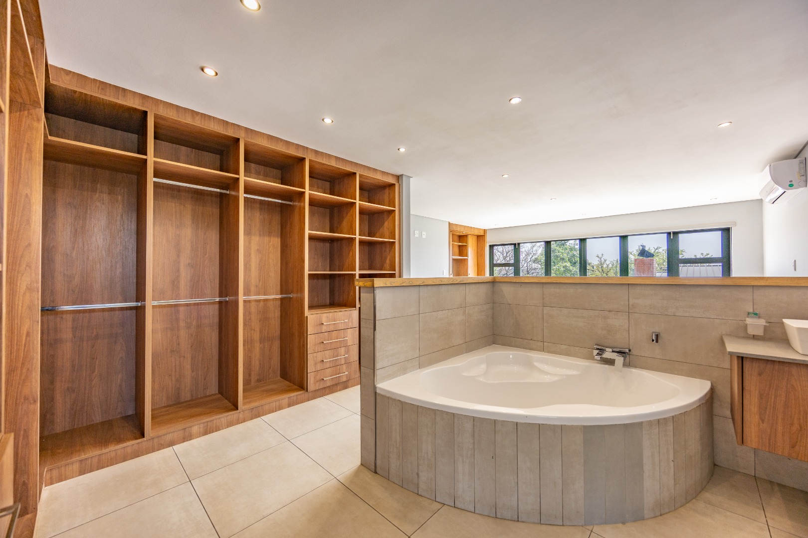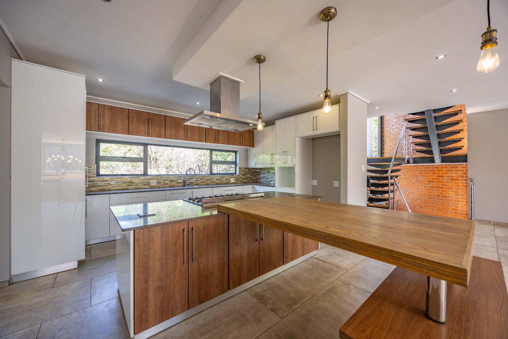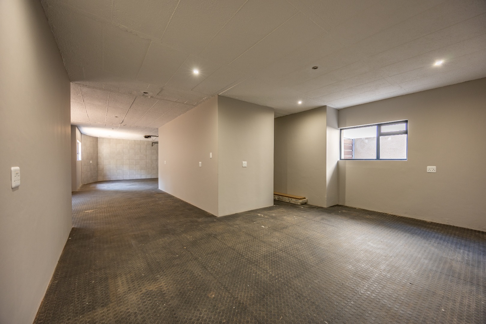 The main floor features an inviting entrance hall that opens into a spacious open-plan living area. Here, the dining room, lounge, and enclosed braai area flow effortlessly together, creating a versatile space for family gatherings or entertaining. A contemporary kitchen with a separate scullery completes the picture.