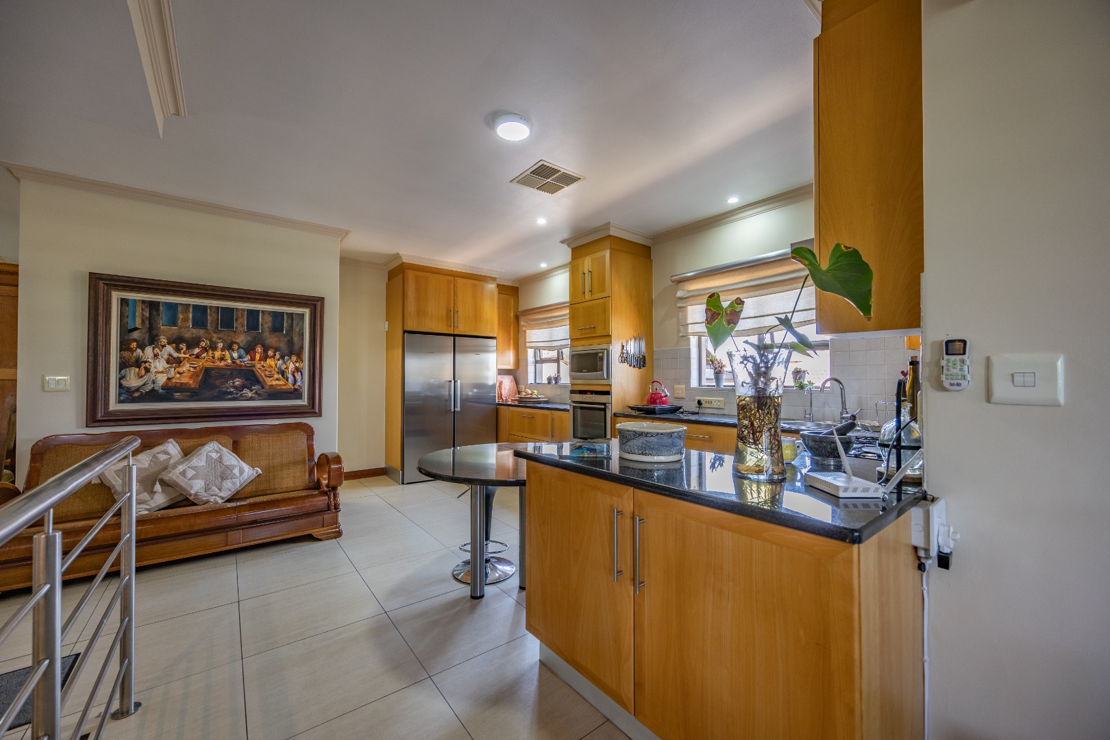 The stylish kitchen serves as the heart of the home, featuring modern cabinetry, premium appliances, and generous counter space. Its open design ensures easy flow to the dining area, perfect for hosting family meals or social gatherings.