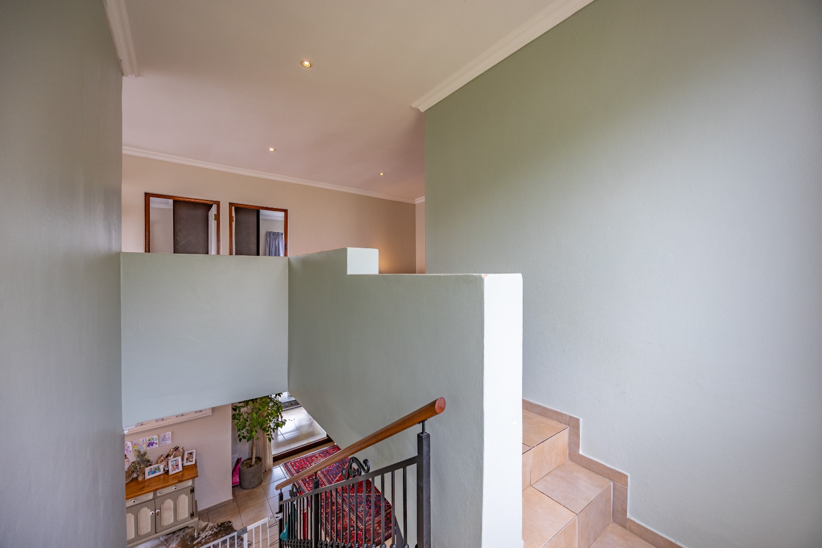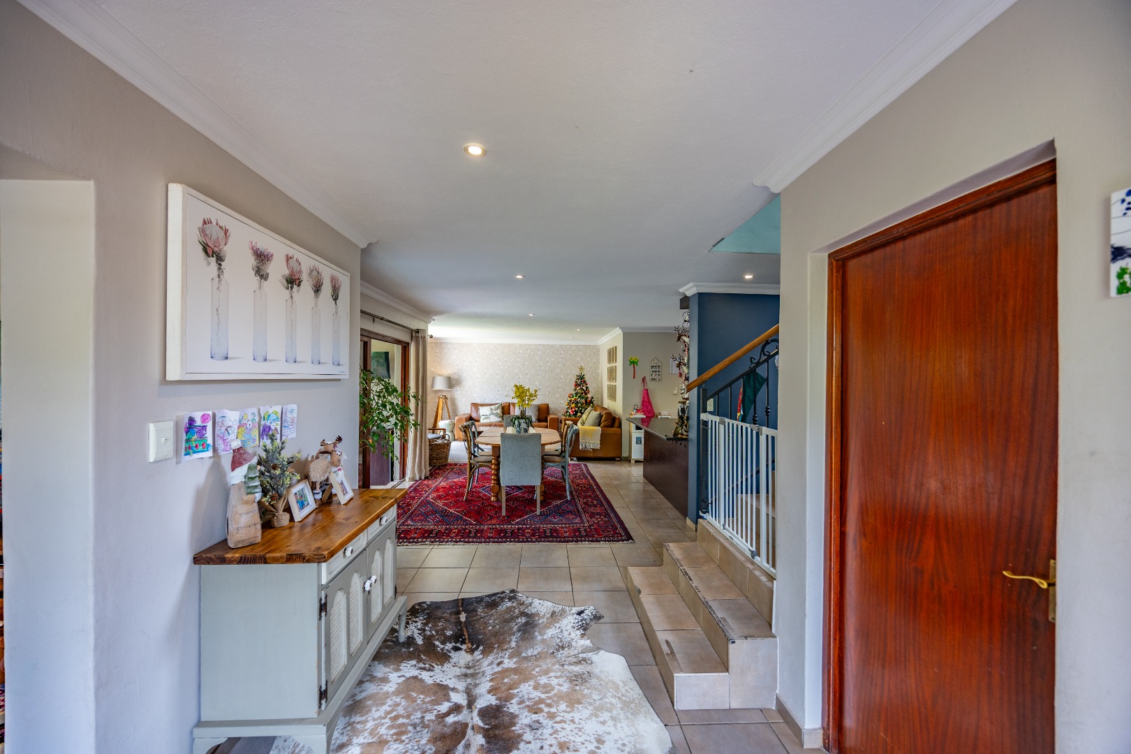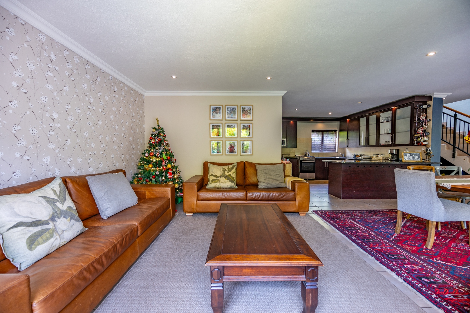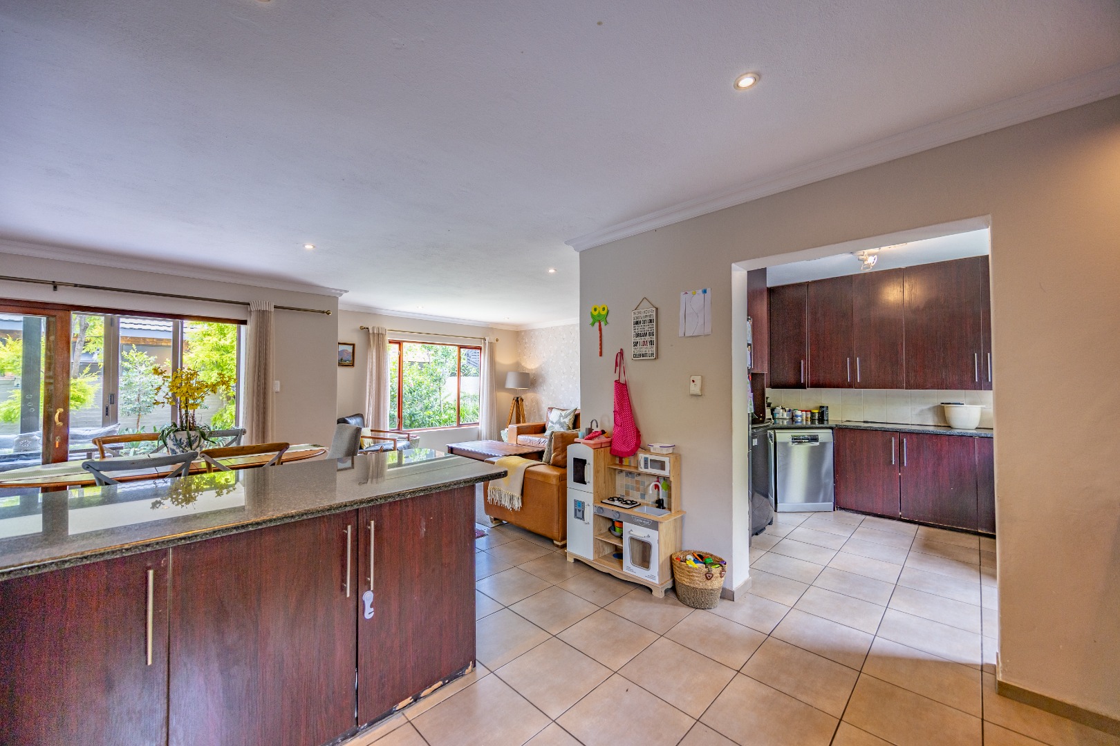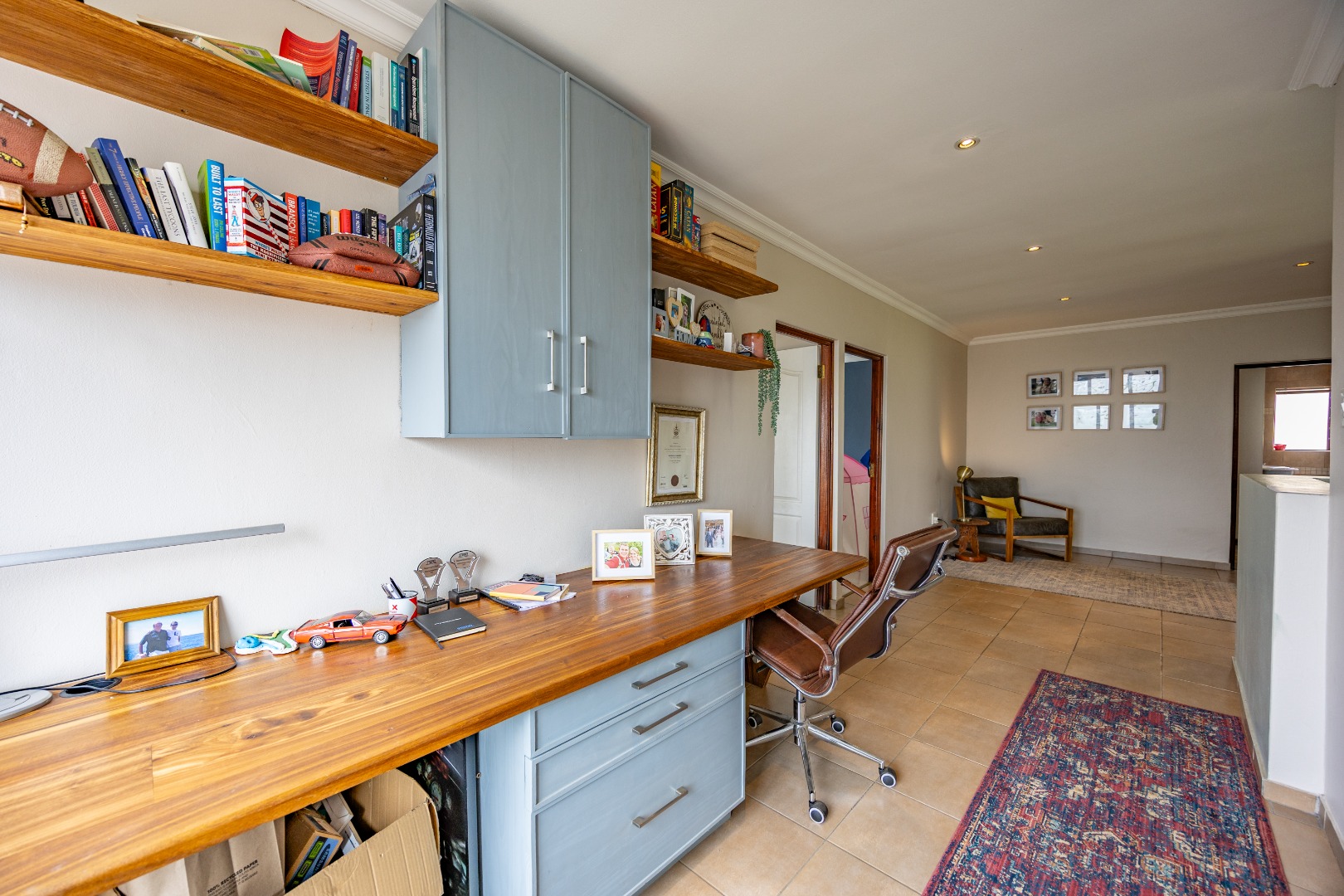The ground floor welcomes you with light-filled living areas that flow seamlessly from a formal lounge and dining room to a relaxed family room. The open-plan kitchen, fitted with a gas stove and electric oven, offers an abundance of cupboard space and a separate scullery for added convenience.