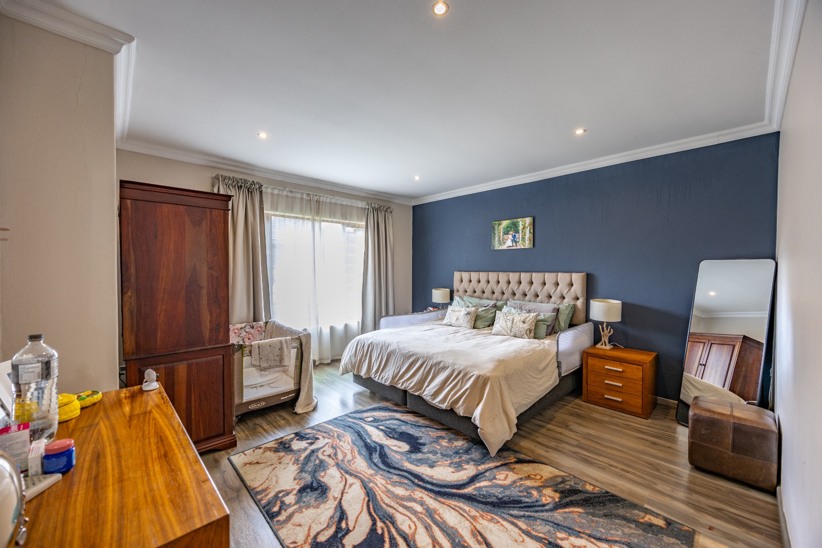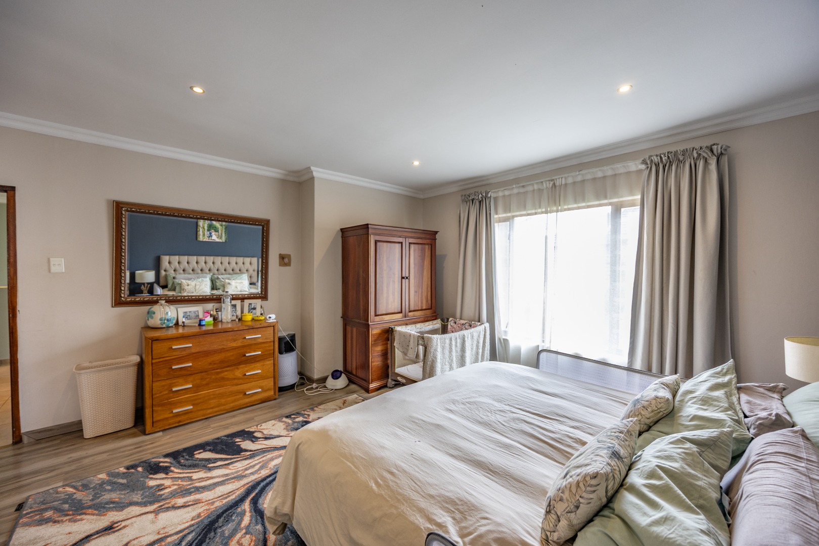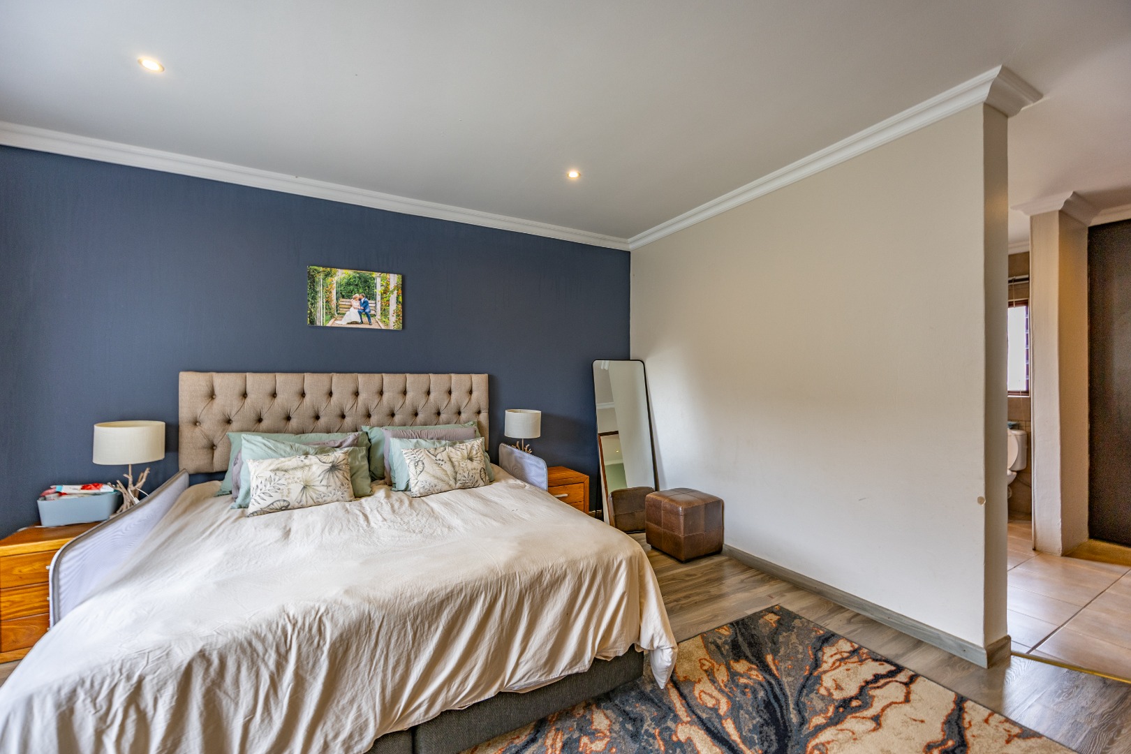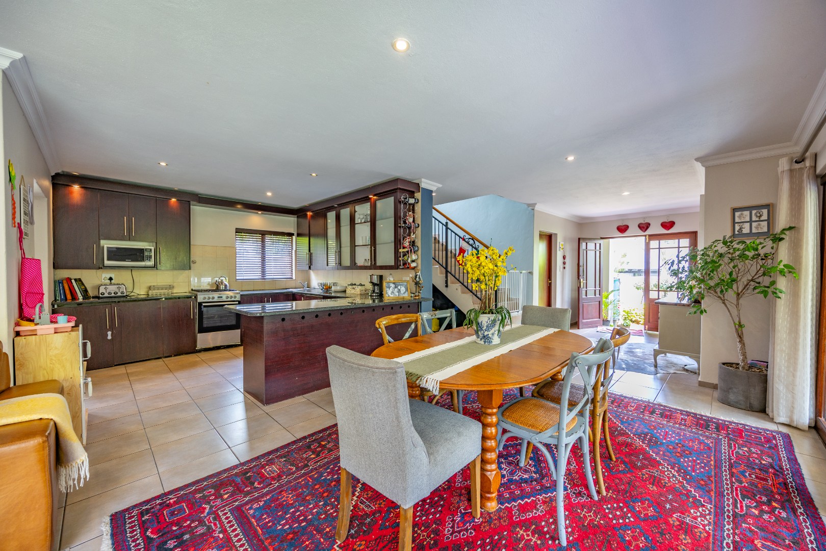 The ground floor welcomes you with light-filled living areas that flow seamlessly from a formal lounge and dining room to a relaxed family room. The open-plan kitchen, fitted with a gas stove and electric oven, offers an abundance of cupboard space and a separate scullery for added convenience.