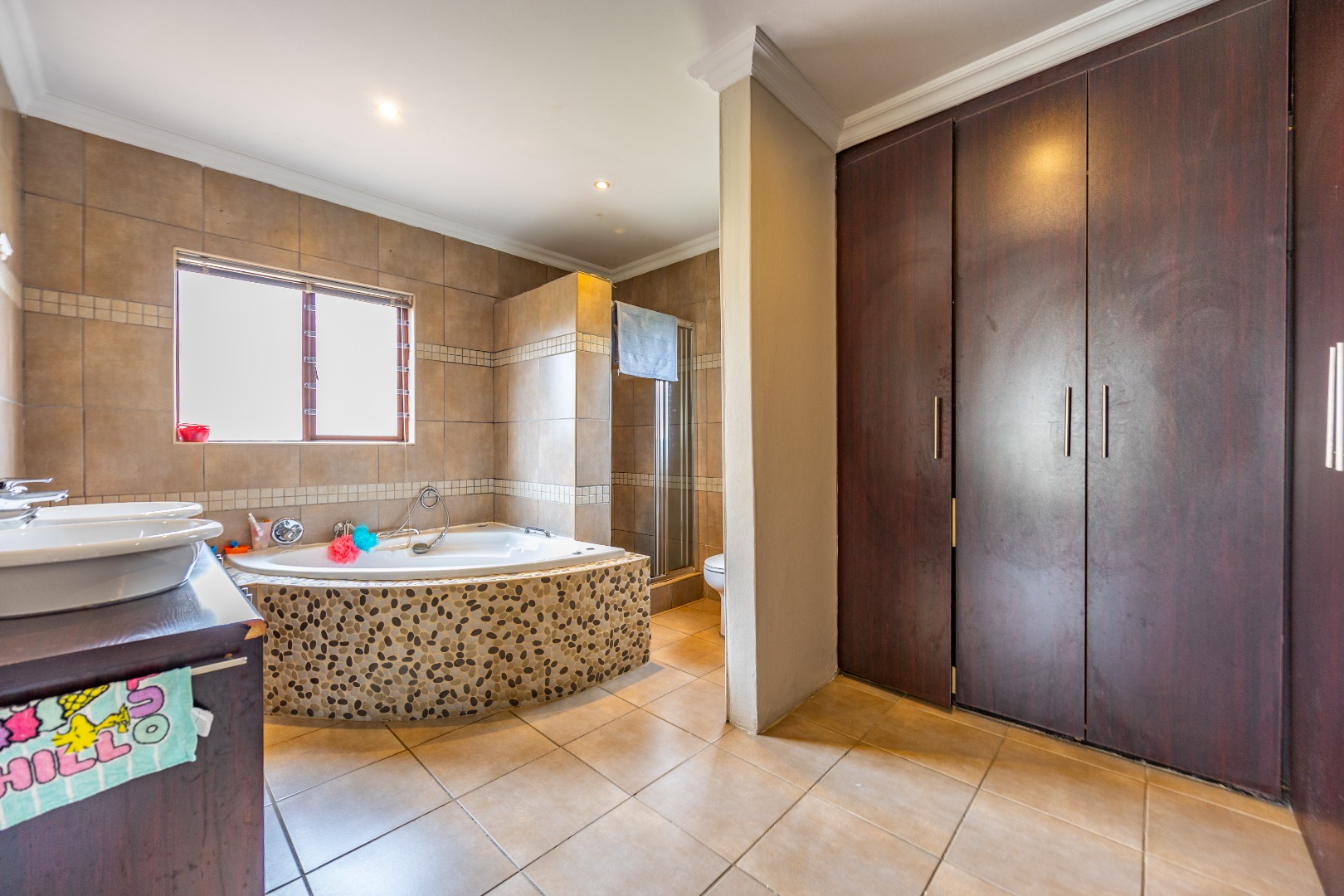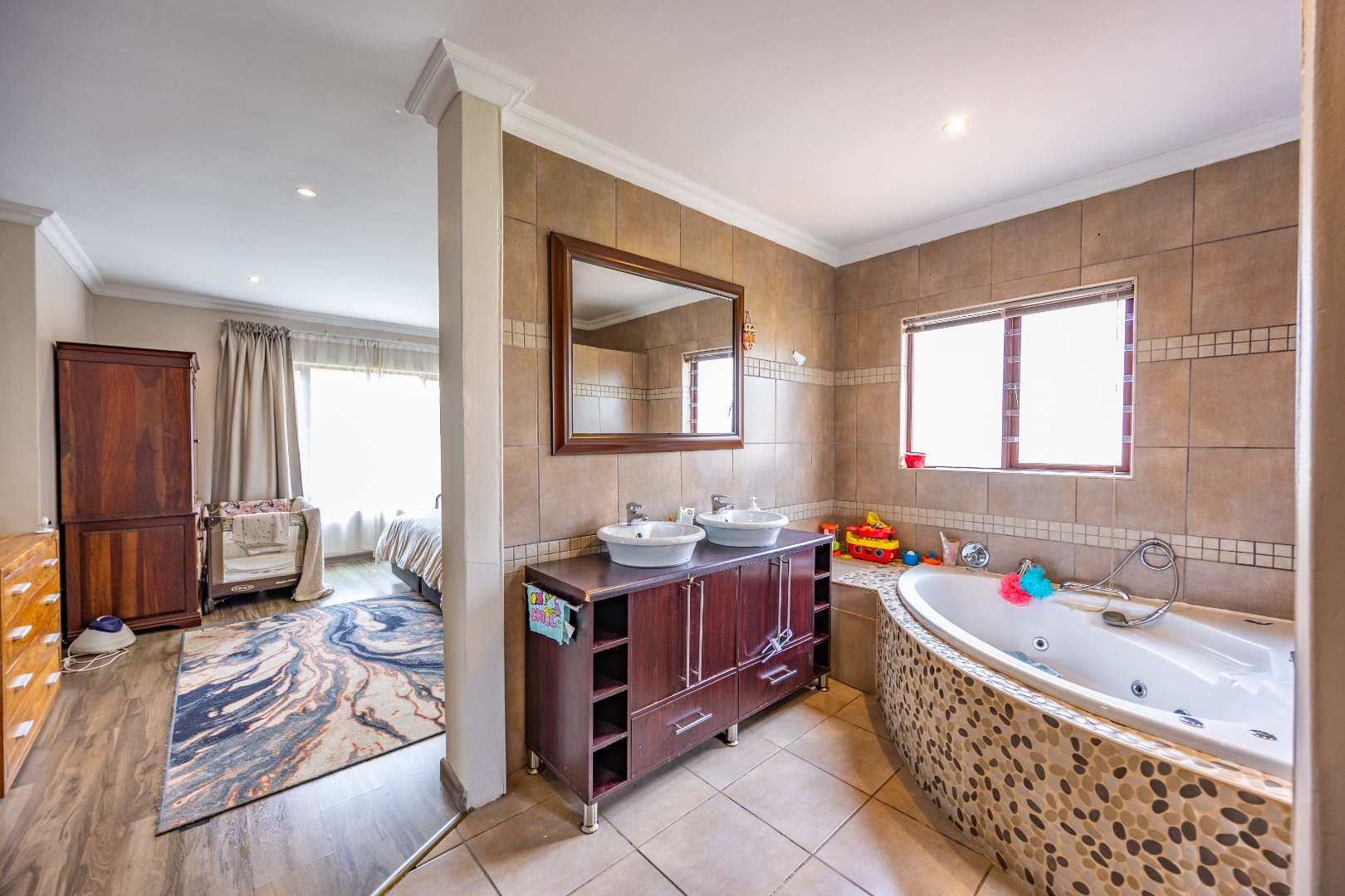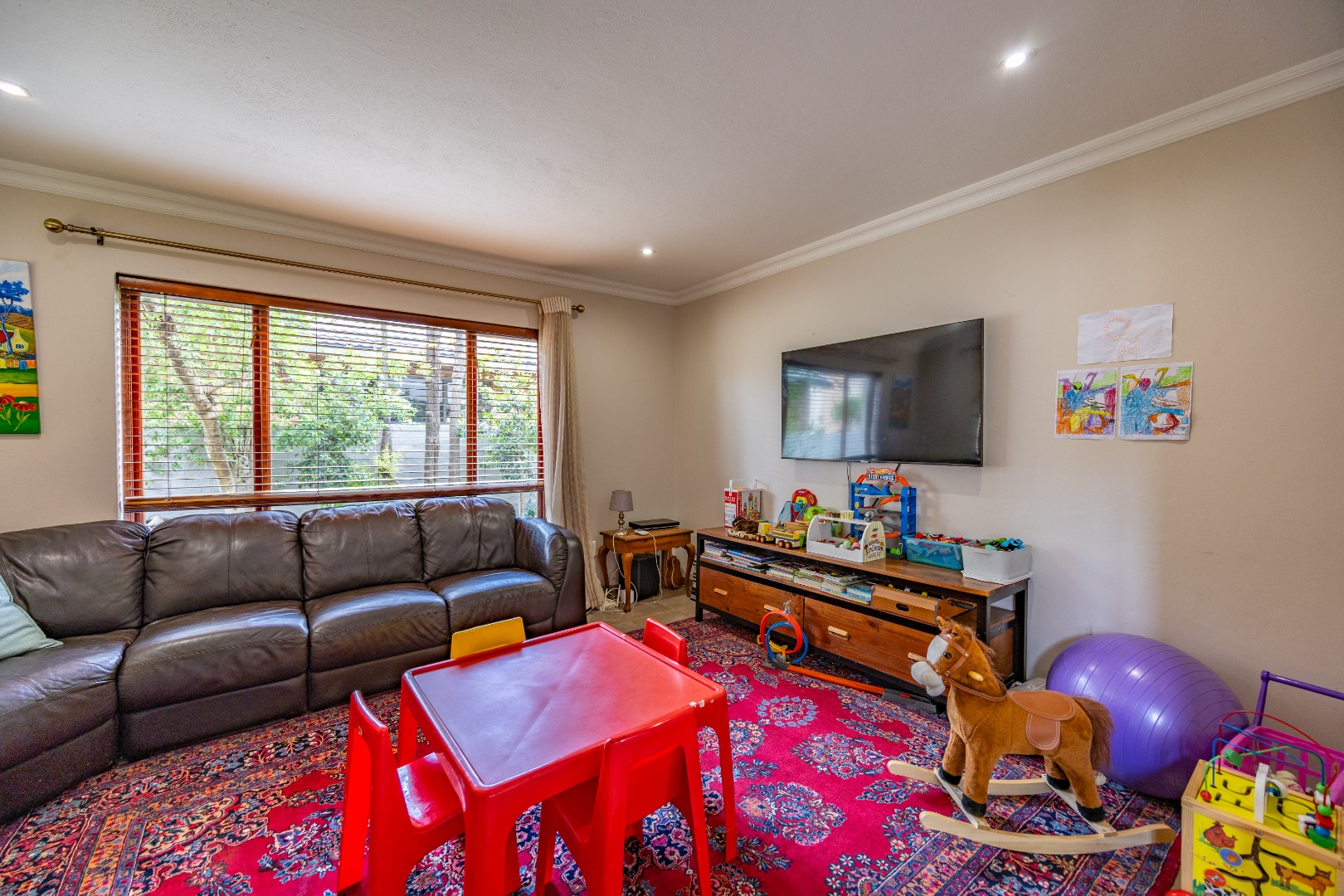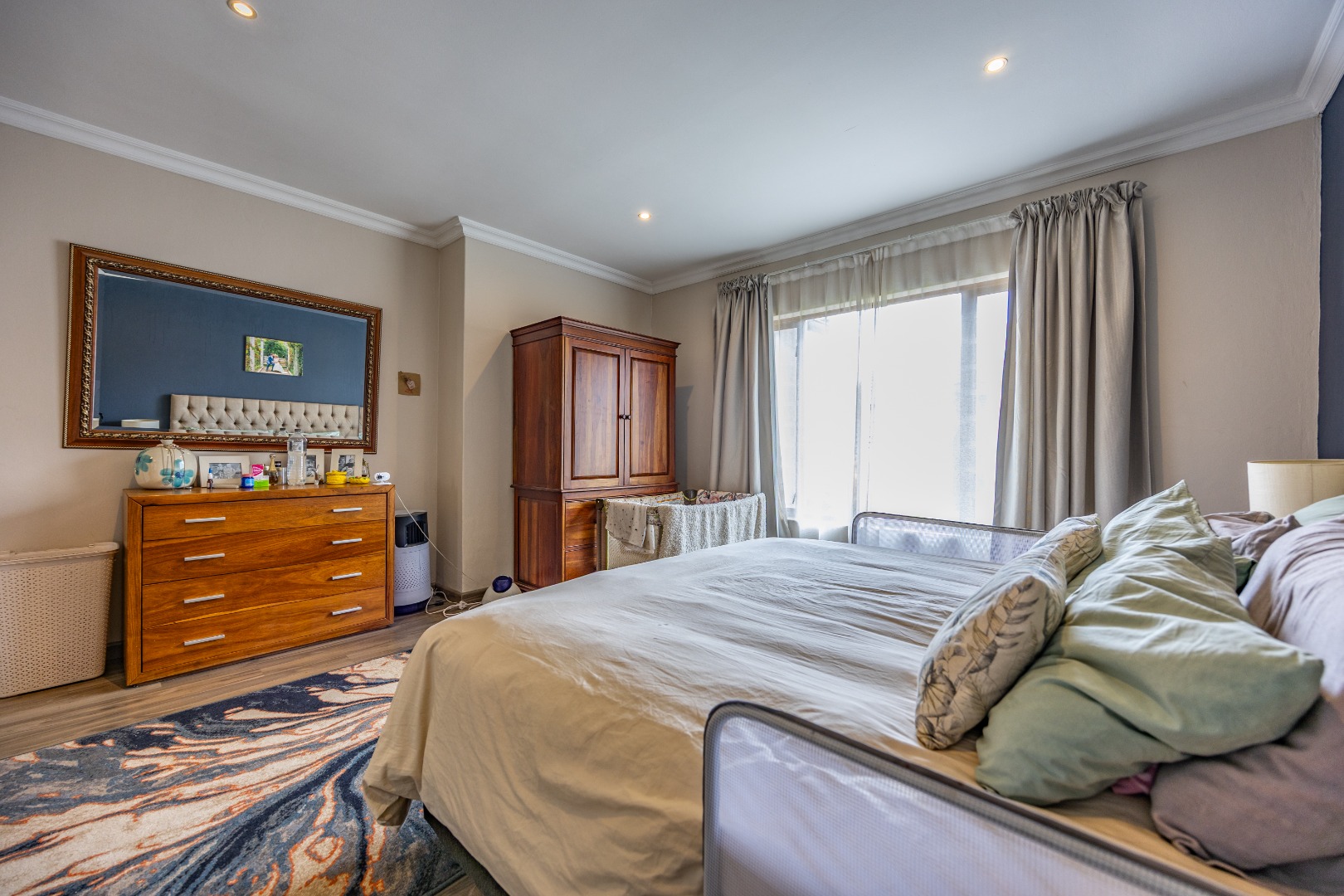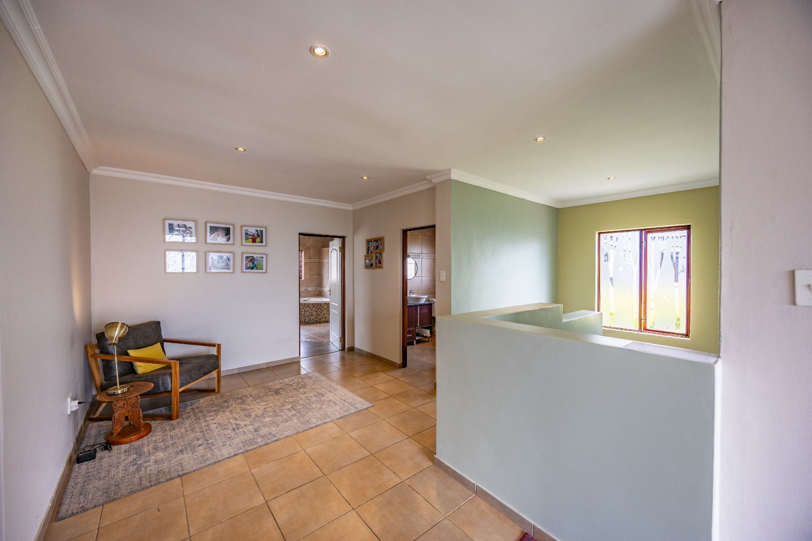 The ground floor welcomes you with light-filled living areas that flow seamlessly from a formal lounge and dining room to a relaxed family room. The open-plan kitchen, fitted with a gas stove and electric oven, offers an abundance of cupboard space and a separate scullery for added convenience.