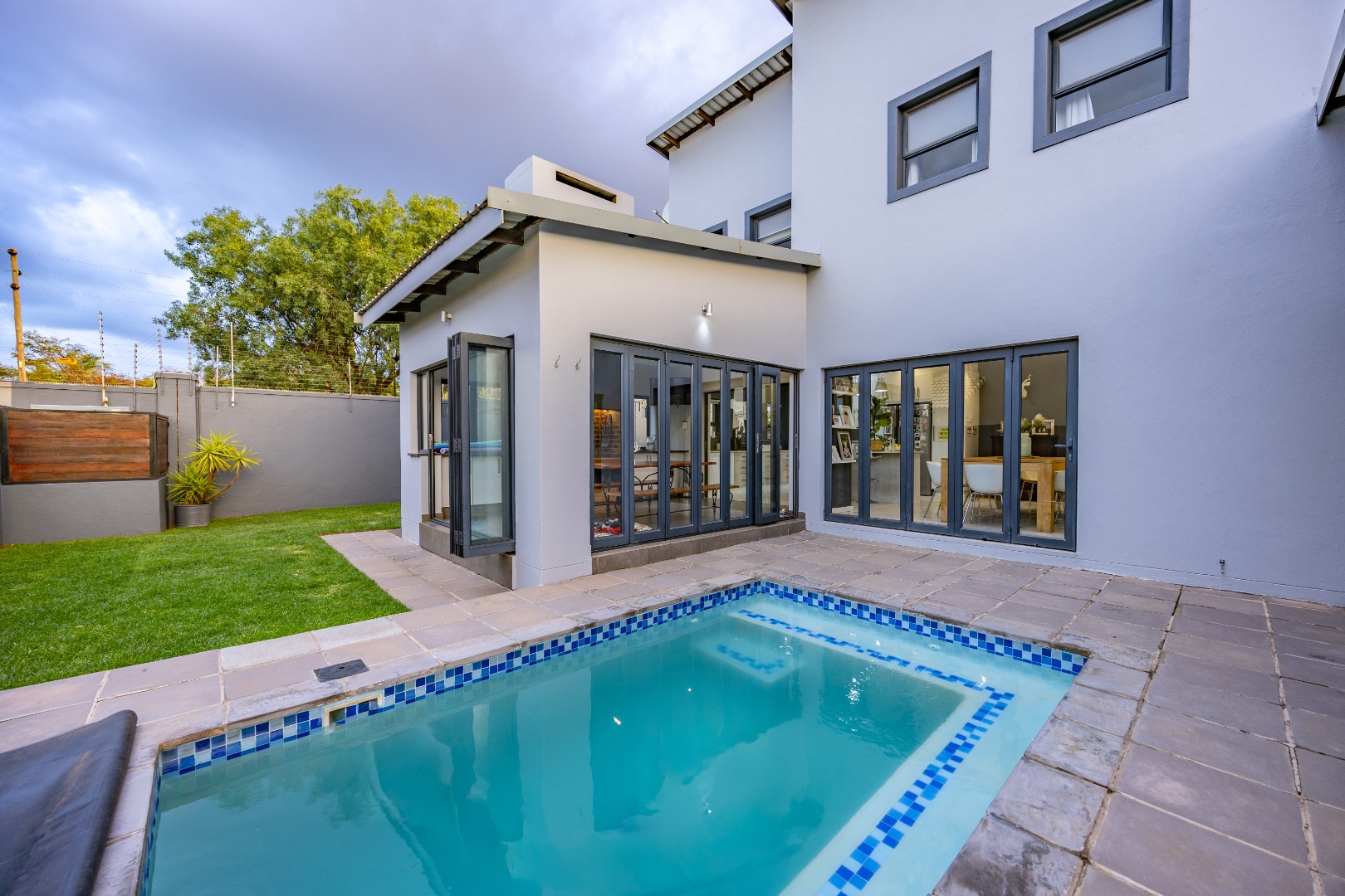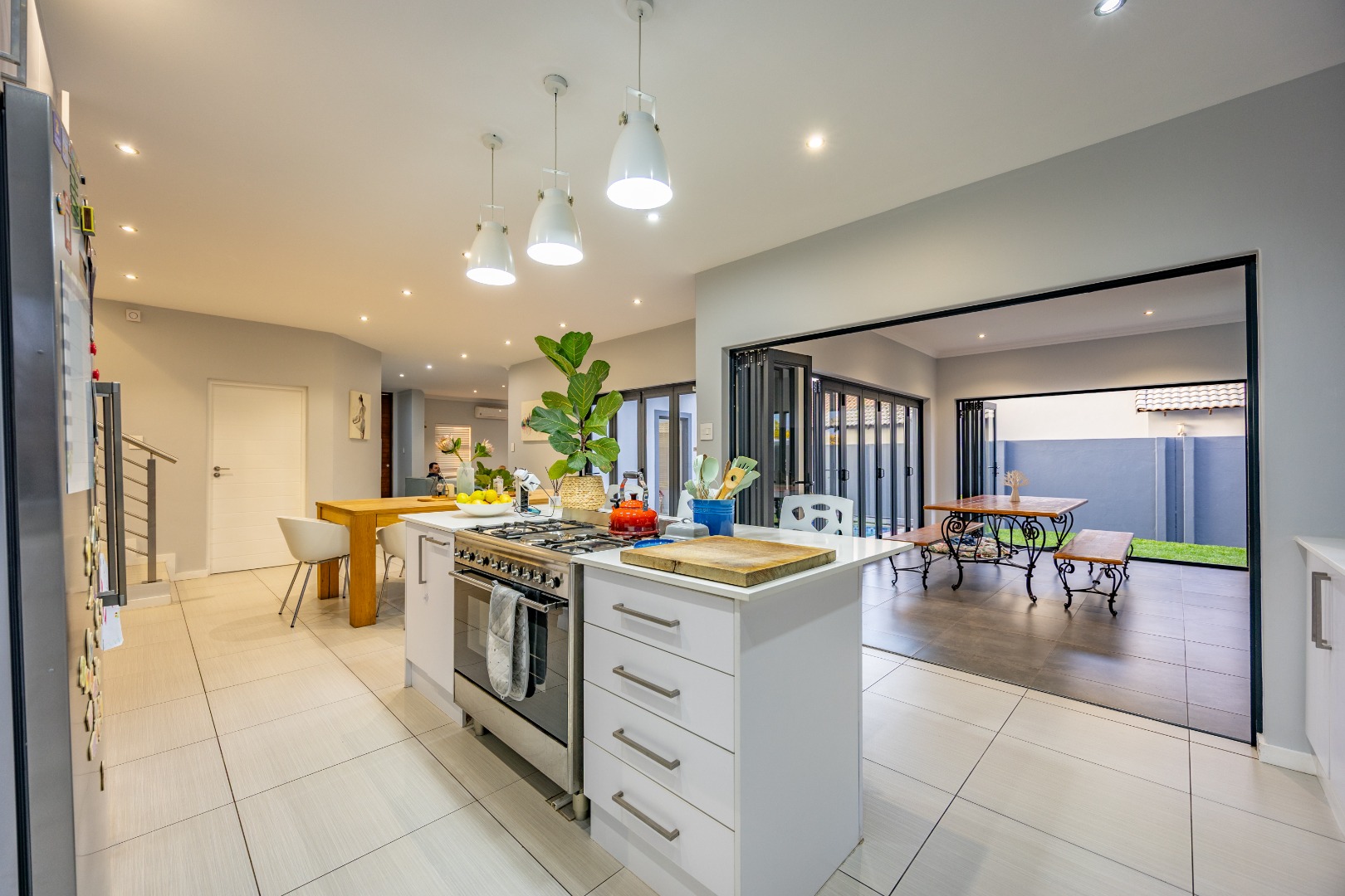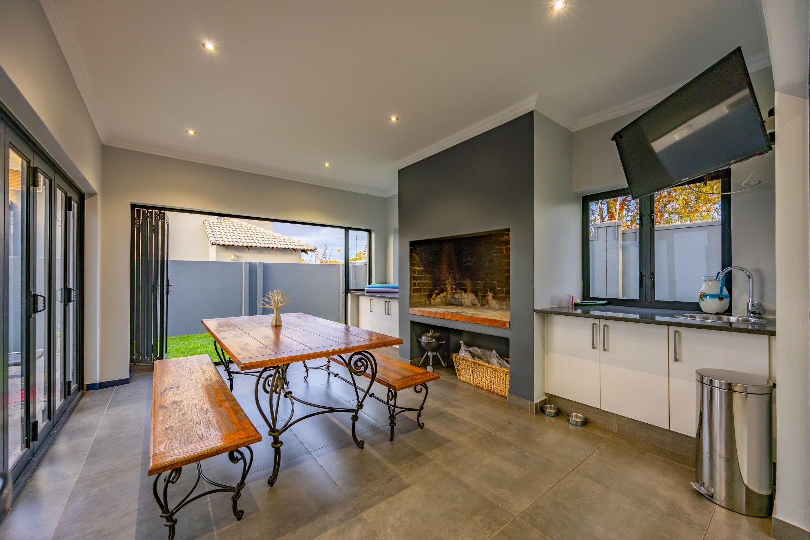 Step outside and prepare to fall in love. The covered entertainment area with a built-in braai and prep bowl overlooks a pristine swimming pool and manicured garden — the perfect balance of elegance and energy. This is where family moments, celebrations, and weekends come alive.