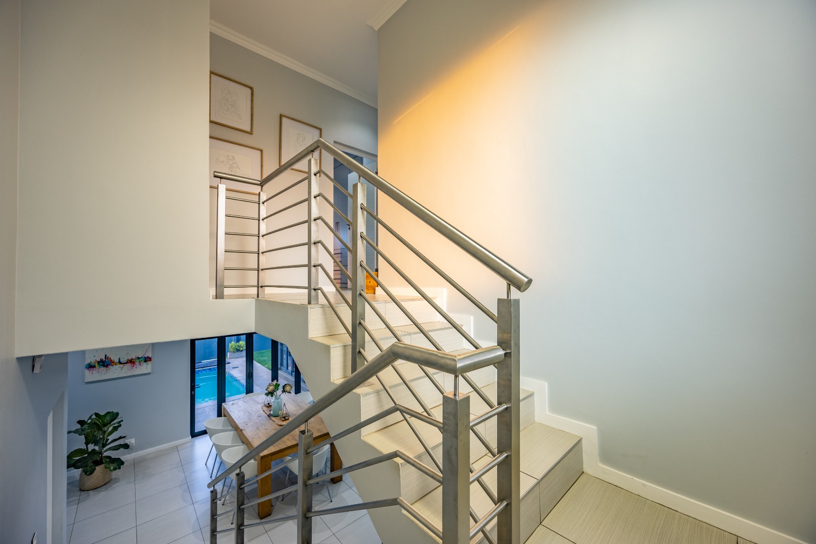 This home isn’t just beautiful — it’s powerful. Fully equipped with an 8kVA inverter, two 5kW batteries, and 12 solar panels, you’ll live uninterrupted and off-grid ready. A backup water system feeds directly into the home, while a heat pump keeps both the geyser and pool energy-efficient. Every element of this property has been designed to perform, save, and impress.