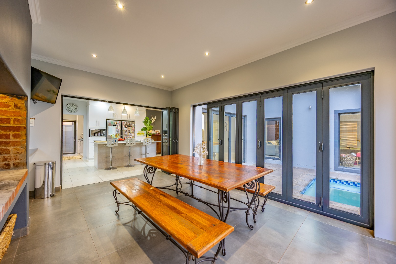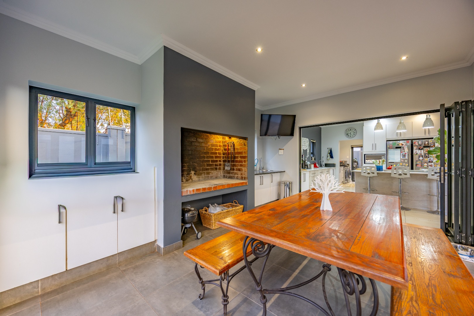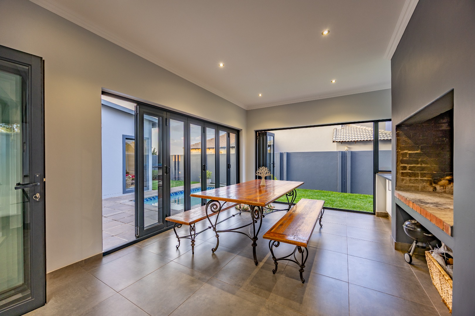 Step outside and prepare to fall in love. The covered entertainment area with a built-in braai and prep bowl overlooks a pristine swimming pool and manicured garden — the perfect balance of elegance and energy. This is where family moments, celebrations, and weekends come alive.