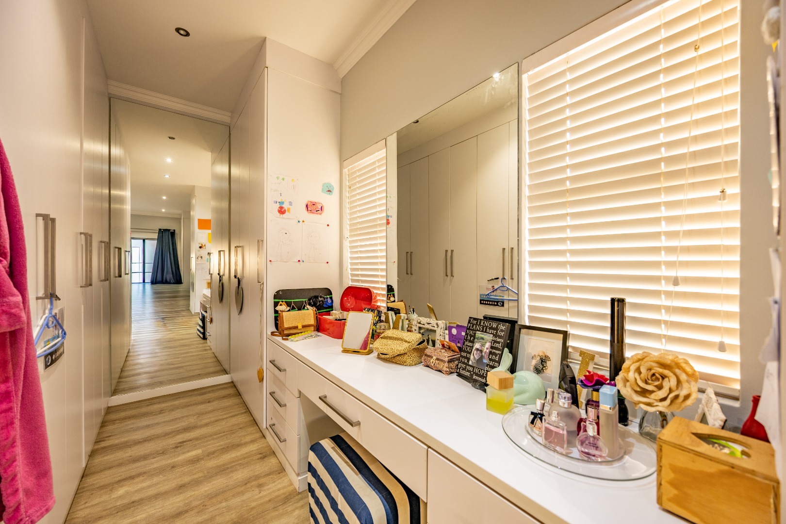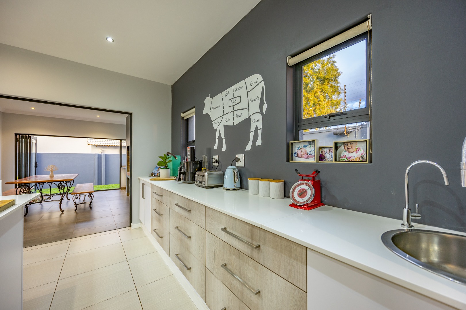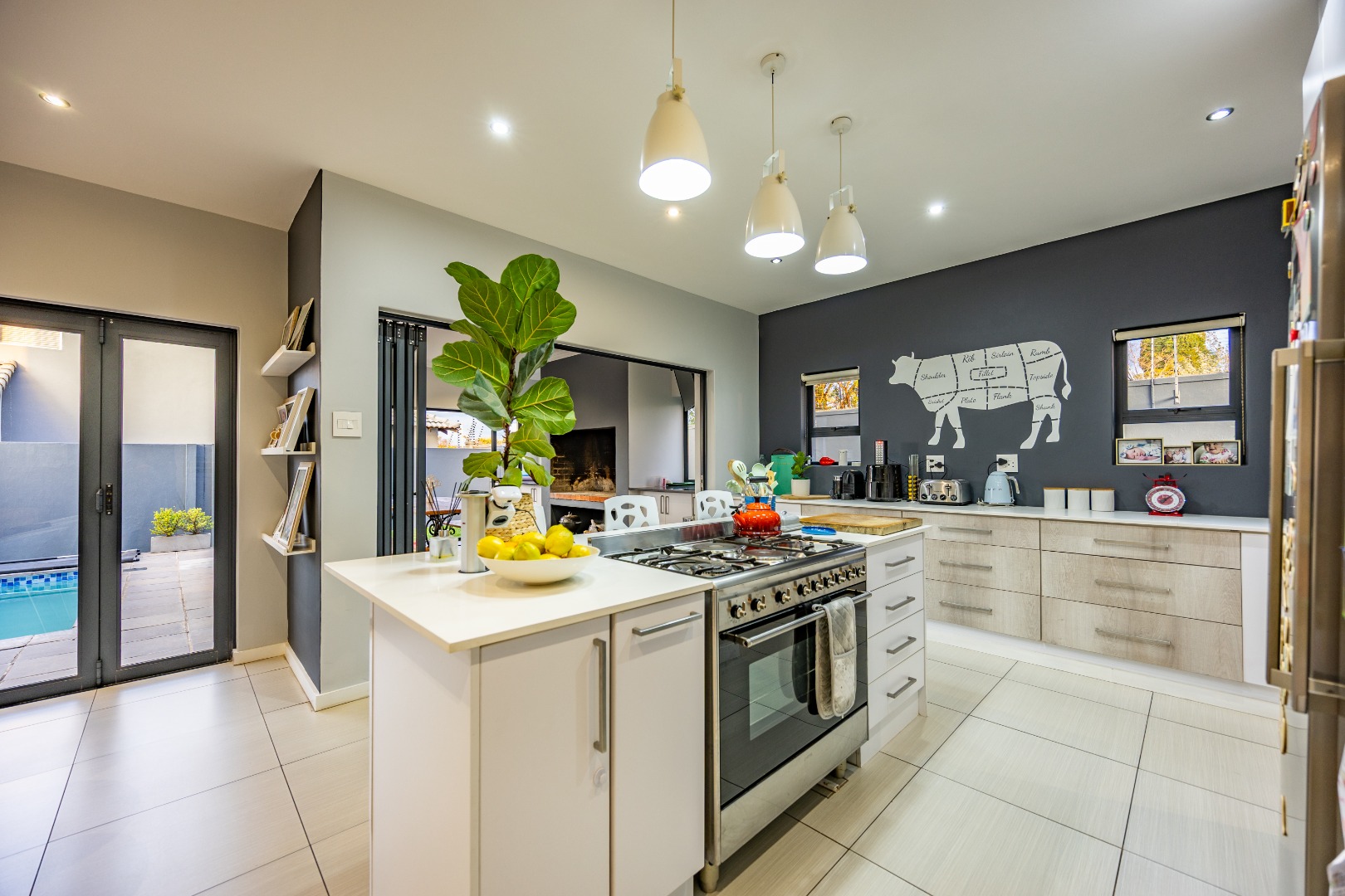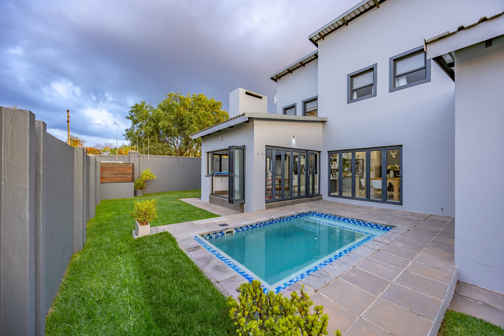 Step outside and prepare to fall in love. The covered entertainment area with a built-in braai and prep bowl overlooks a pristine swimming pool and manicured garden — the perfect balance of elegance and energy. This is where family moments, celebrations, and weekends come alive.