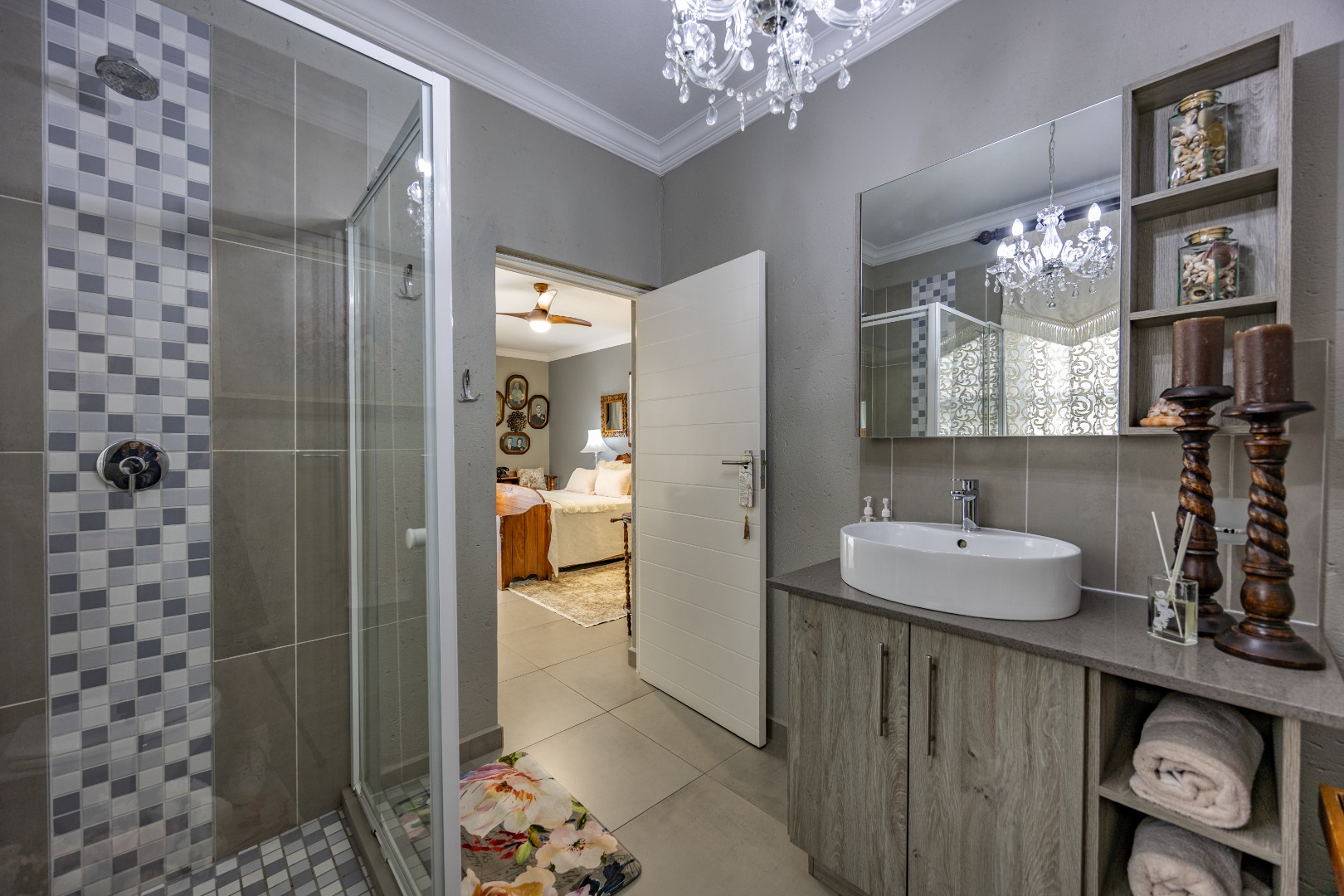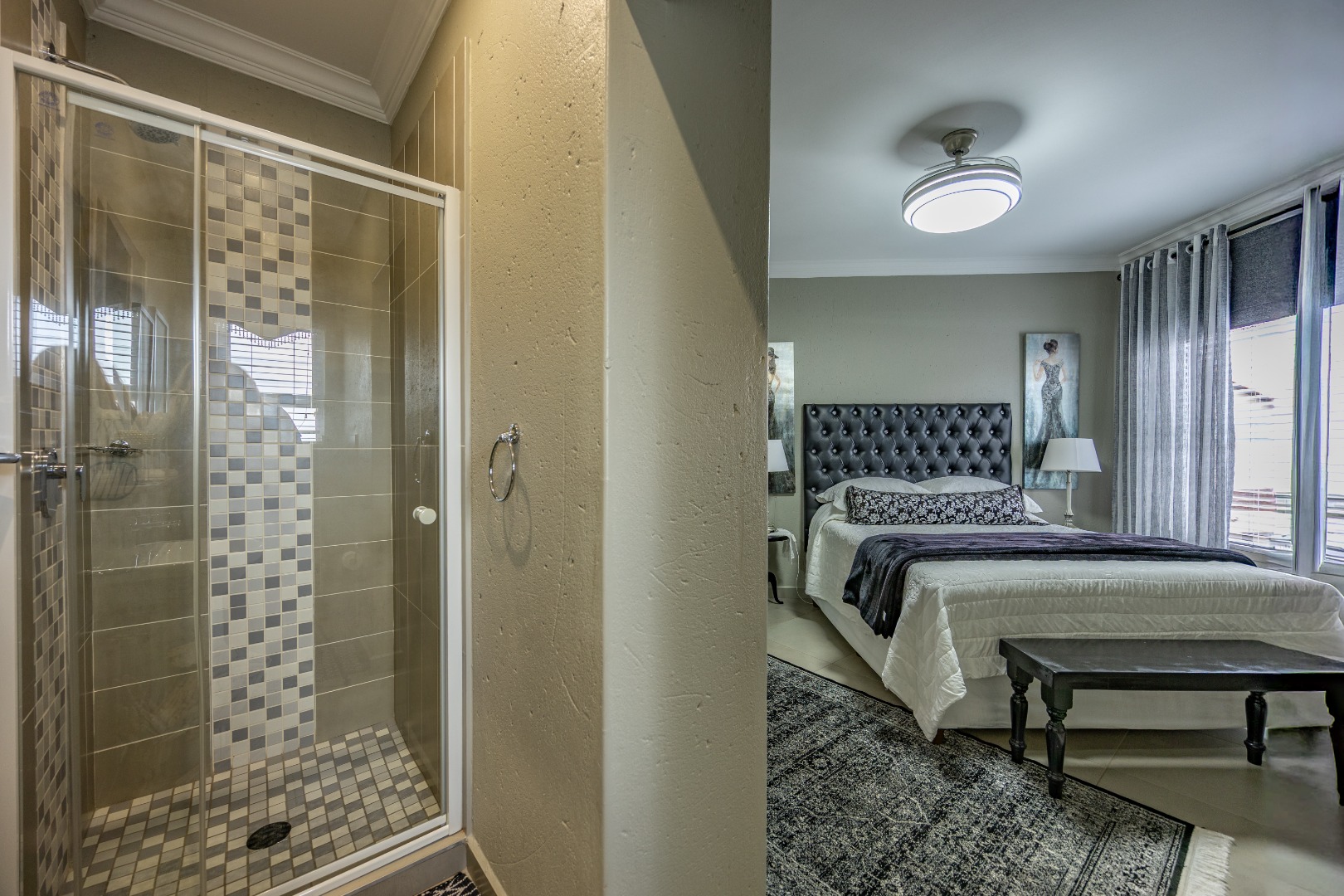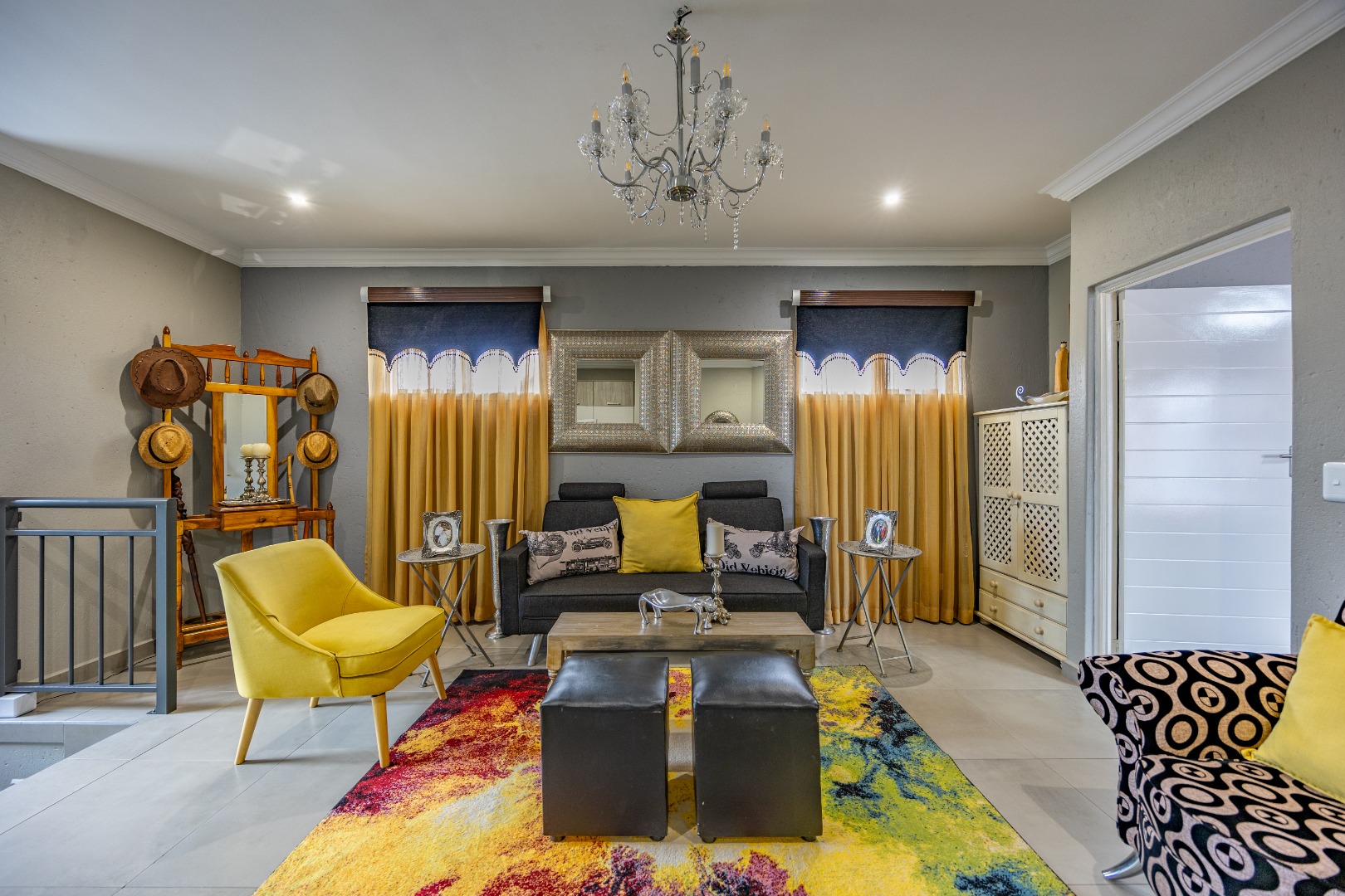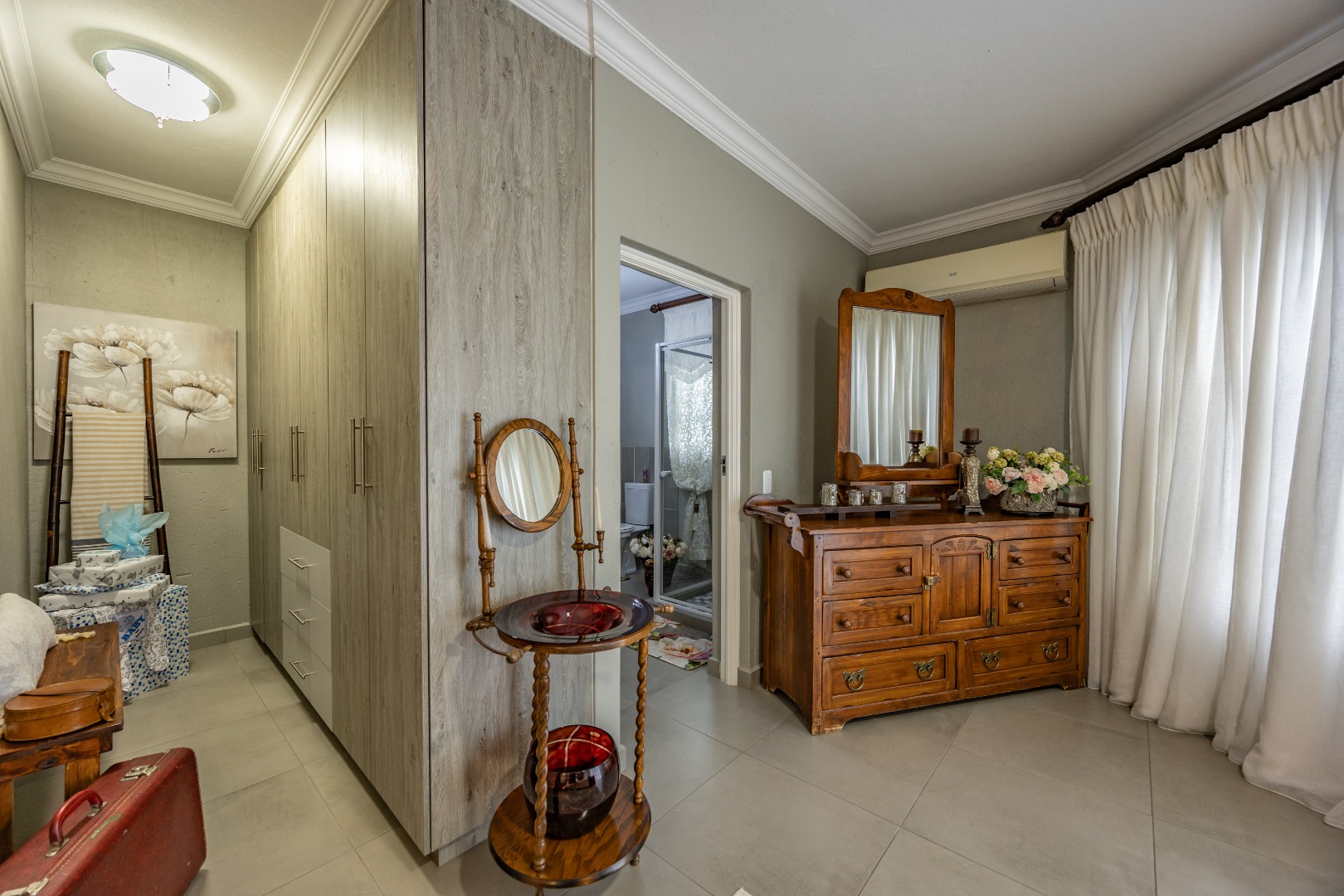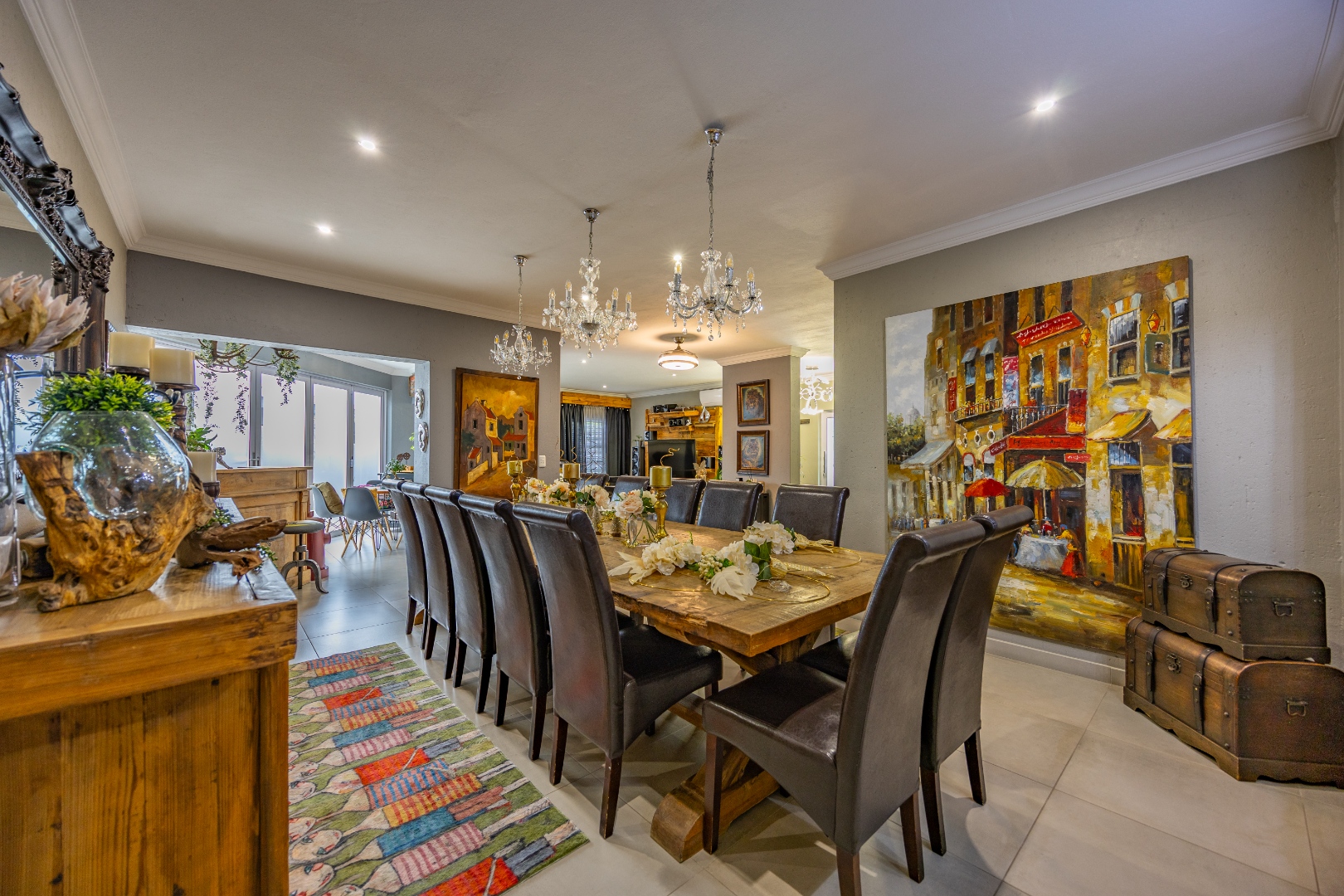 This beautifully designed 5-bedroom residence offers an exceptional blend of luxury, comfort, and modern living in one of Olympus AH’s most desirable estates. The ground floor welcomes you with generous living spaces including an inviting family TV room, a dining area, and a spacious study. A well-appointed guest bedroom with a full en-suite bathroom provides privacy for visitors. The open-plan kitchen features granite countertops, a gas hob, pantry, and separate scullery, flowing effortlessly to the built-in braai area, patio, lush garden, heated swimming pool, and Jacuzzi—perfect for year-round entertaining.