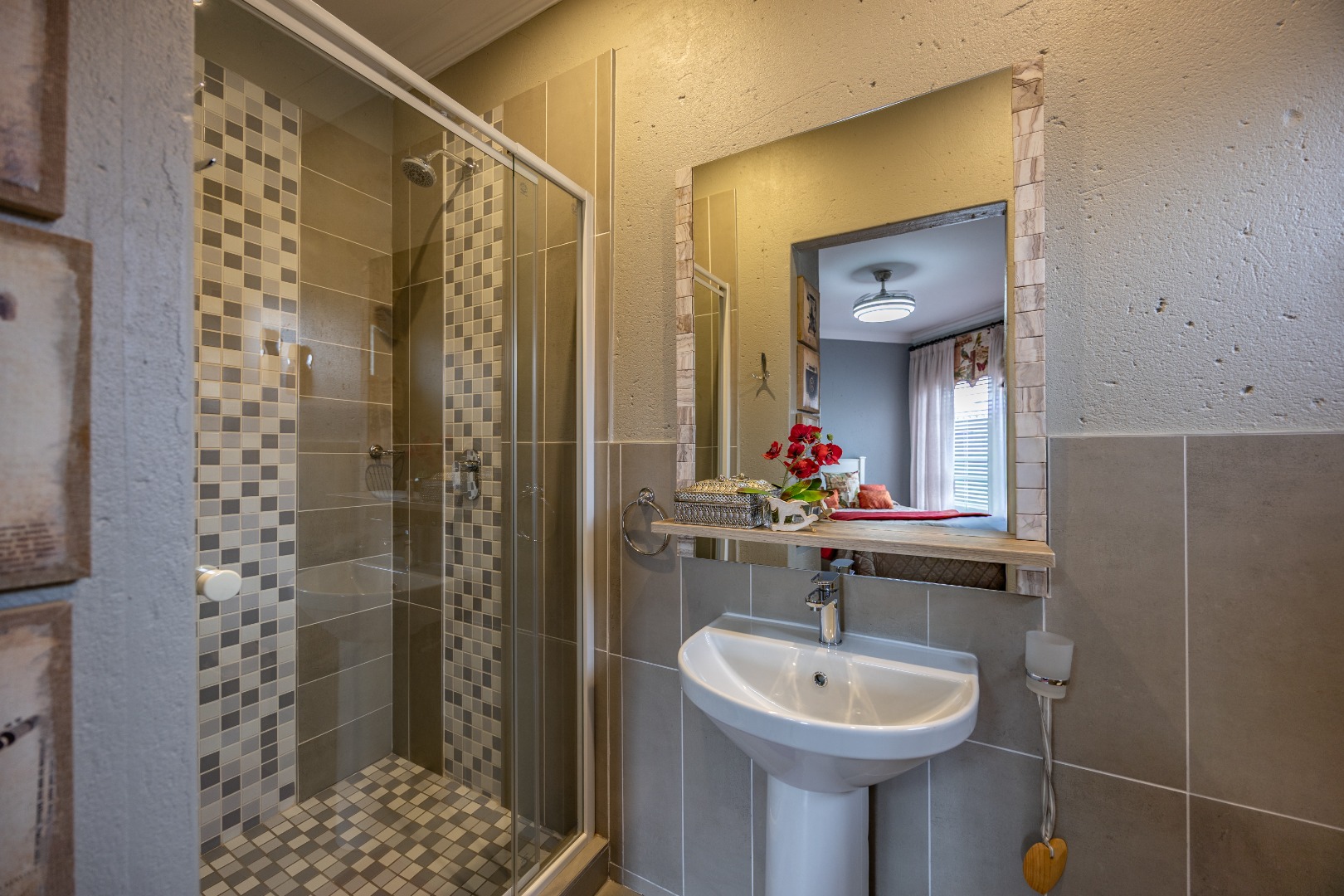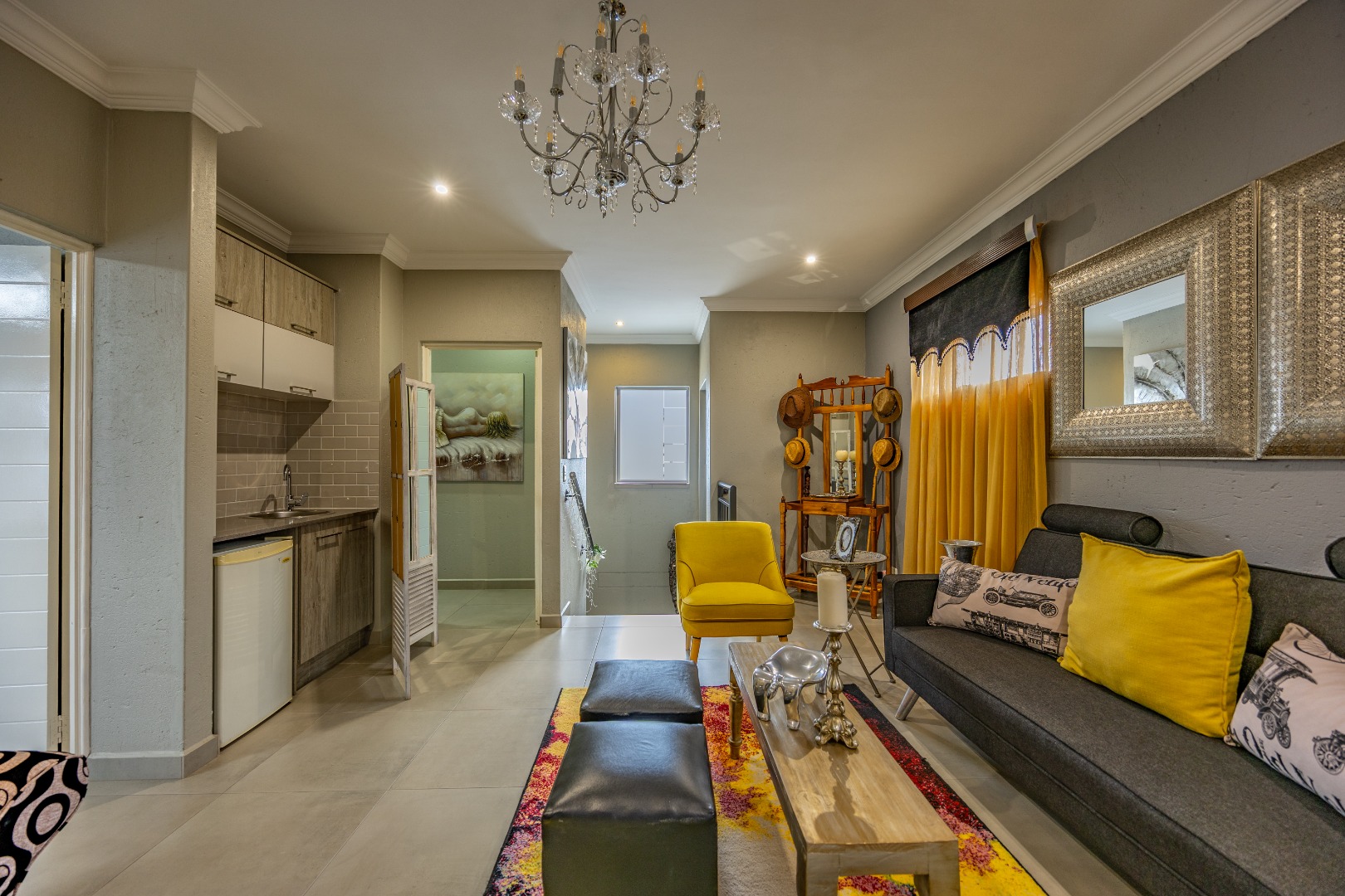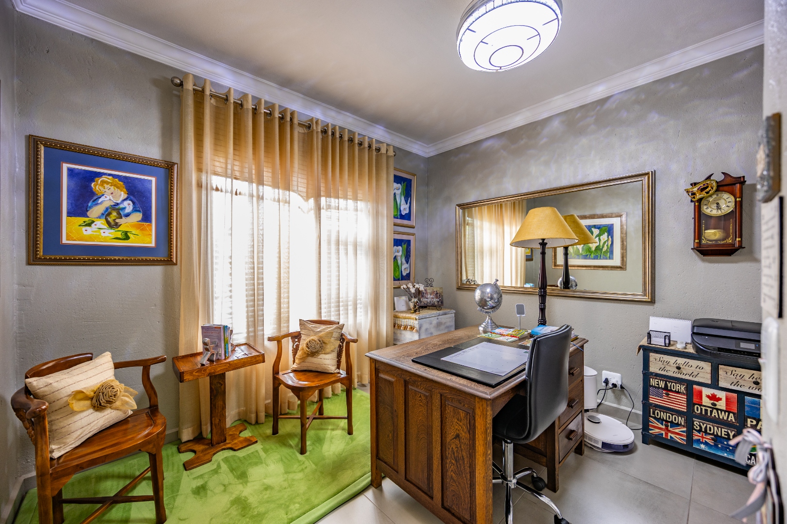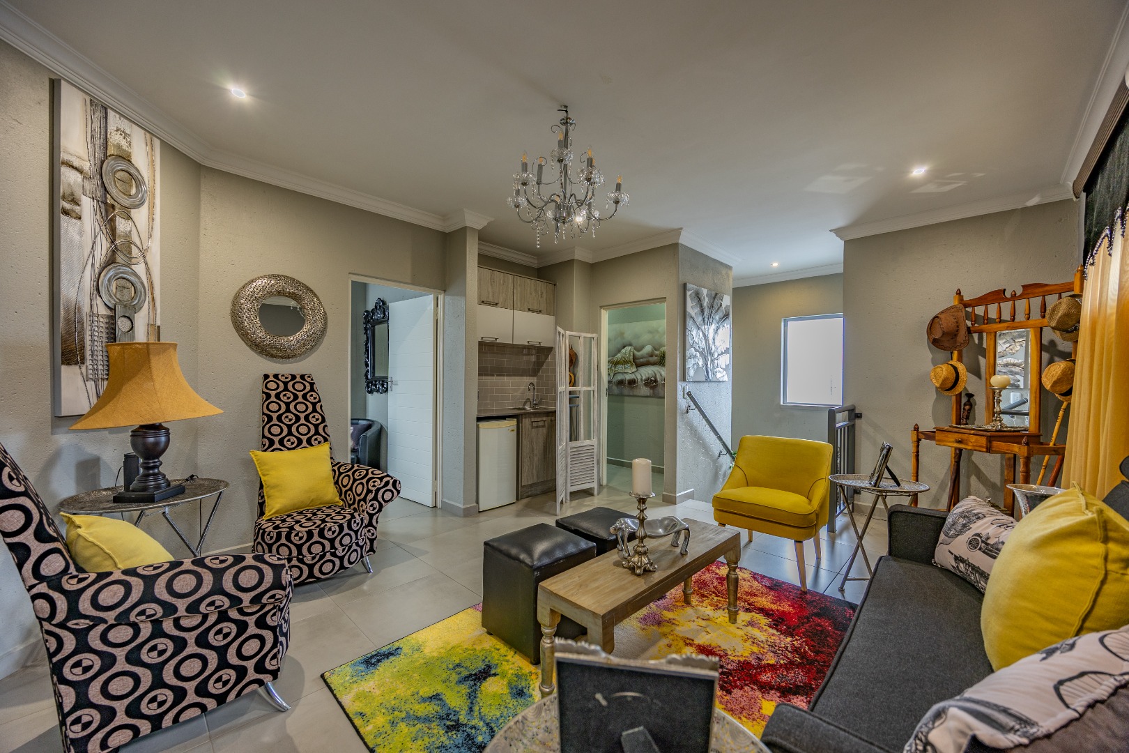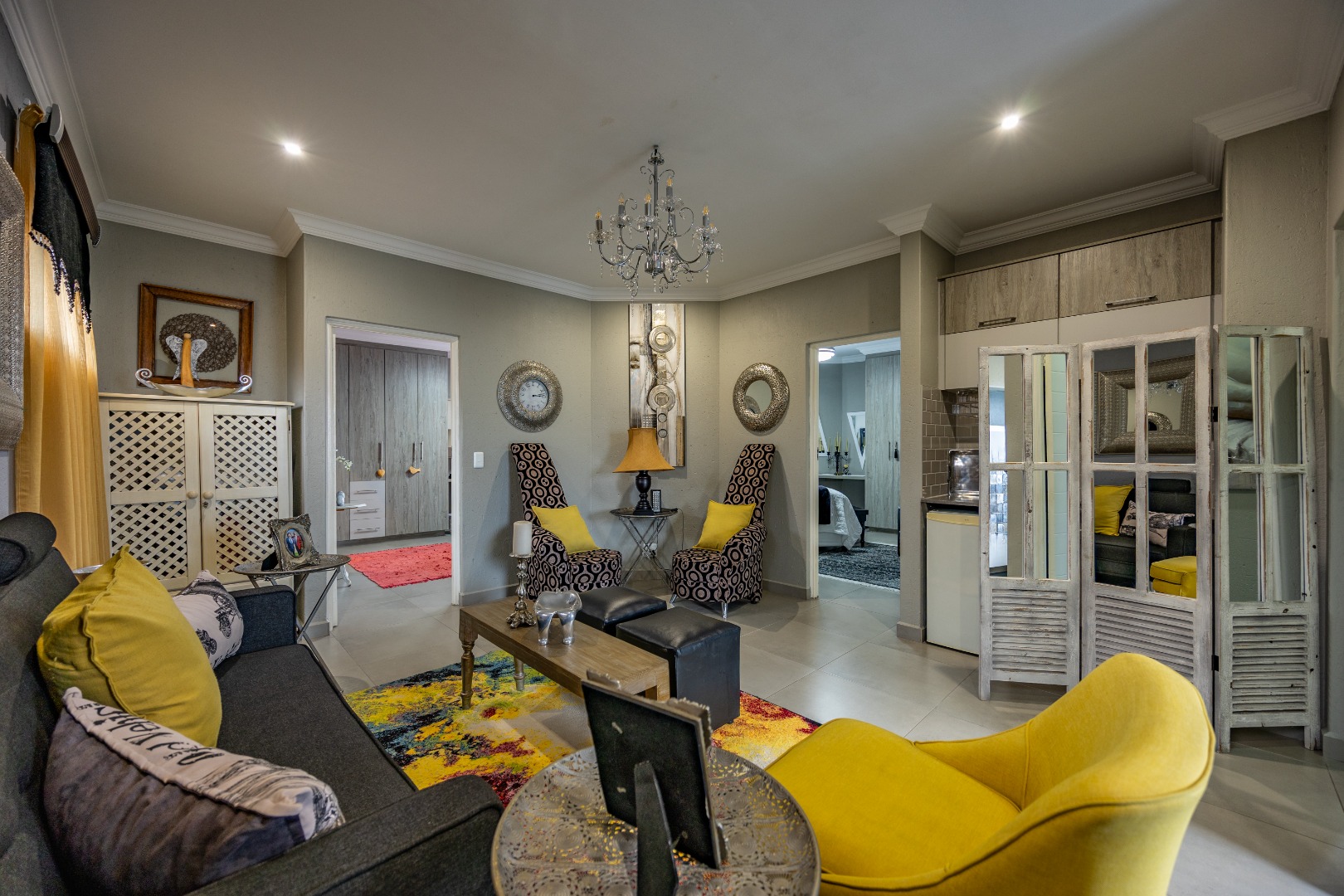 This beautifully designed 5-bedroom residence offers an exceptional blend of luxury, comfort, and modern living in one of Olympus AH’s most desirable estates. The ground floor welcomes you with generous living spaces including an inviting family TV room, a dining area, and a spacious study. A well-appointed guest bedroom with a full en-suite bathroom provides privacy for visitors. The open-plan kitchen features granite countertops, a gas hob, pantry, and separate scullery, flowing effortlessly to the built-in braai area, patio, lush garden, heated swimming pool, and Jacuzzi—perfect for year-round entertaining.