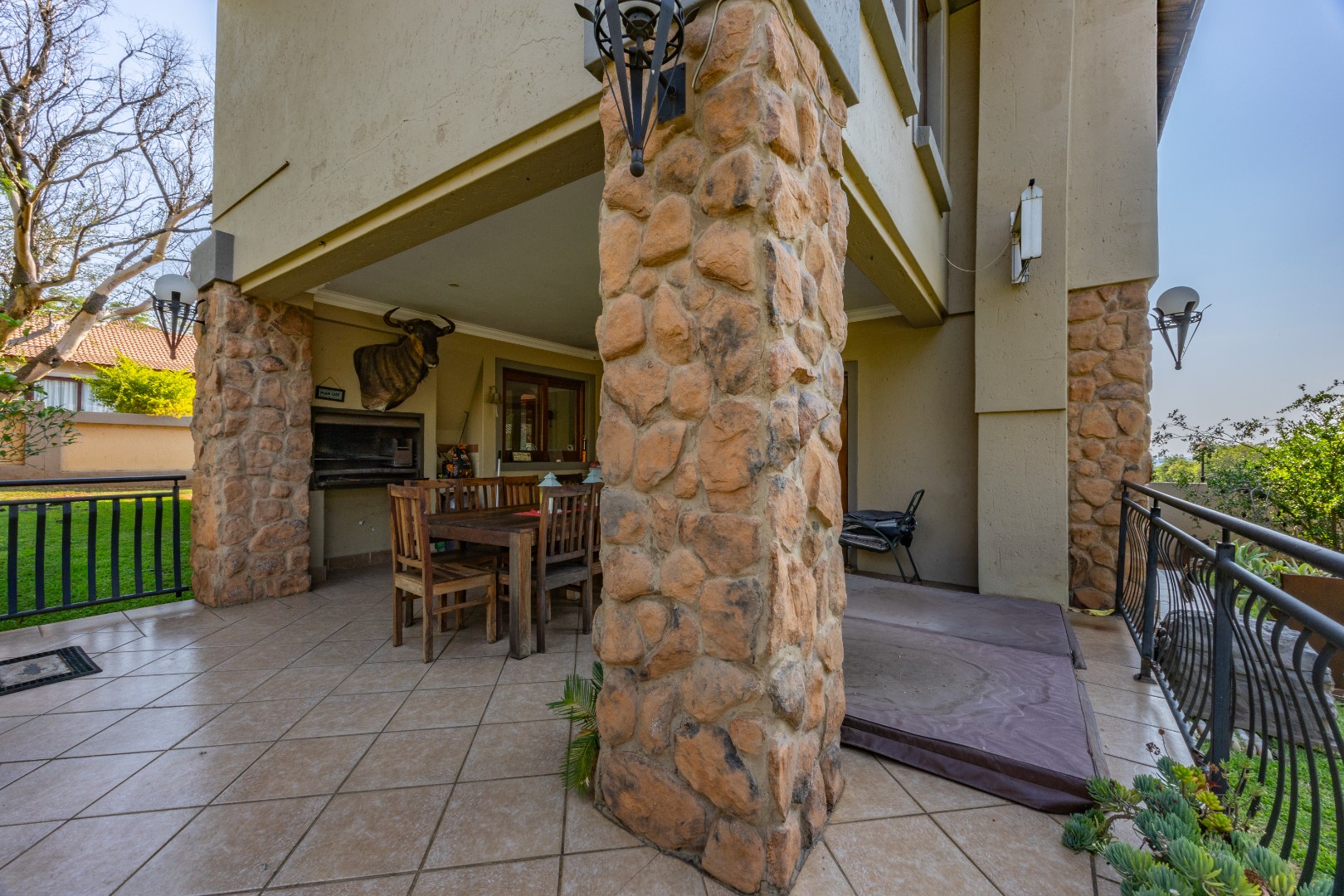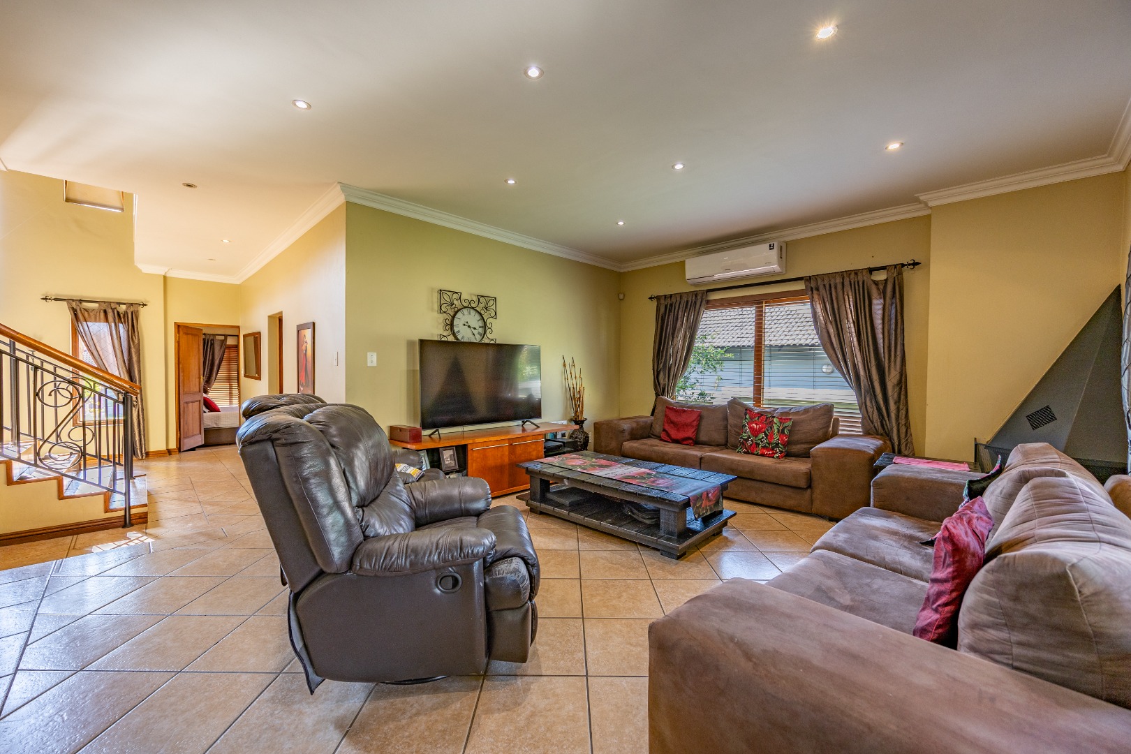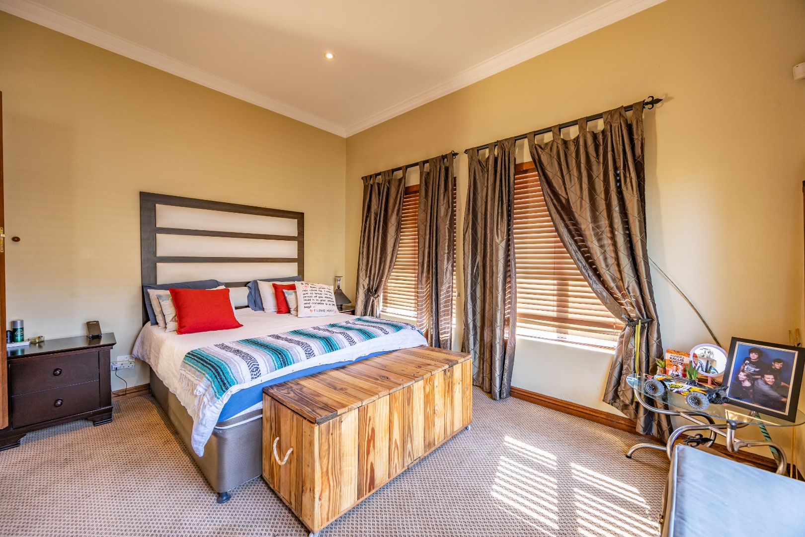Nestled within the prestigious Pebble Rock Golf Estate, this stunning four-bedroom home blends modern functionality with timeless comfort. Each room is thoughtfully designed, offering a perfect mix of open living spaces and private retreats. The home features four and a half bathrooms, a beautifully finished dining room, and a contemporary kitchen complete with a scullery and pantry. The TV room, enhanced by a built-in fireplace, creates a cozy setting for family evenings, while the study and pajama lounge provide peaceful spaces for work and relaxation.