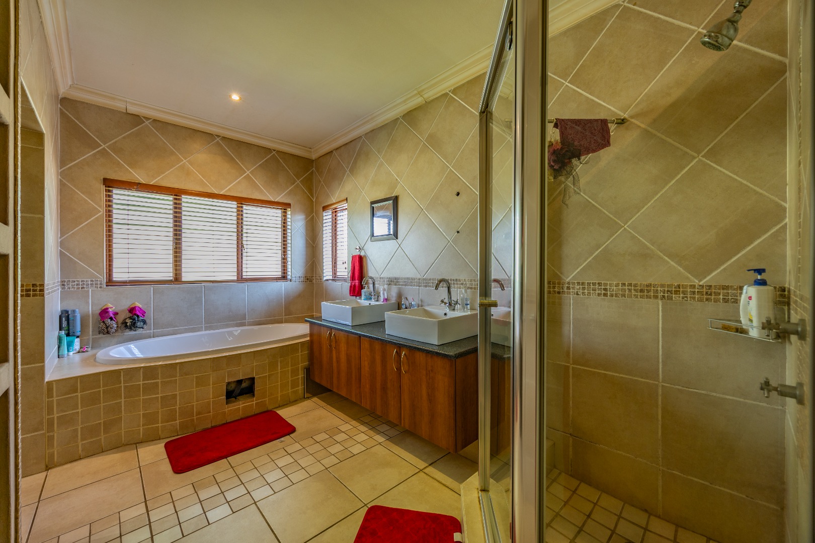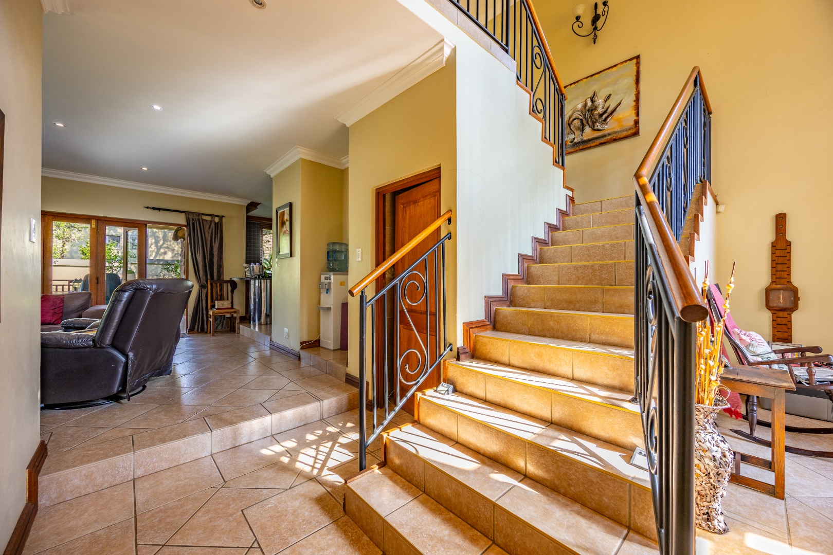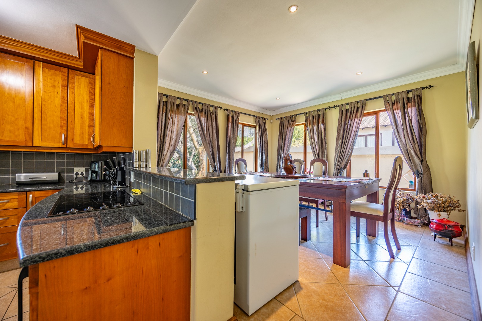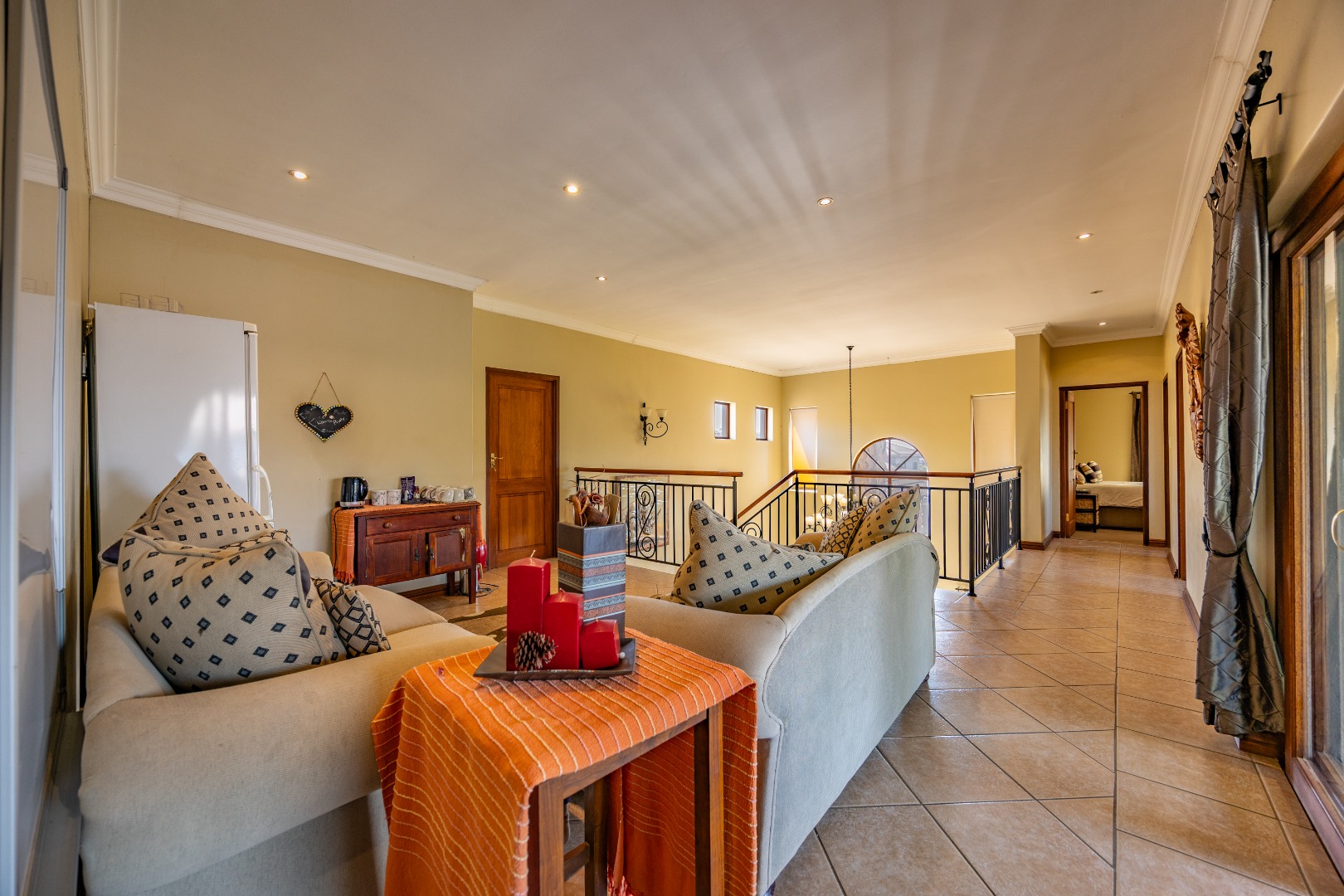 Nestled within the prestigious Pebble Rock Golf Estate, this stunning four-bedroom home blends modern functionality with timeless comfort. Each room is thoughtfully designed, offering a perfect mix of open living spaces and private retreats. The home features four and a half bathrooms, a beautifully finished dining room, and a contemporary kitchen complete with a scullery and pantry. The TV room, enhanced by a built-in fireplace, creates a cozy setting for family evenings, while the study and pajama lounge provide peaceful spaces for work and relaxation.