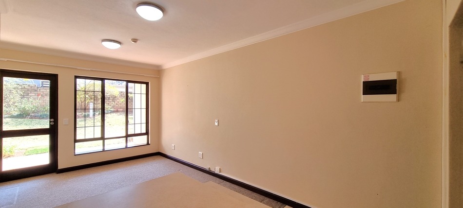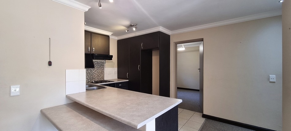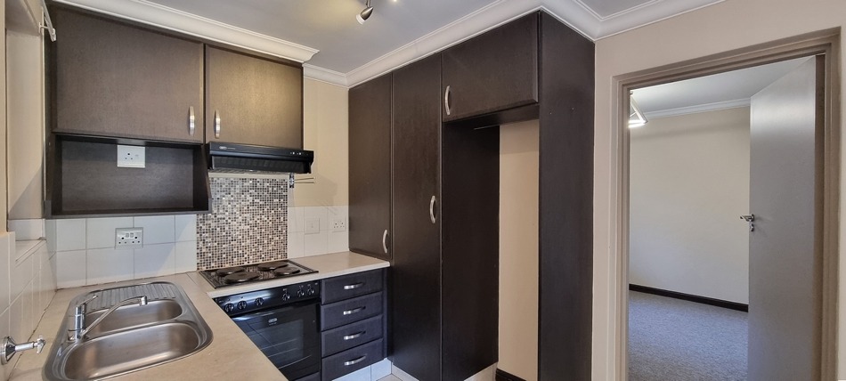Enjoy comfort, safety, and convenience in this charming two-bedroom, one-bathroom ground floor unit, perfectly located in the peaceful Glevera Carenet Home in Rietvalleirand. The unit offers tasteful finishings and an inviting open-plan living area that open to the covered patio and communal garden area, where you can relax and enjoy the tranquil surroundings. The beautiful and functional kitchen with lots of cupboards, has space for three appliances. Both bedrooms feature built-in cupboards, and the bathroom with a bath and a wheelchair friendly shower, is neat and practical.
